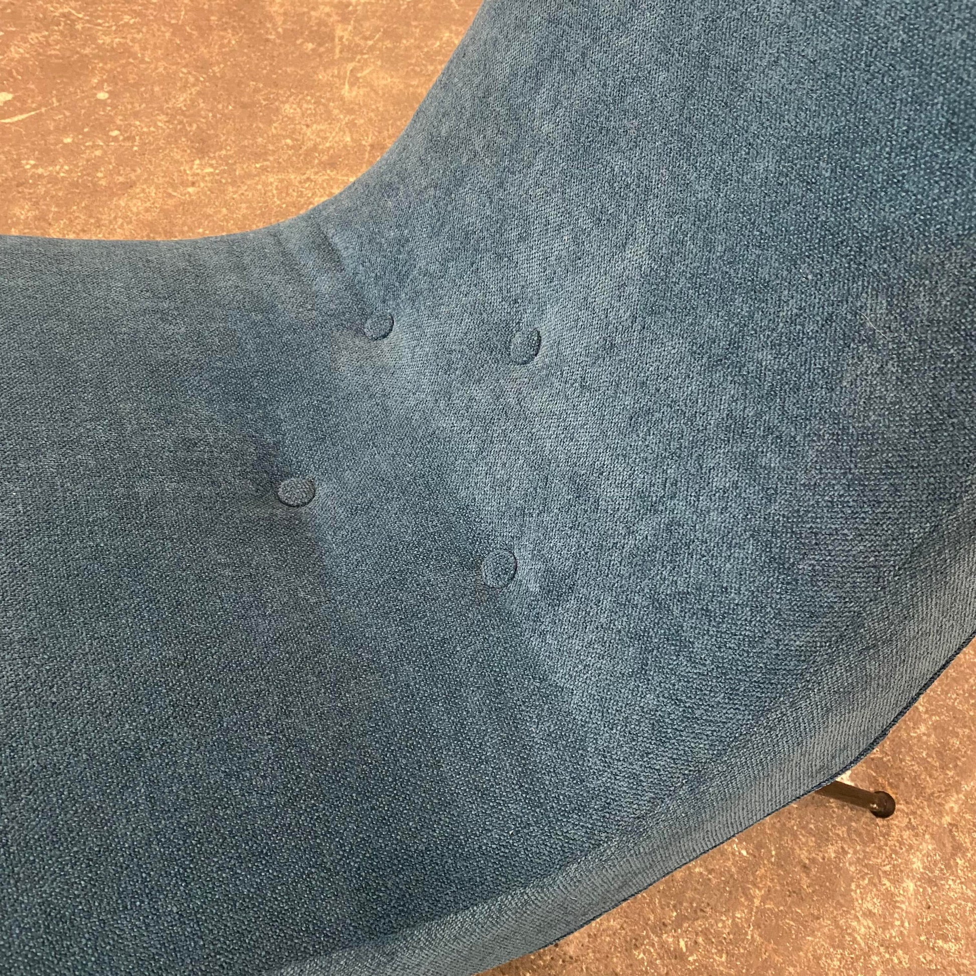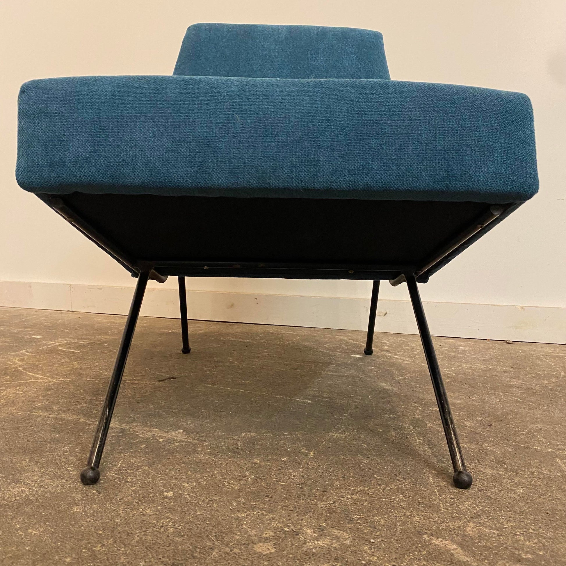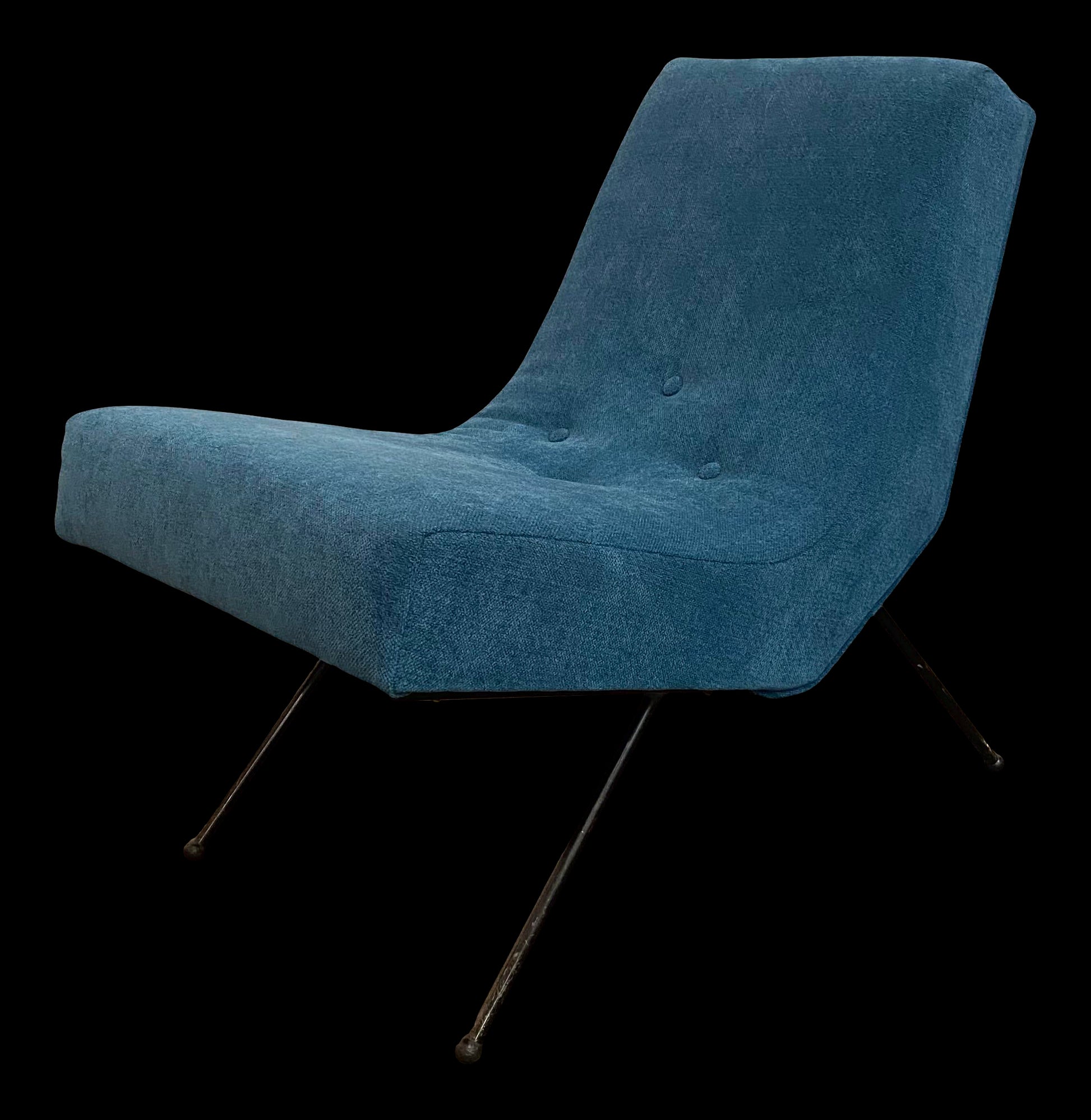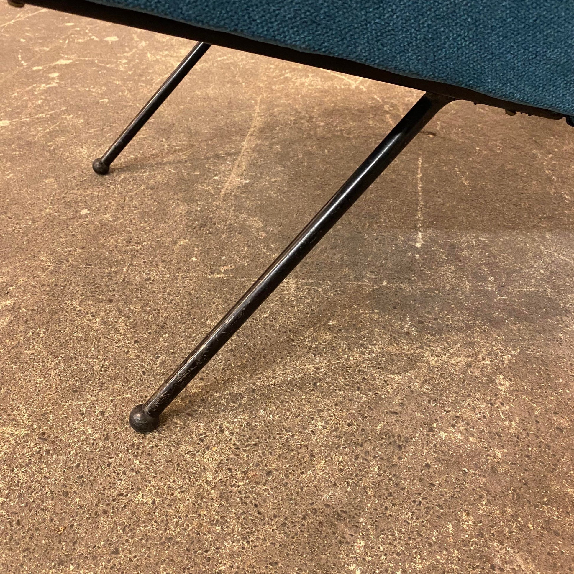 An uncommon mid-century modern slipper chair by Adrian Pearsall with iron legs. The chair has been completely reupholstered with new foam in a teal crypton fabric. Crypton fabric is stain, water and bacteria resistant.