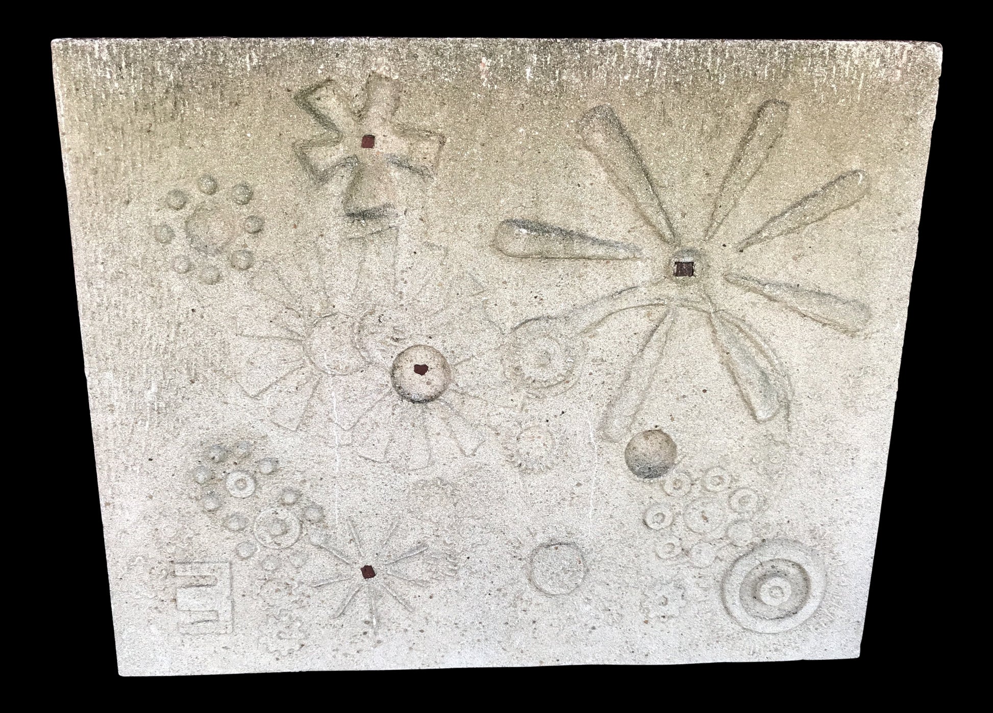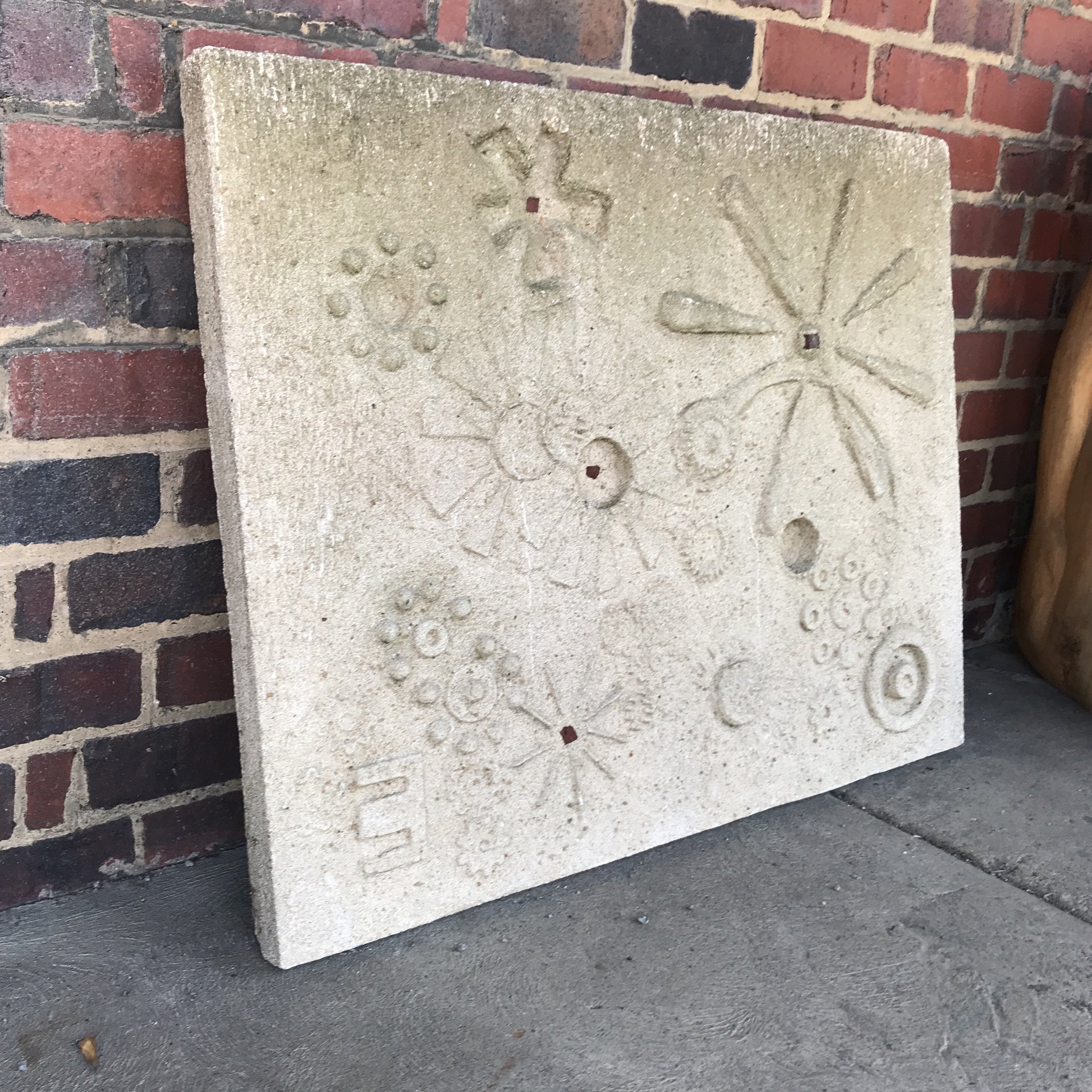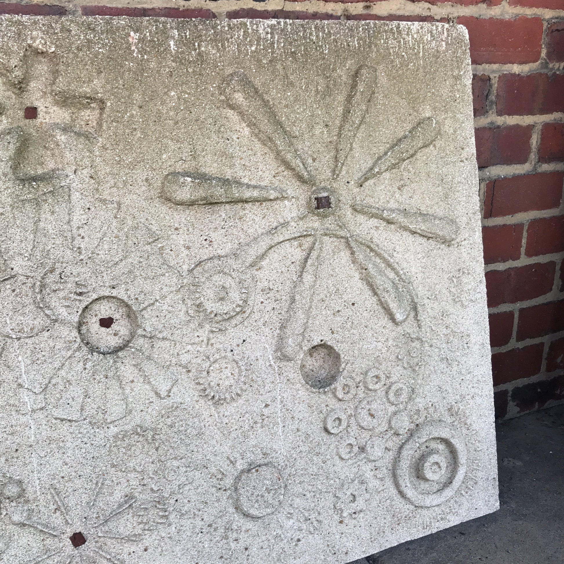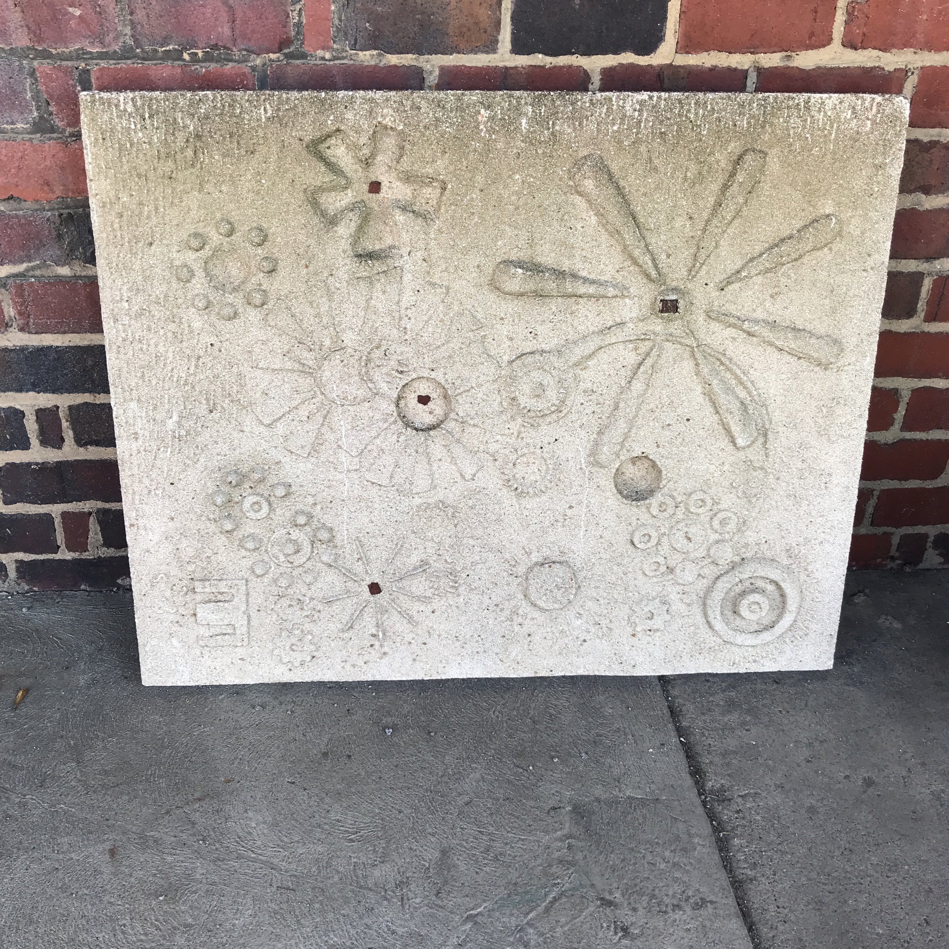 Keith Hagg was a well known architect in the Akron, Ohio area. This sandstone sculpture came from his former home. It was originally hanging in his courtyard. It is in good condition and is a very large, very heavy piece of art.