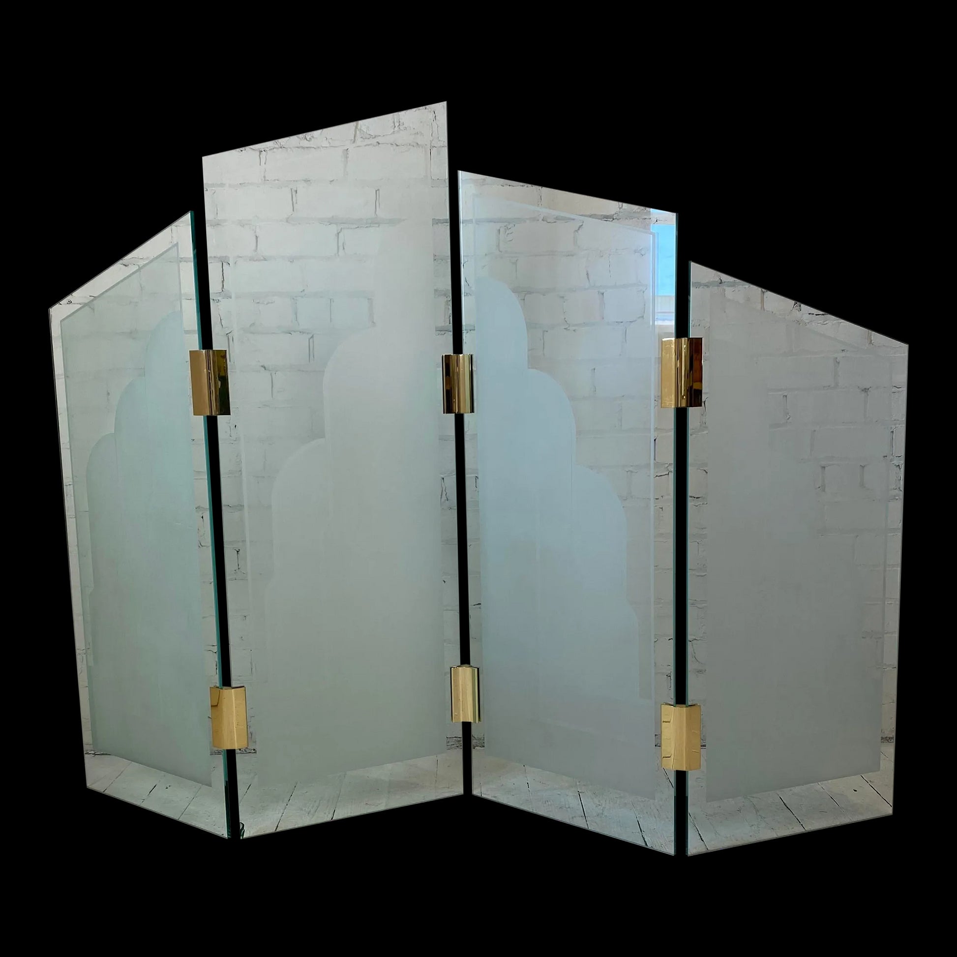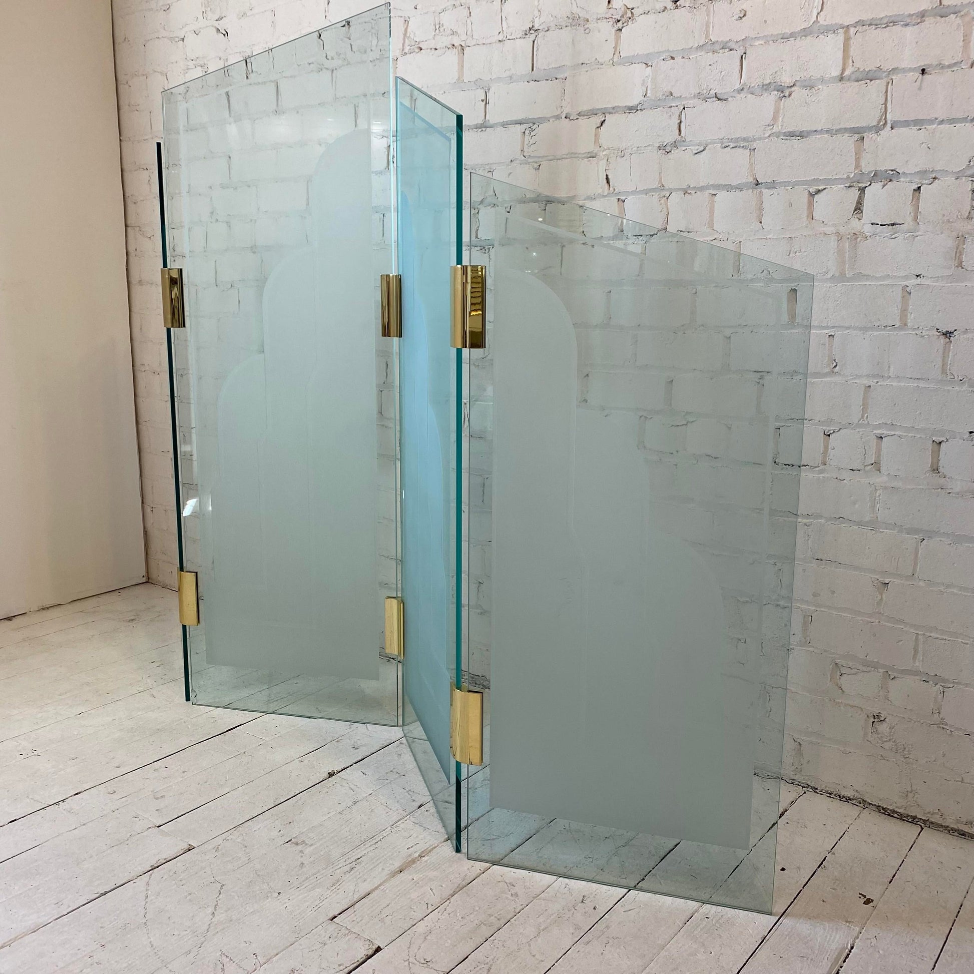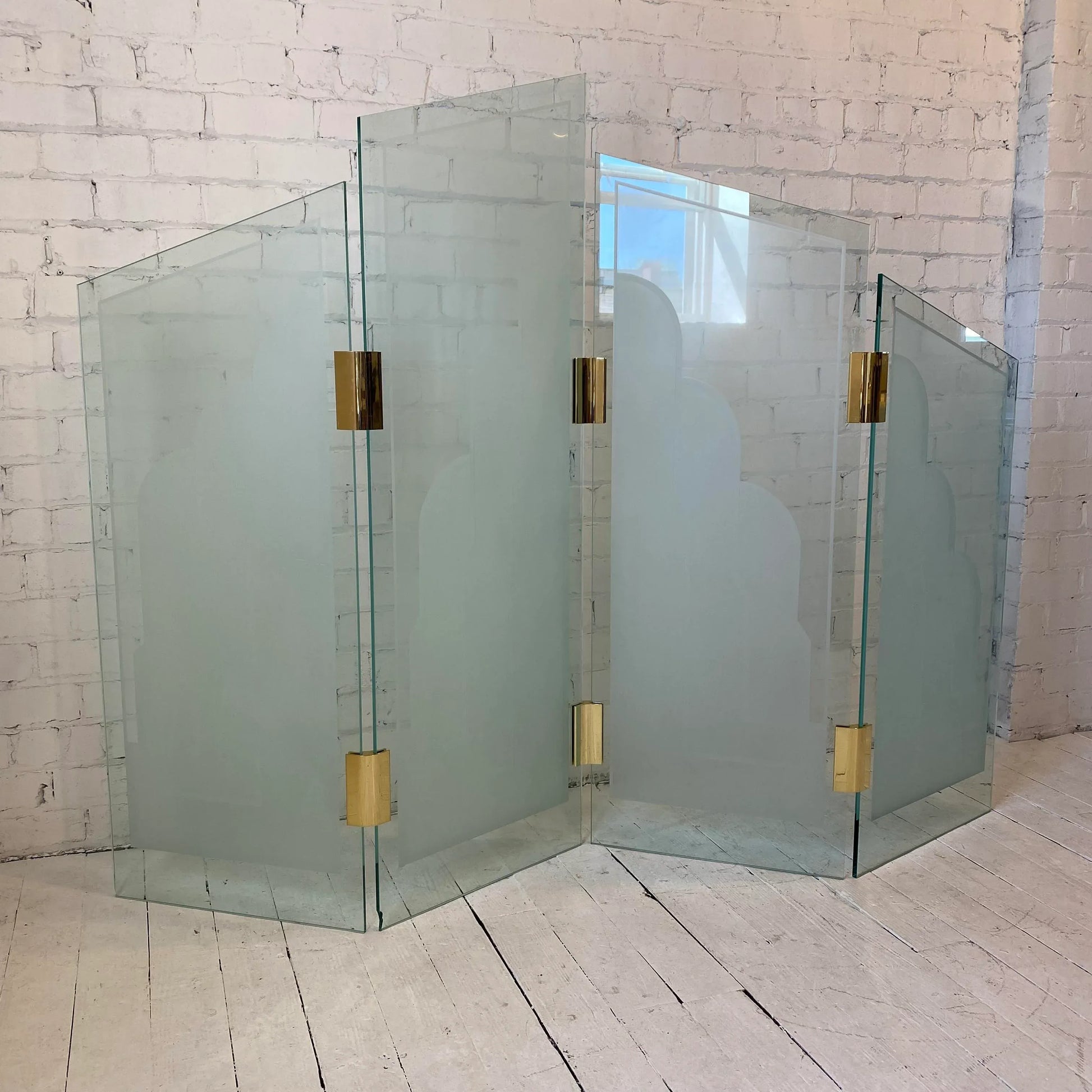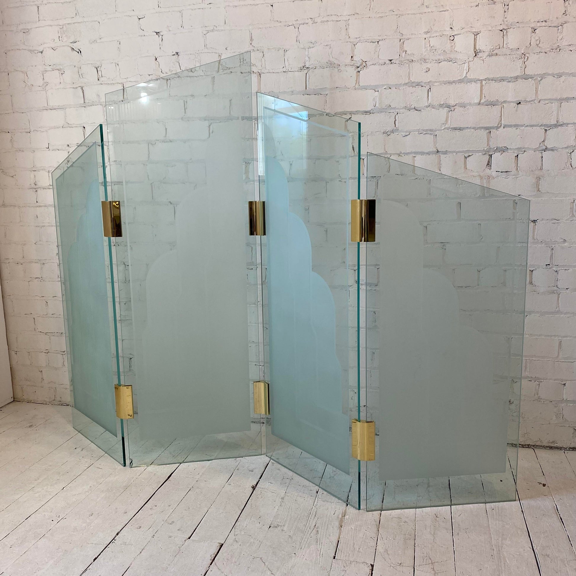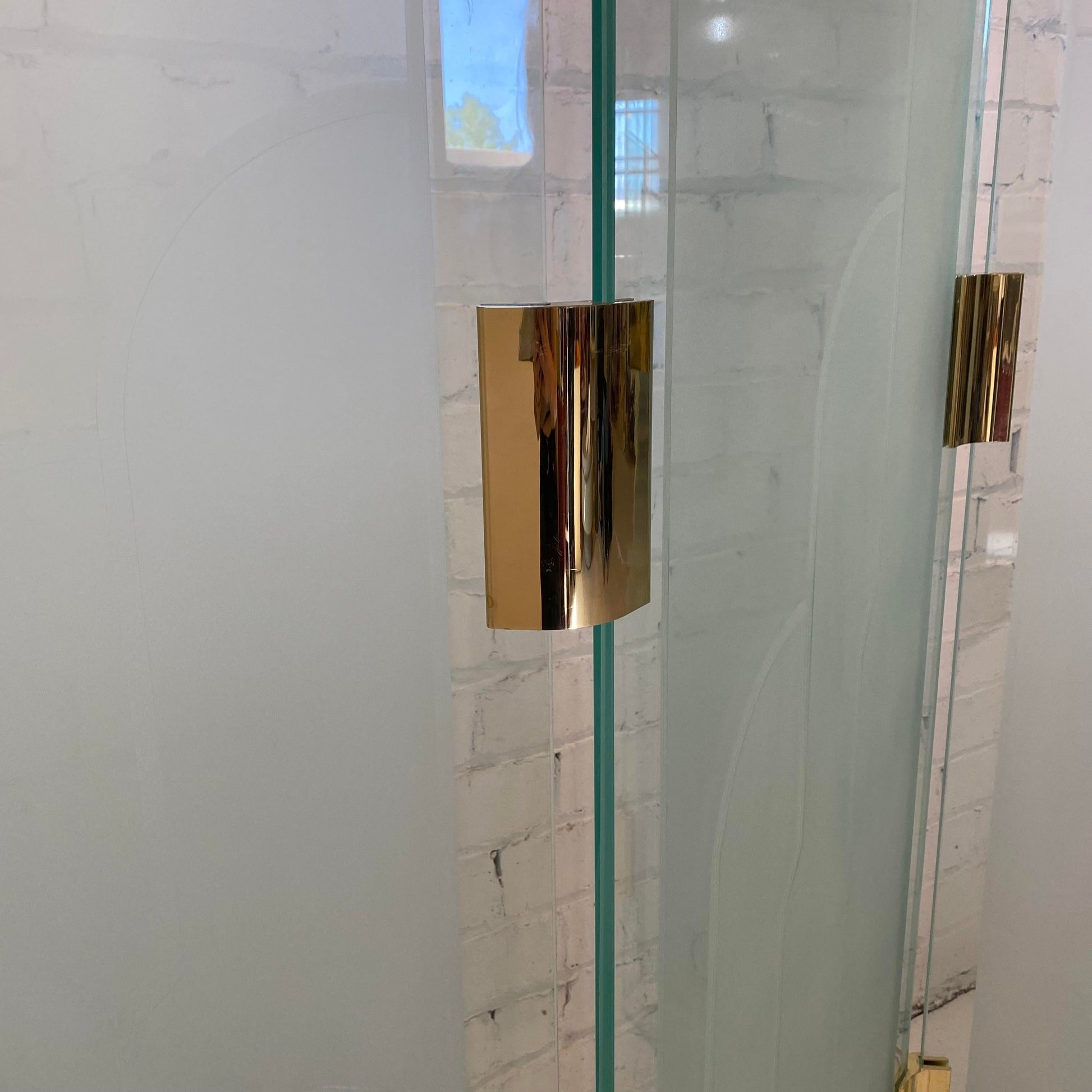 1970s Art Deco Style Glass Divider Sandblasted Glass With Brass Hardware