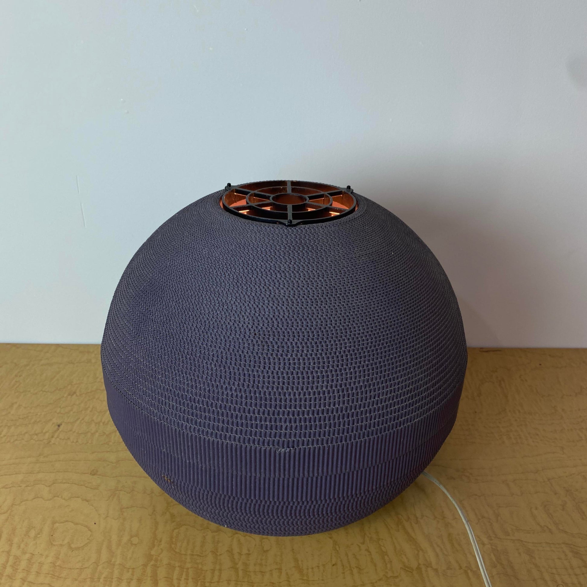 Mid-century modern table lamp by Gregory Van Pelt made by continuous strips of corrugated cardboard.