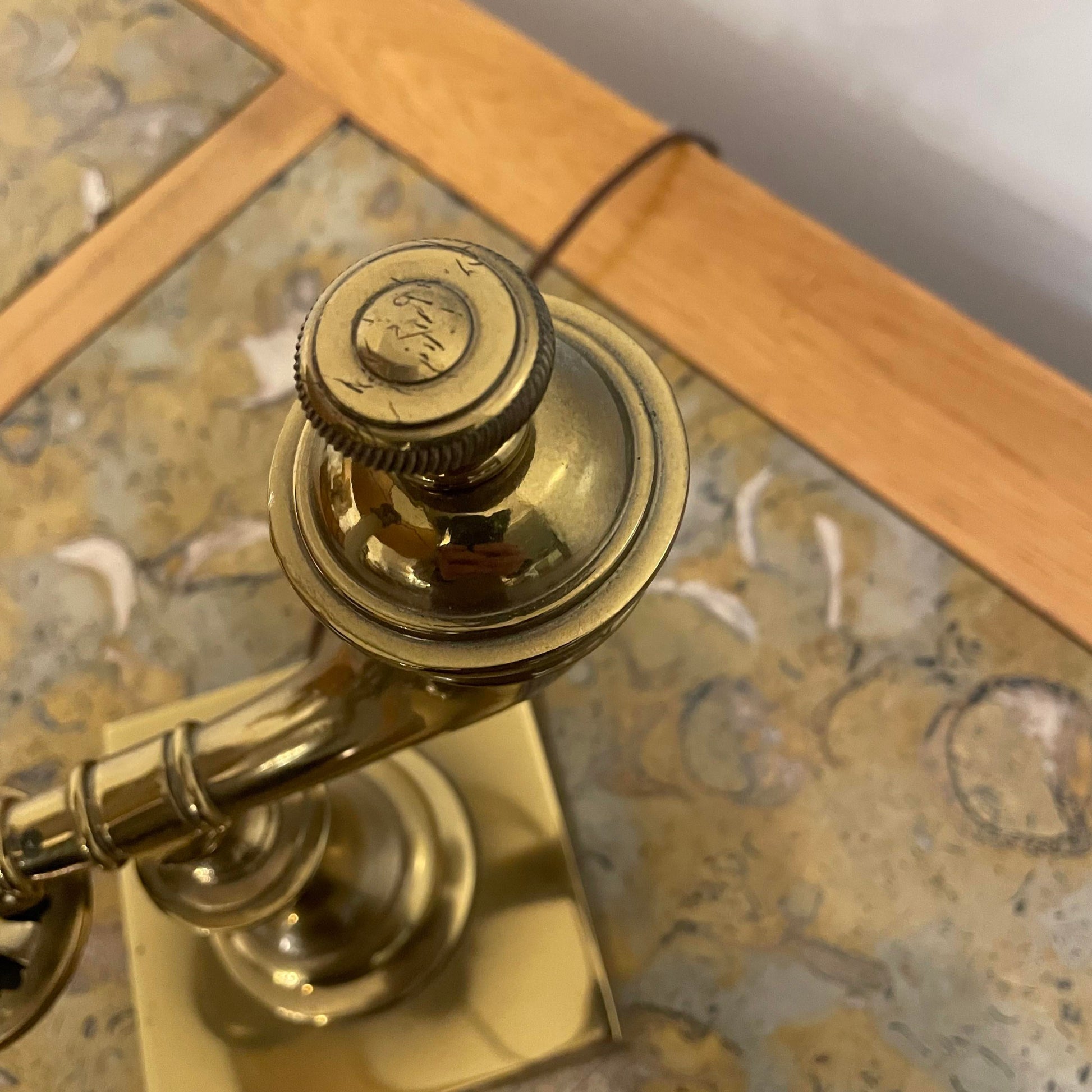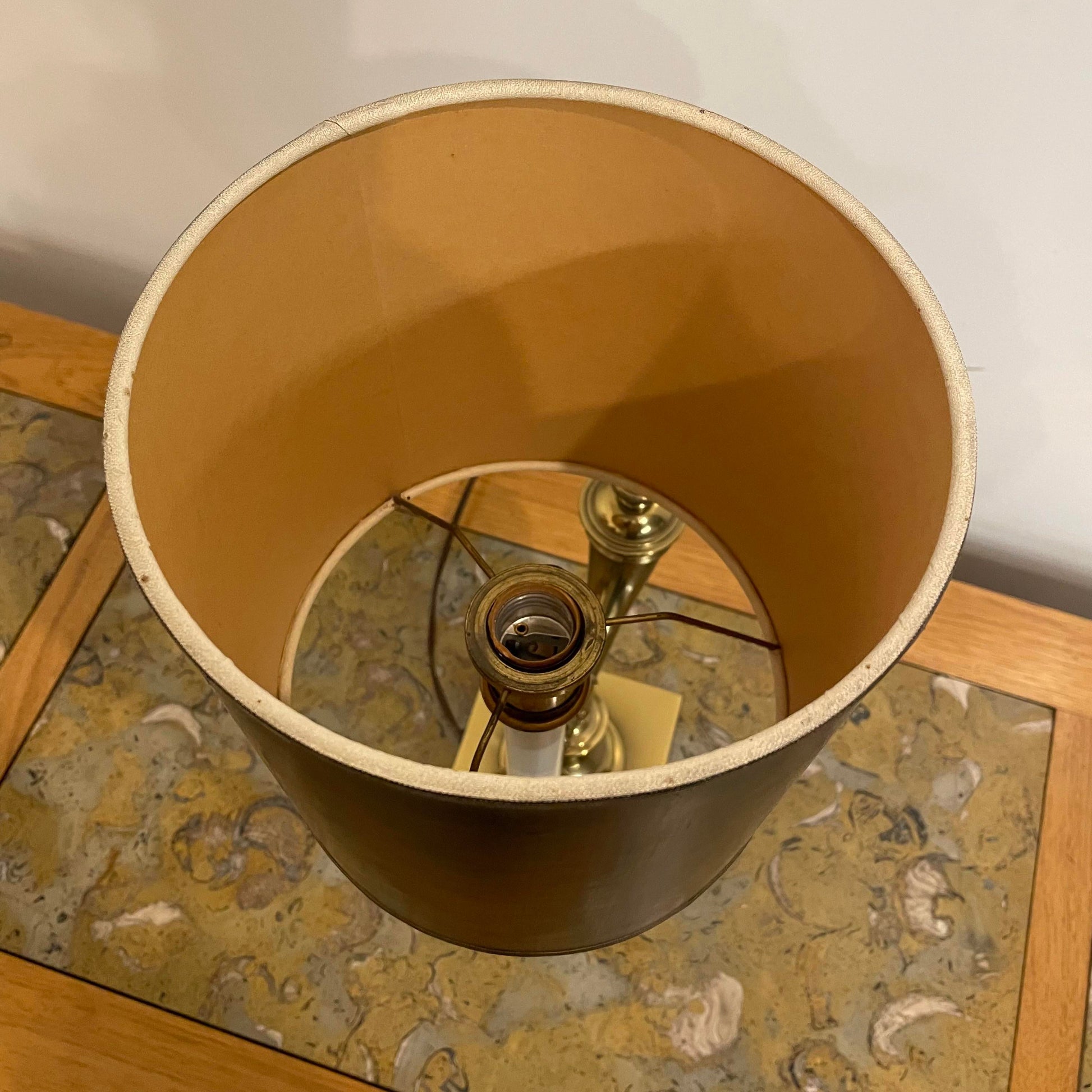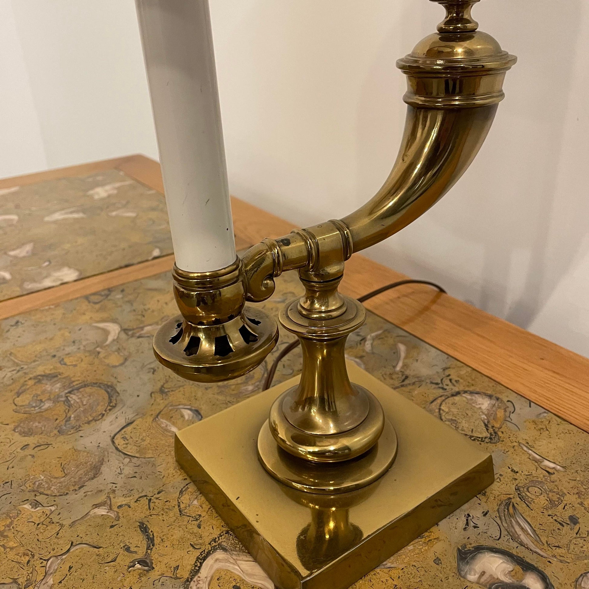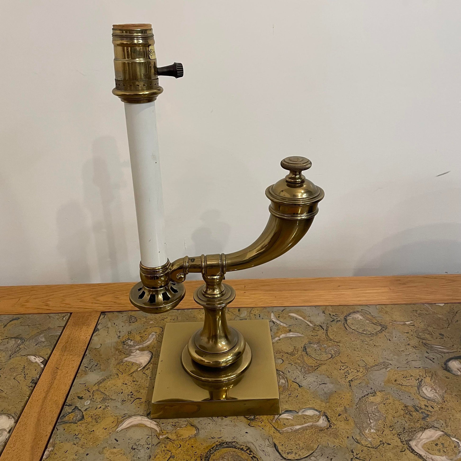 The base is brass with a black shade and brass details