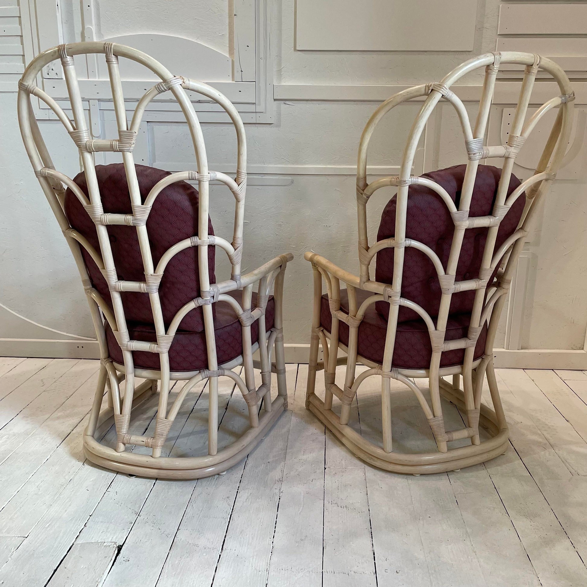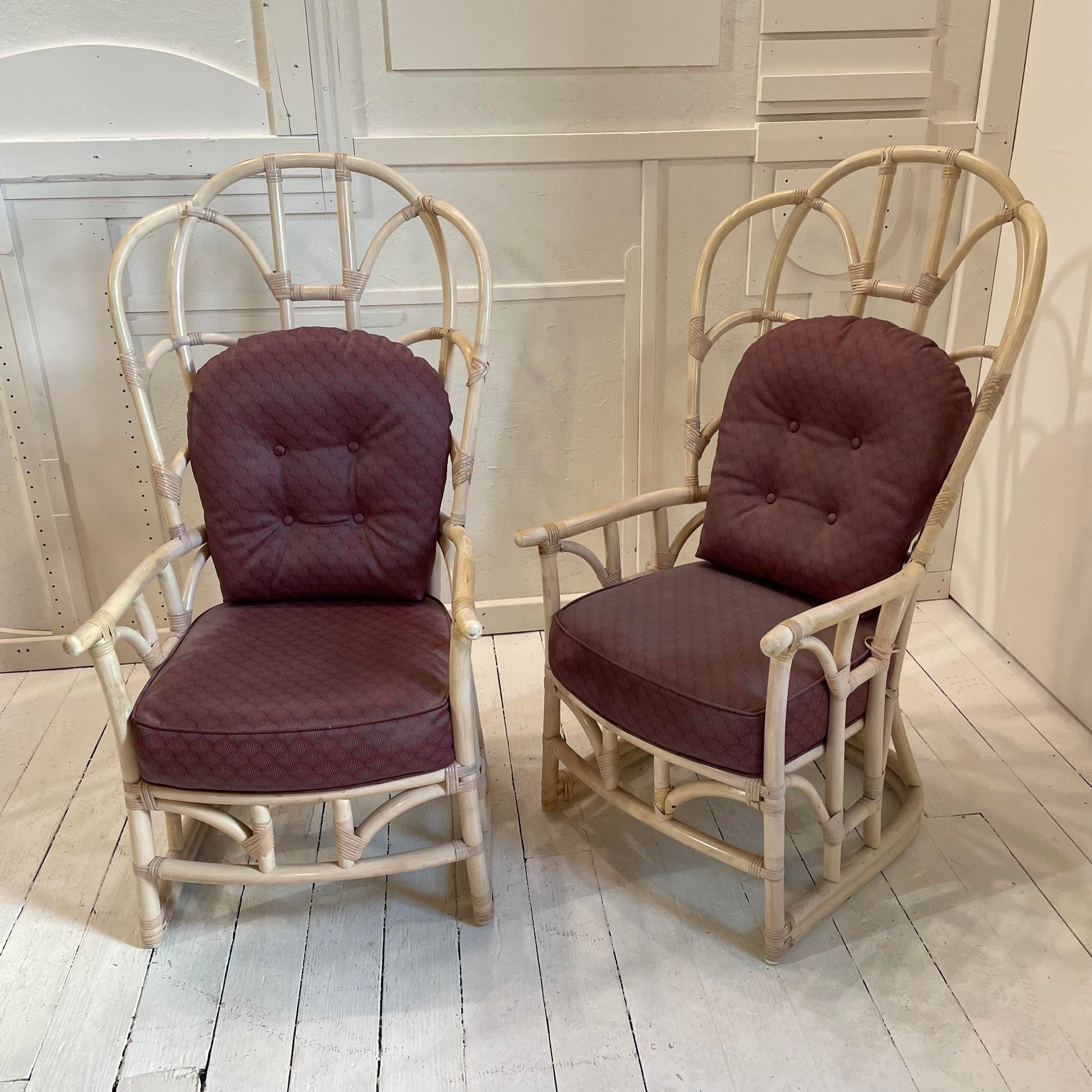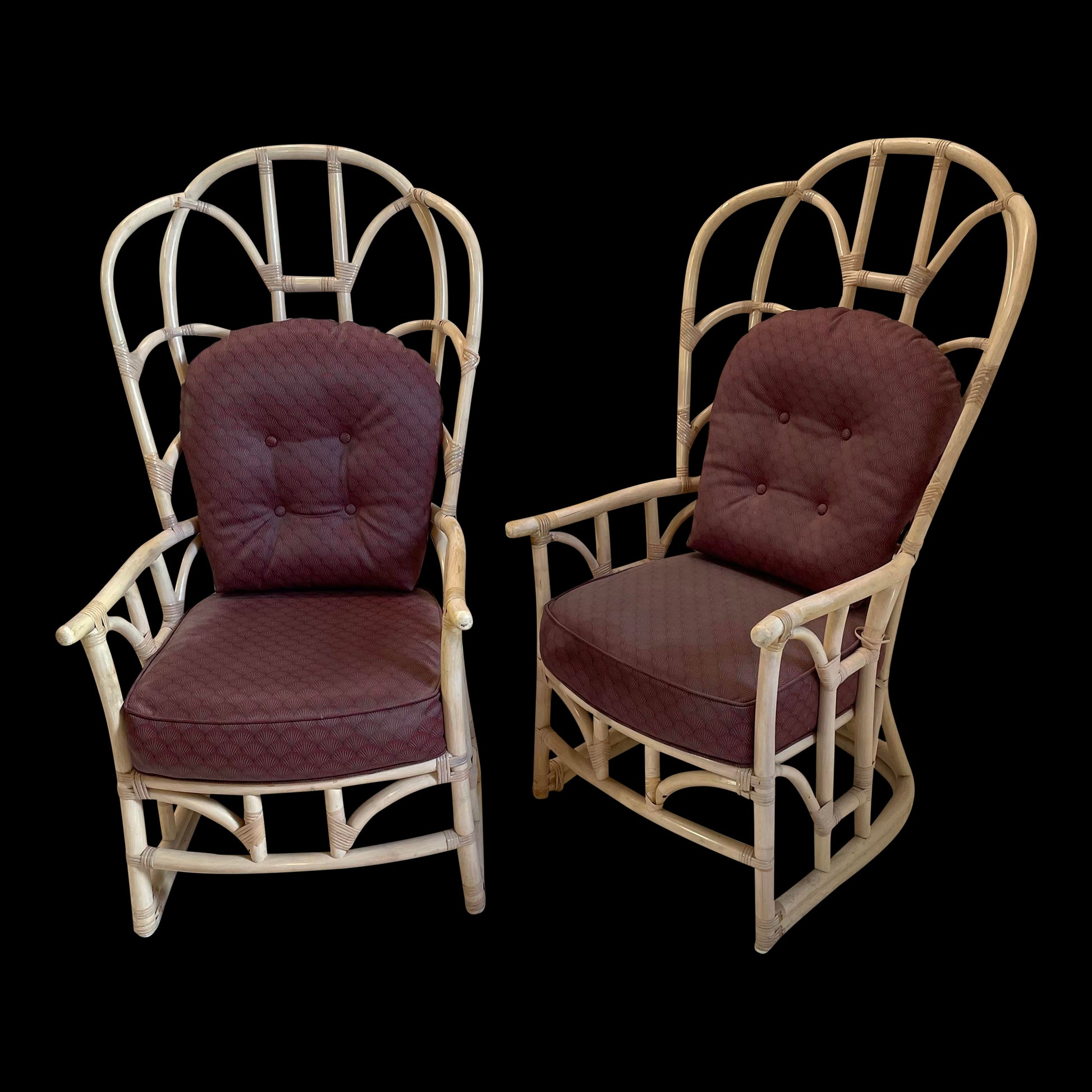 1970s Vintage Tall Back Bamboo Wing Chairs - a Pair