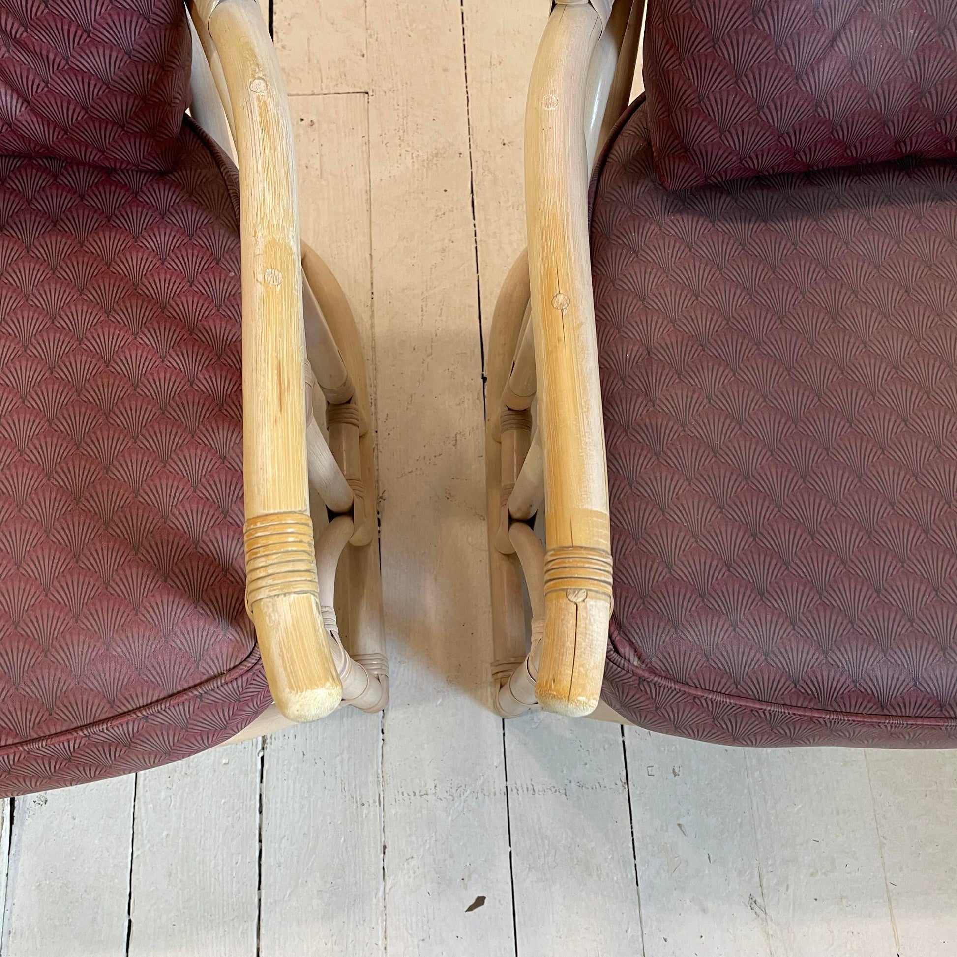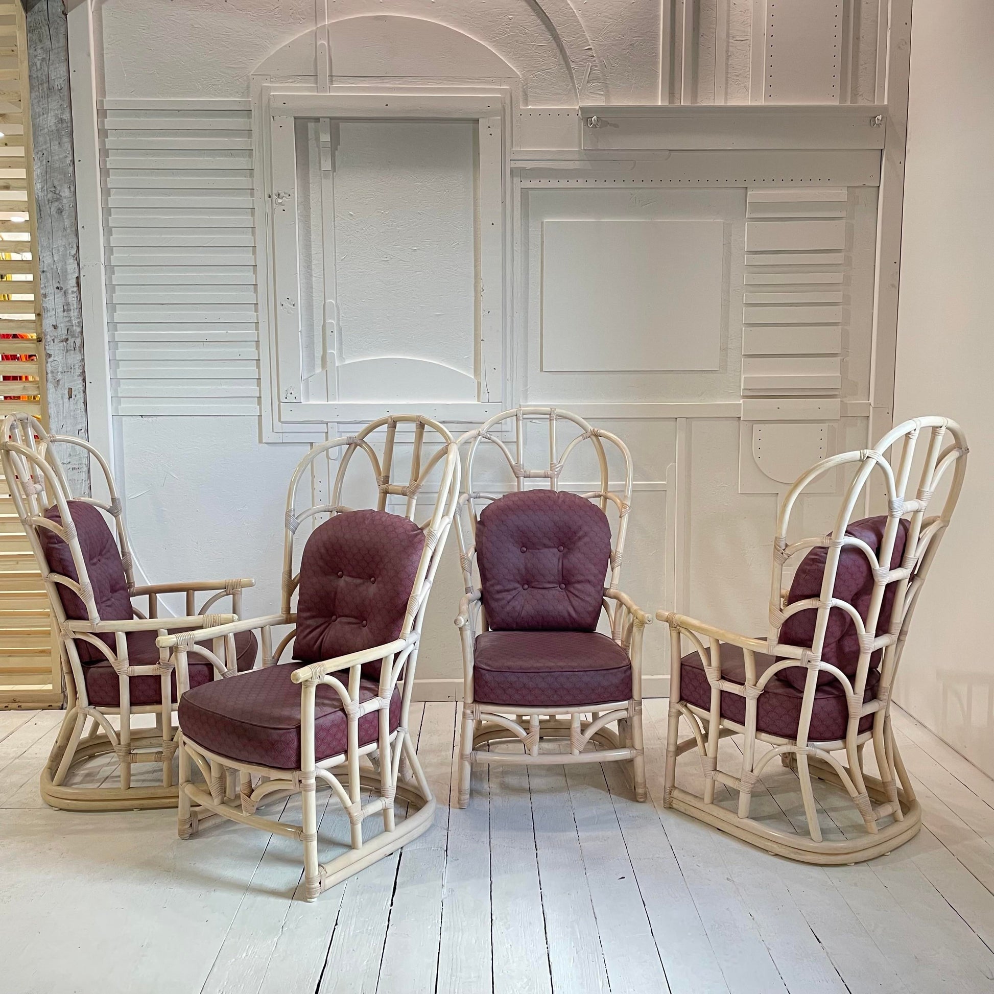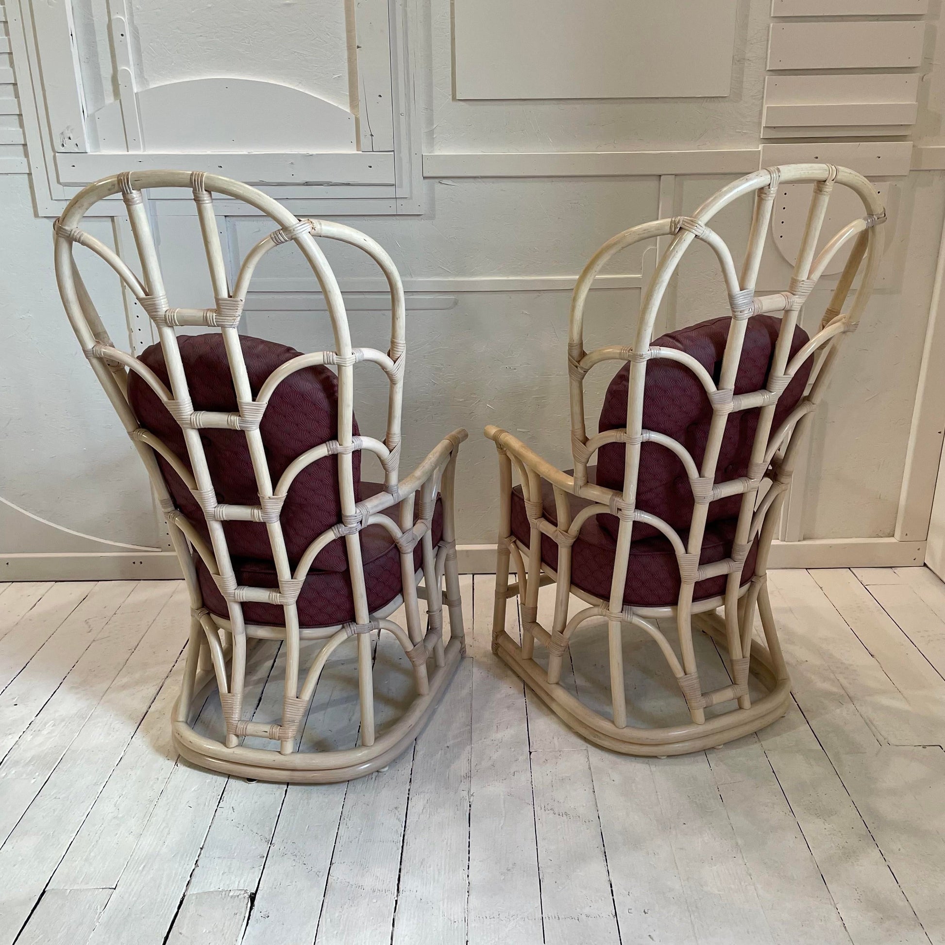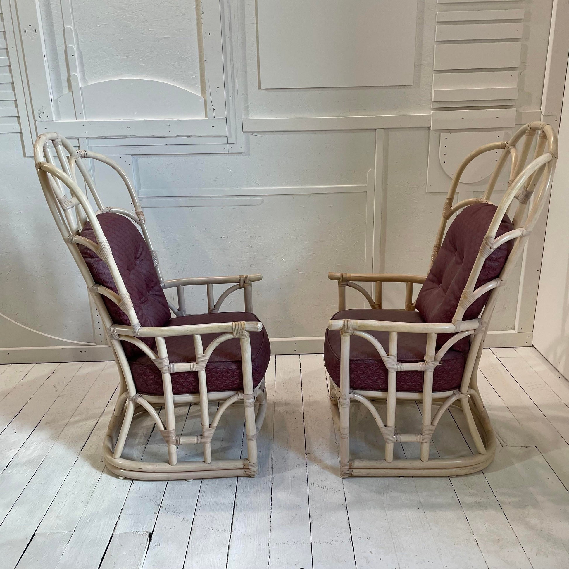 1970s Vintage Tall Back Bamboo Wing Chairs - a Pair