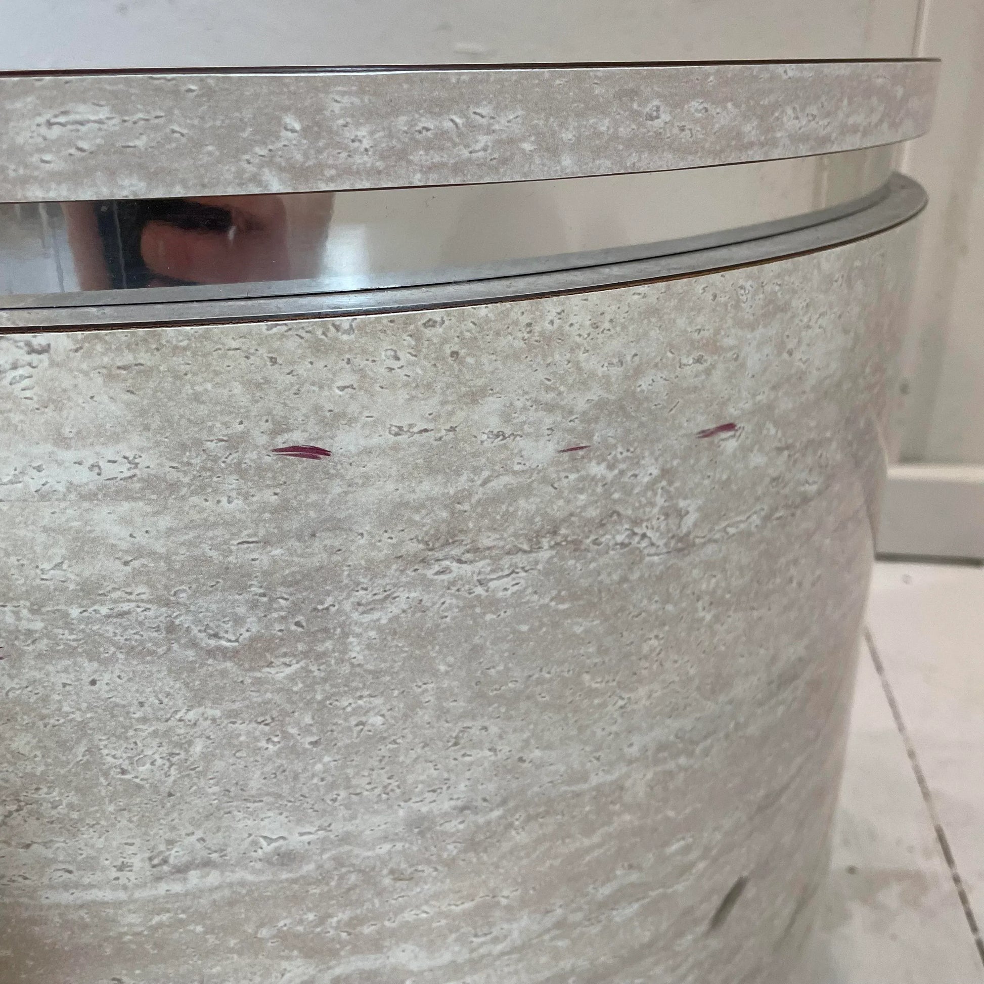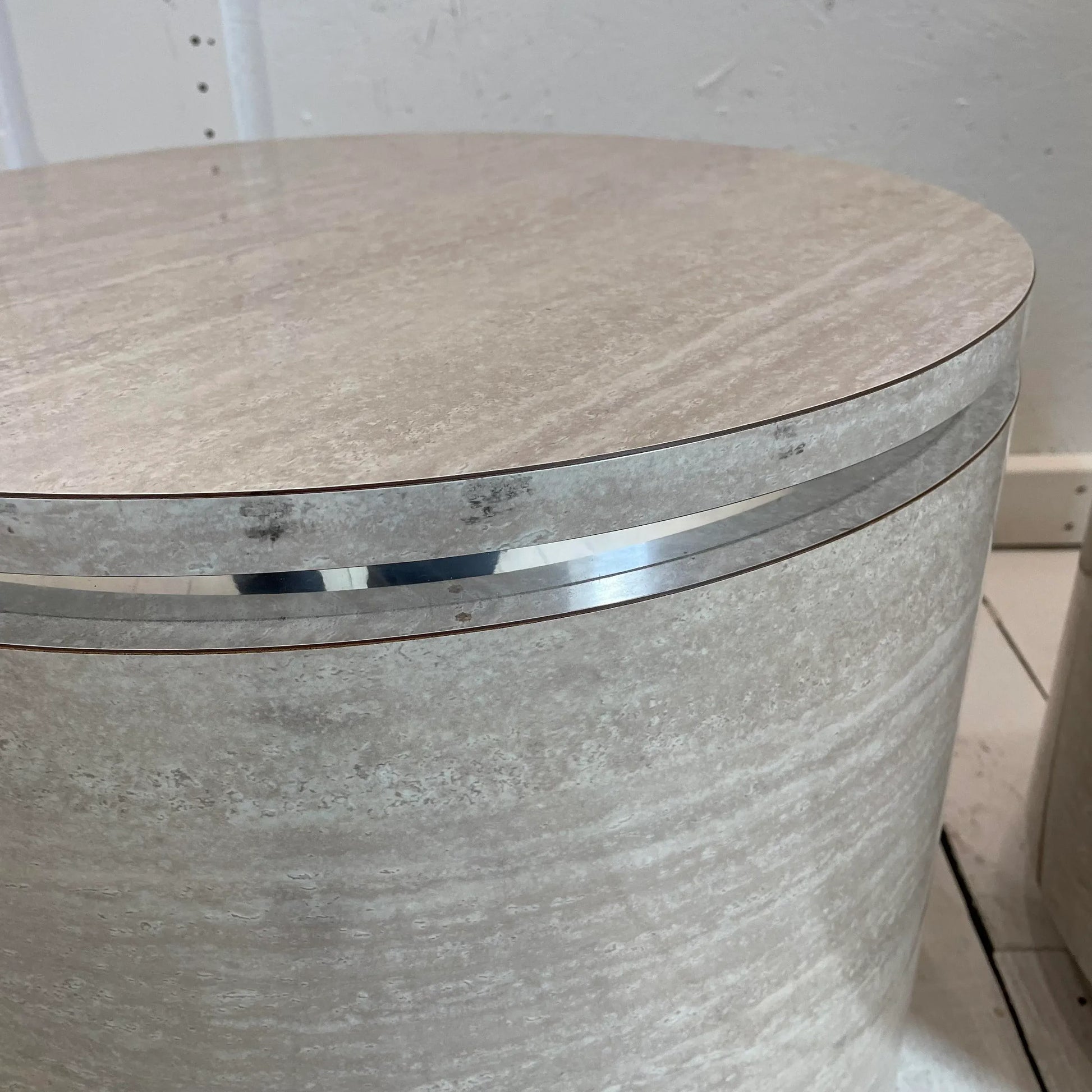 1980s Travertine Laminate Drum Side Tables With Chrome Trim - a Pair