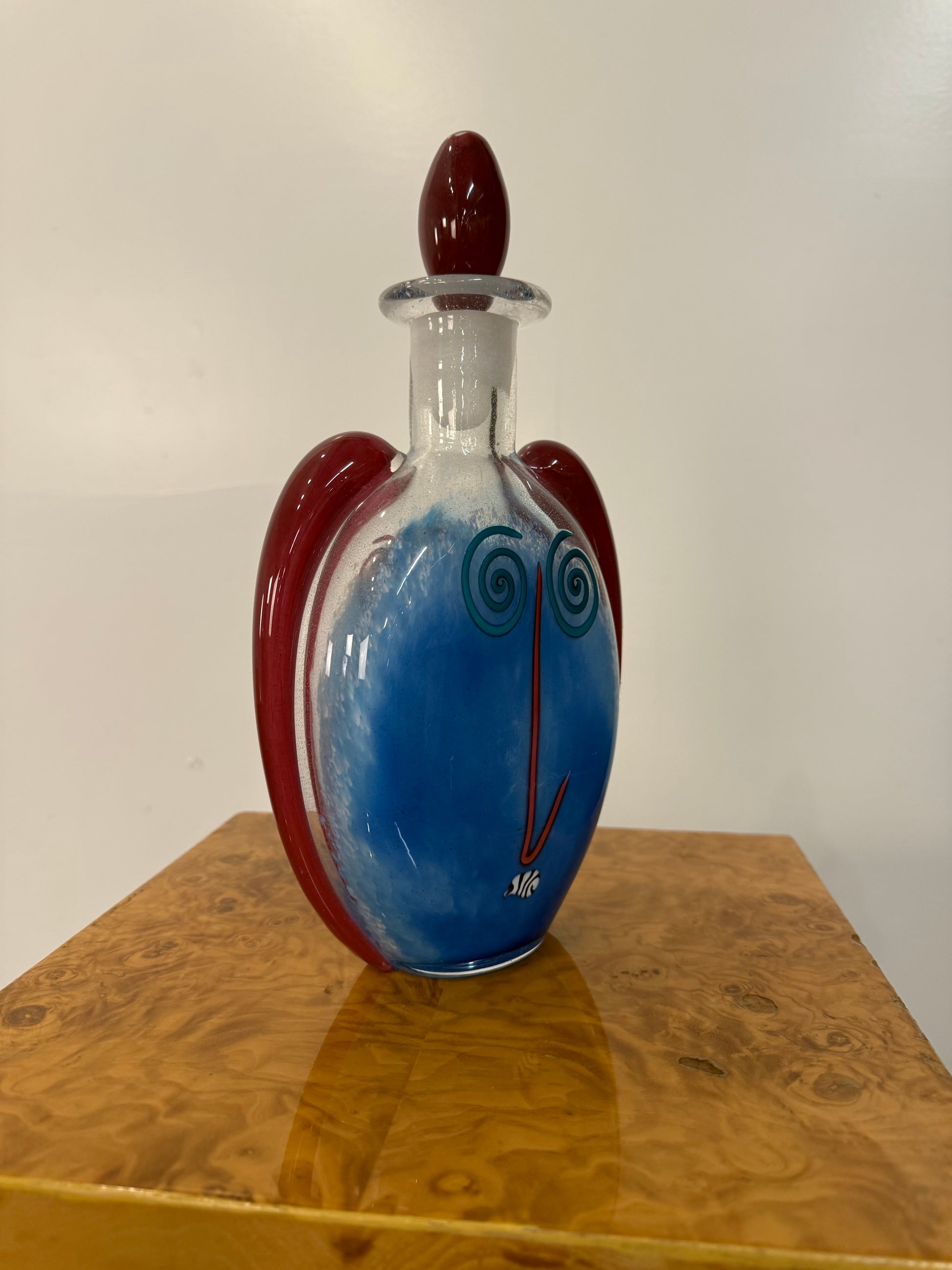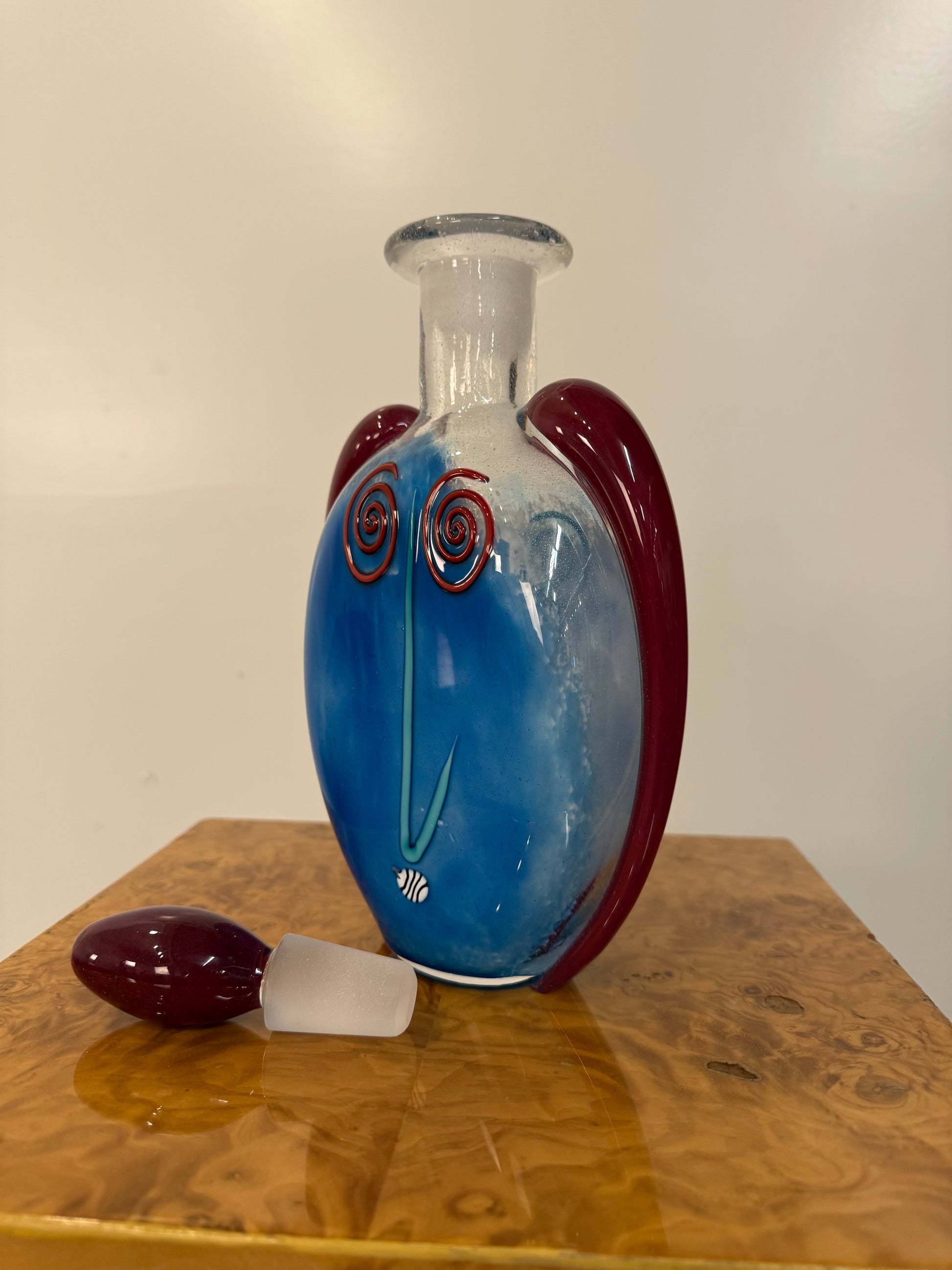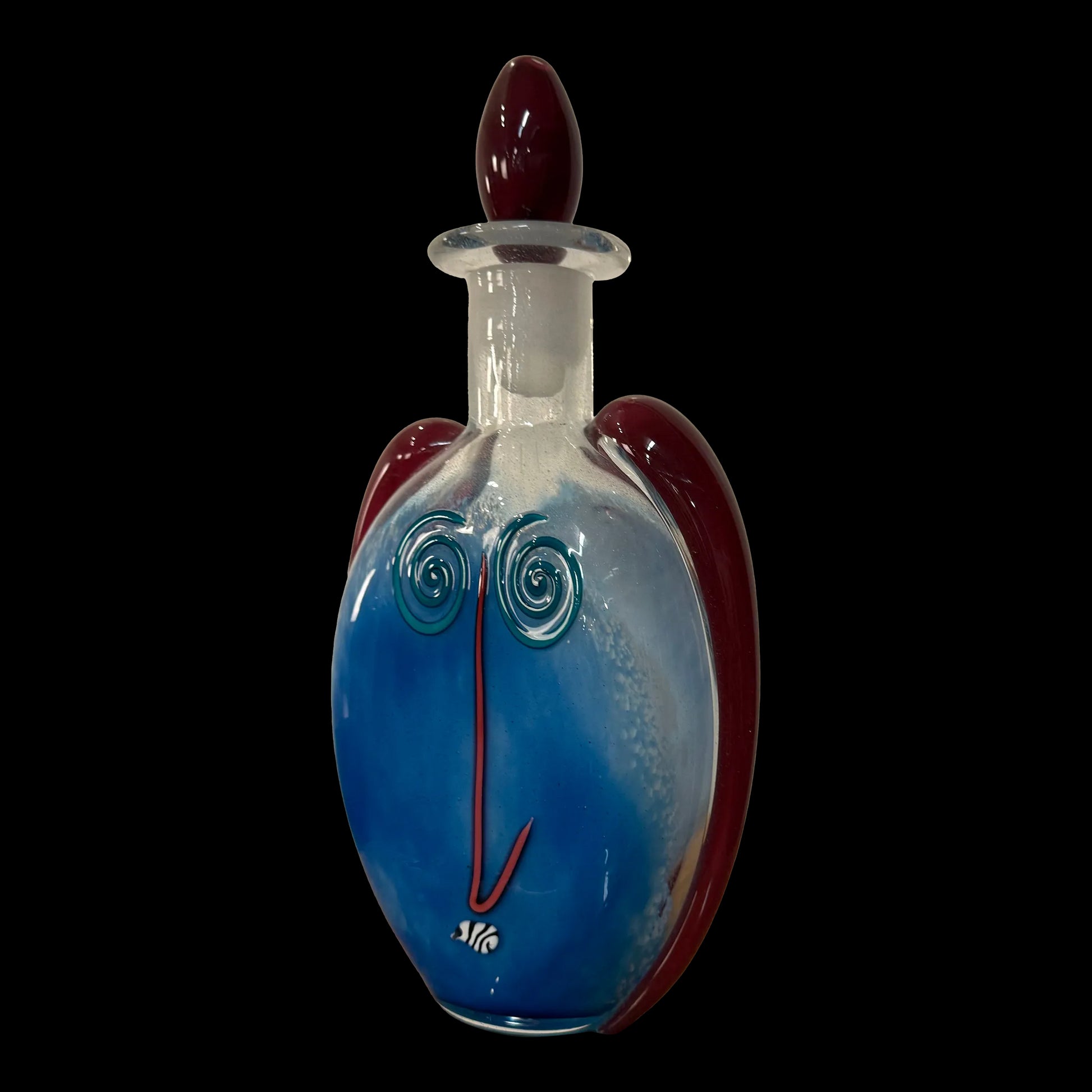 Fineline Studios by Kerry Feldman Handblown Glass Decanter, 1993 Handblown Glass Face Decanter