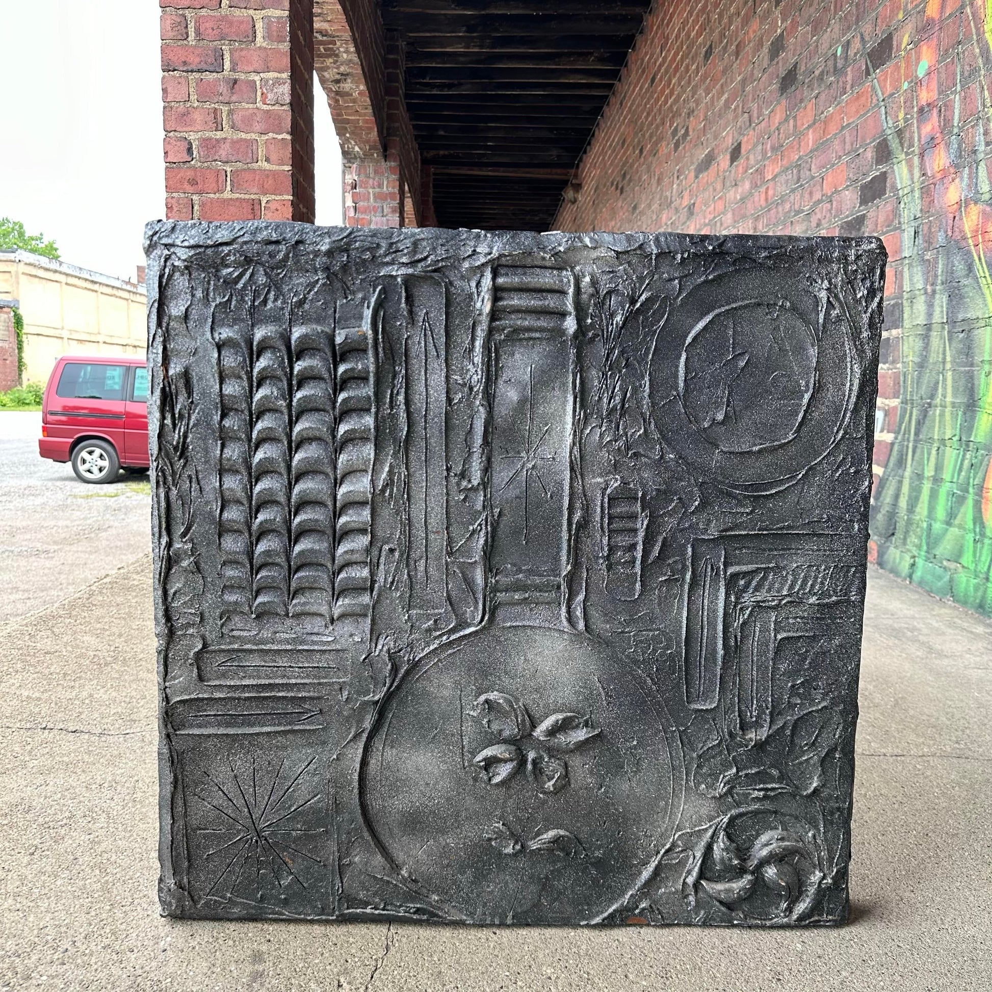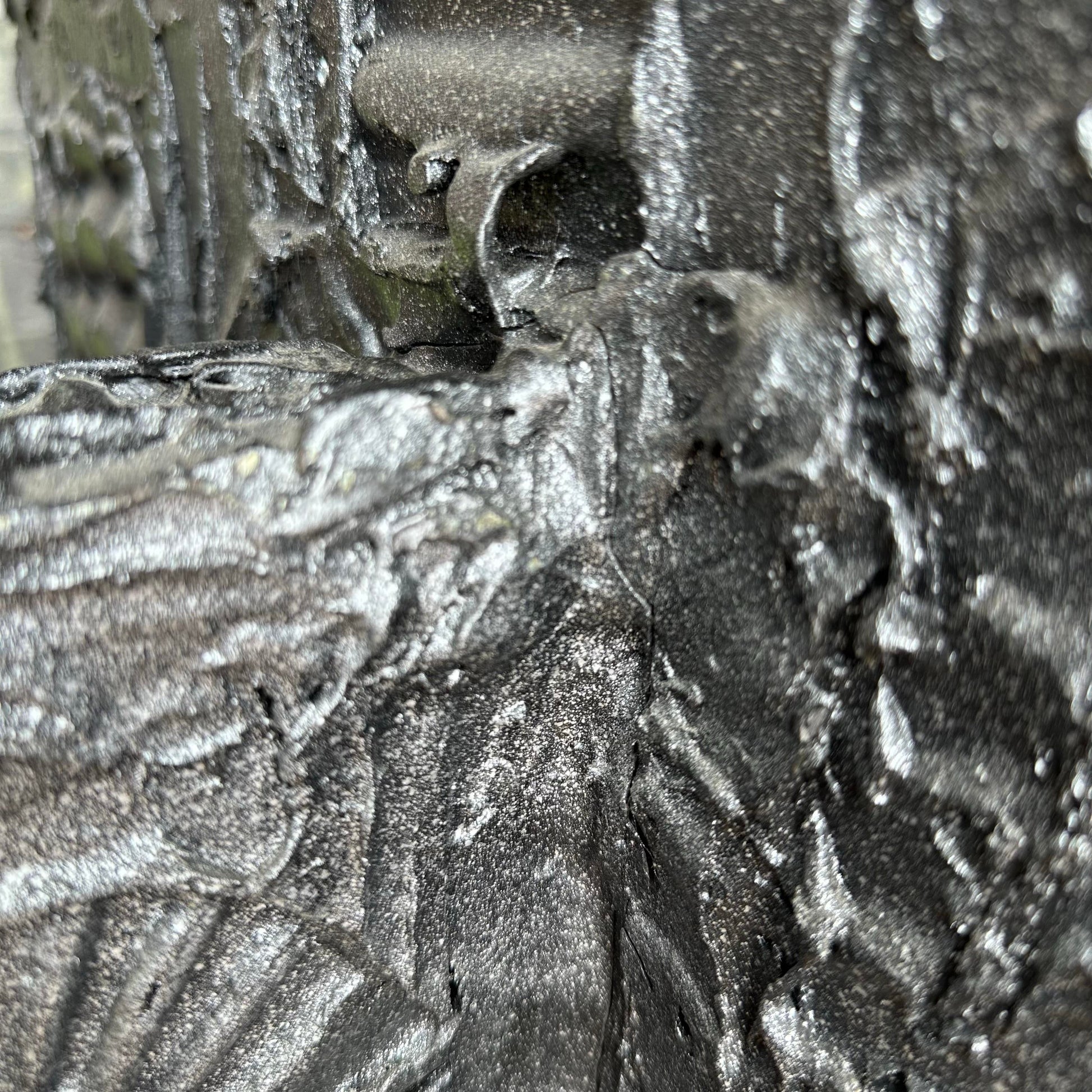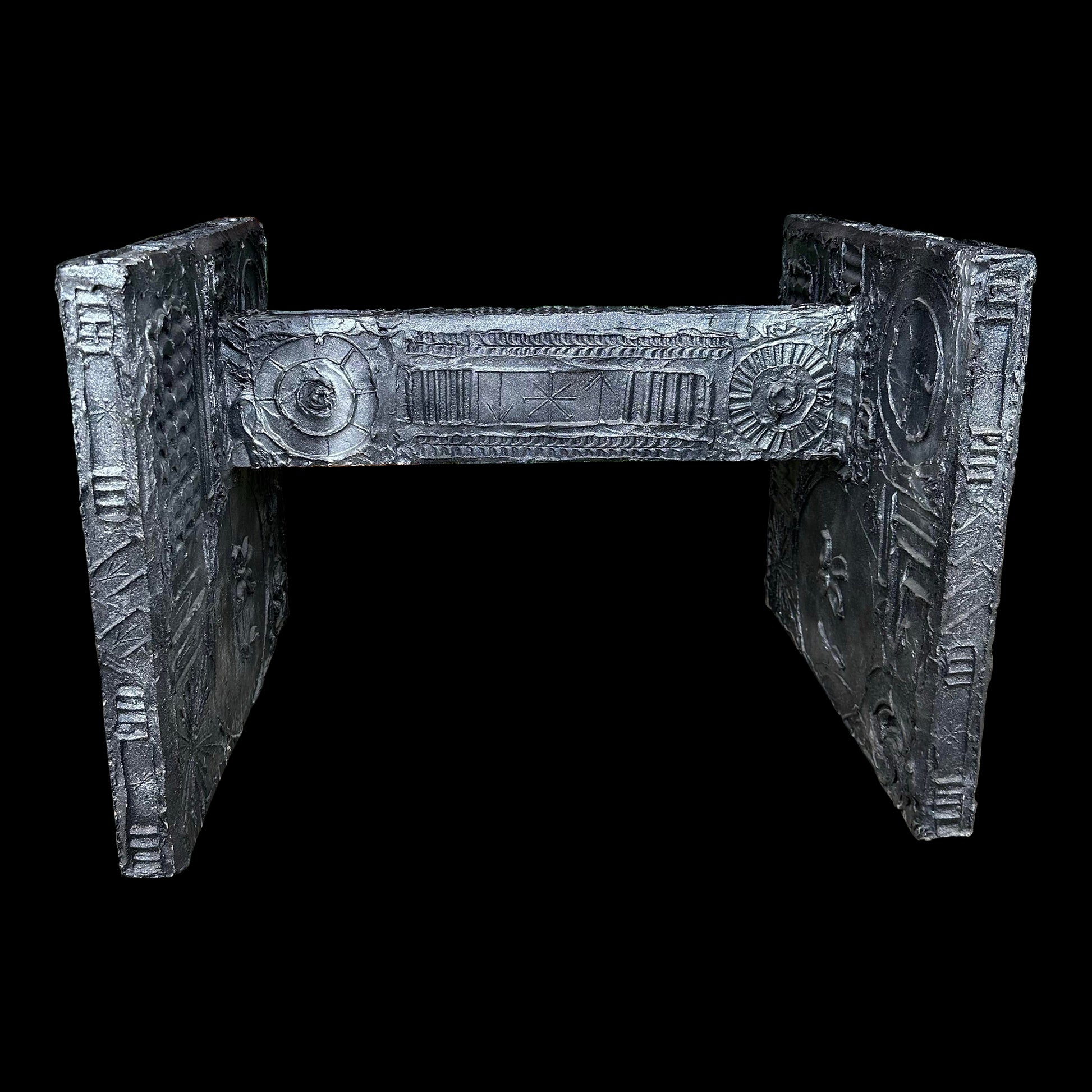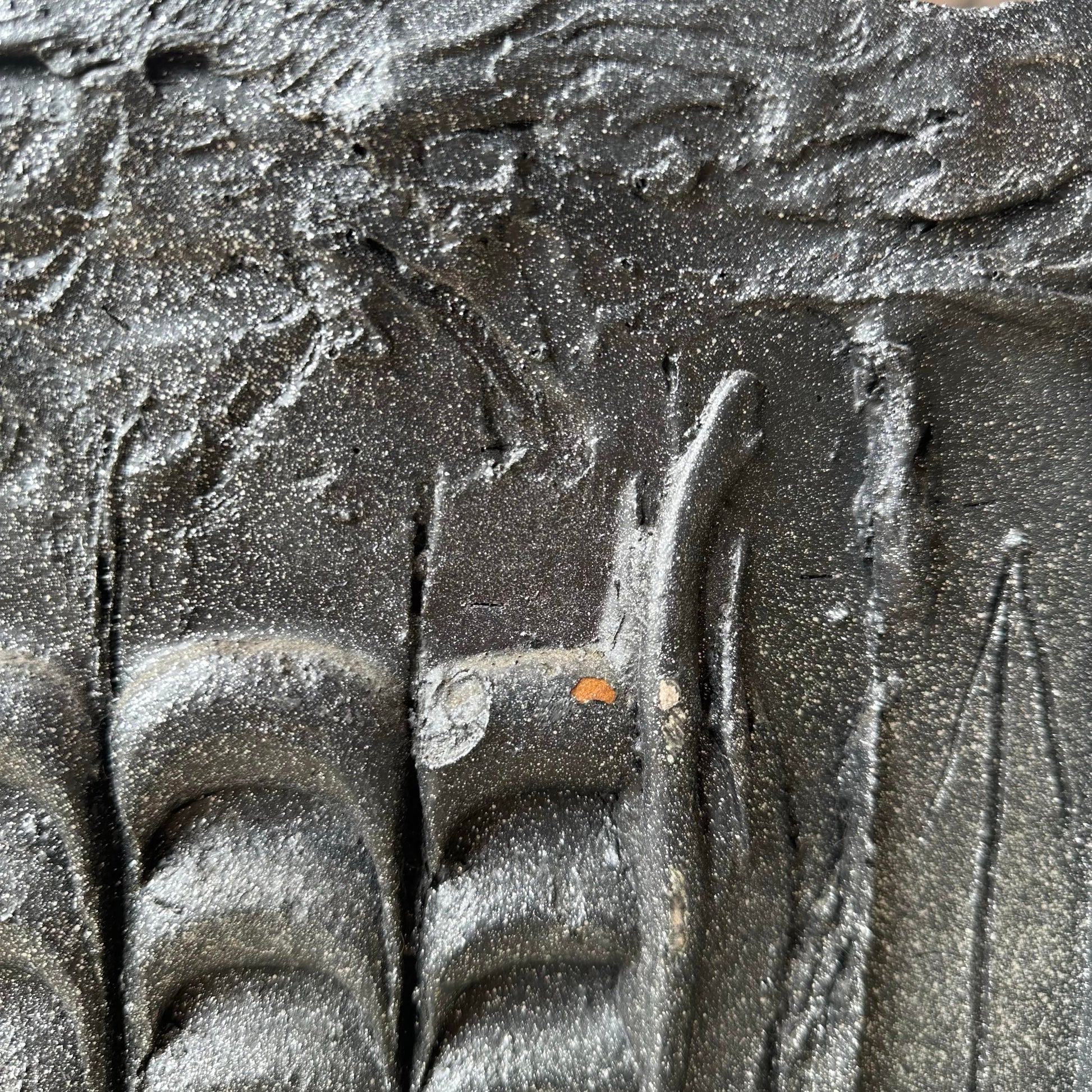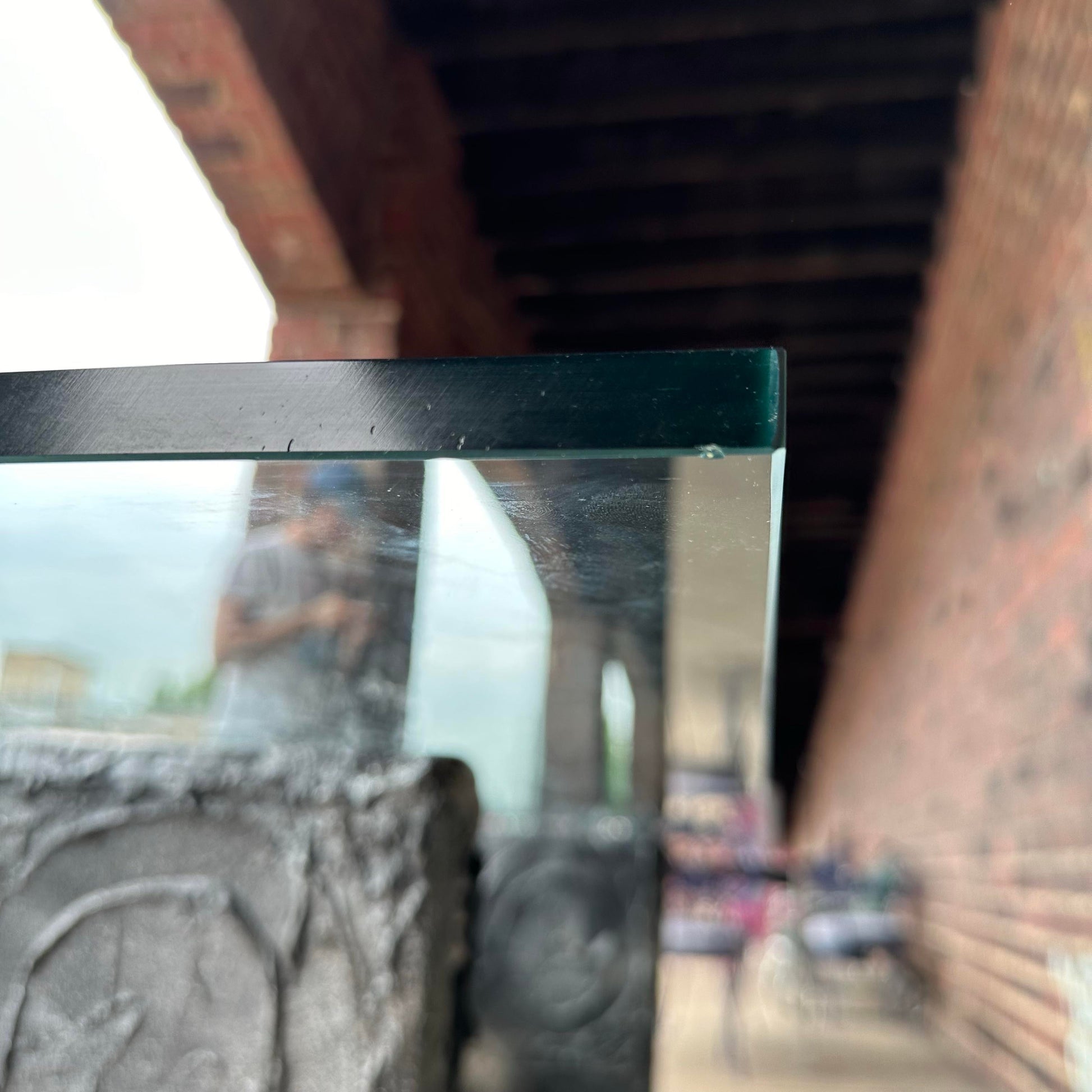 This wonderful Adrian Pearsall sculptural Brutalist dining table with glass top. This is part of the “goop” series. This piece is also well crafted with sculpted resin over wood with a black and silver glaze. You will not be disappointed with this masterpiece designed by Adrian Pearsall. This piece is unmarked.