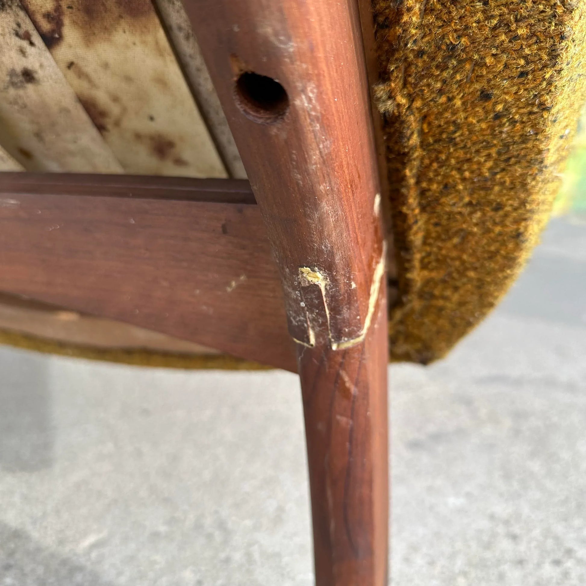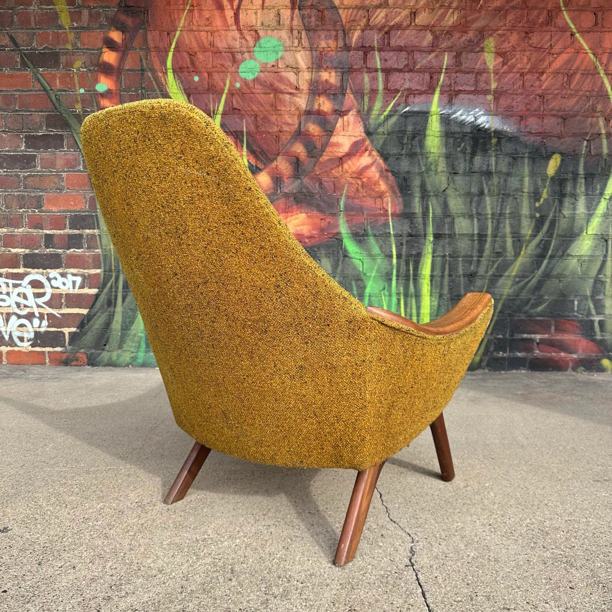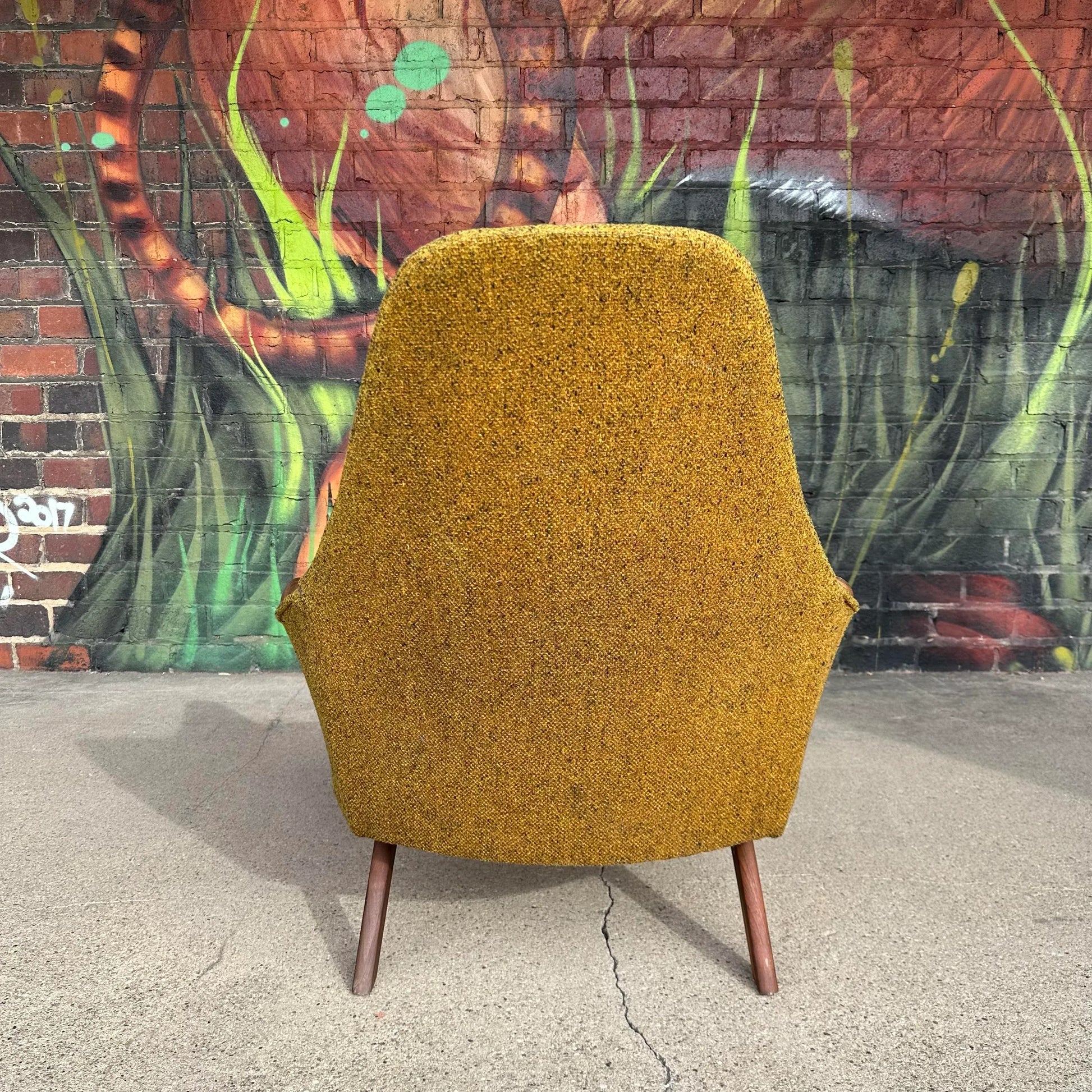Adrian Pearsall for Craft Associates walnut lounge chair. This chair has a classic retro silhouette that blends sculptural and stylish elements in a practical way. The tall back tapers and the arm rests have solid walnut detailing.