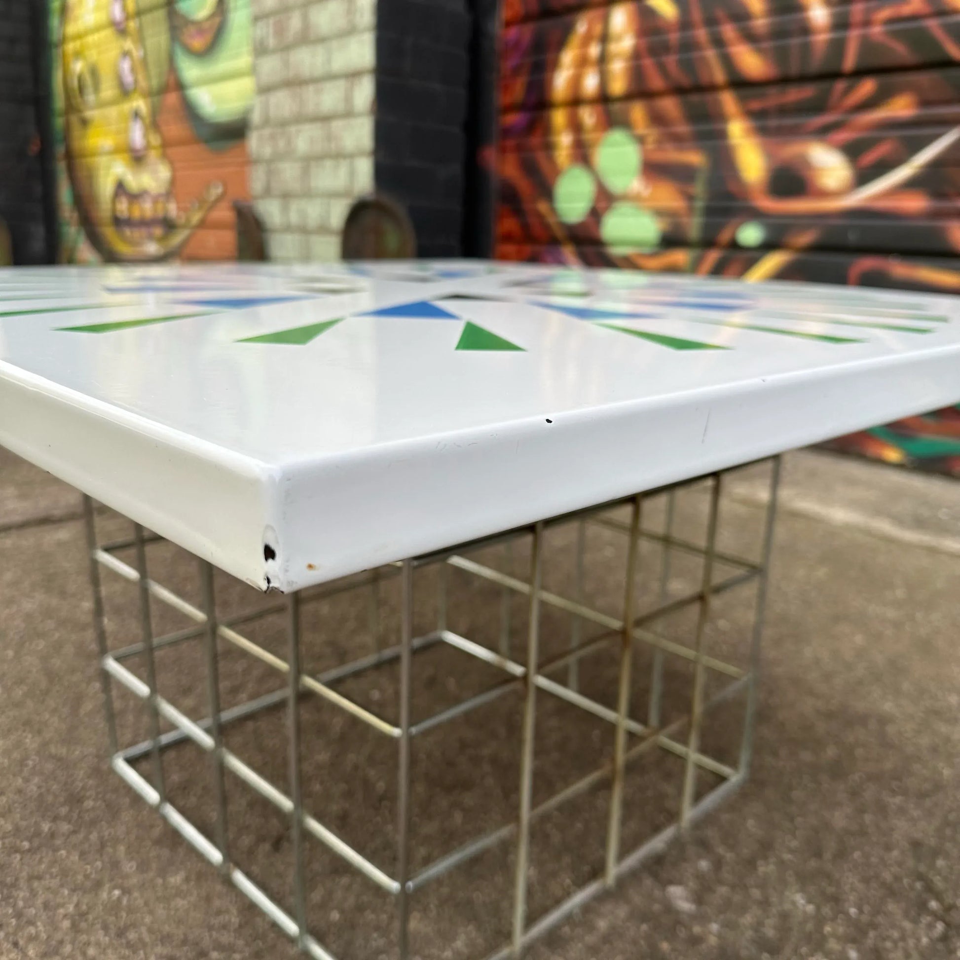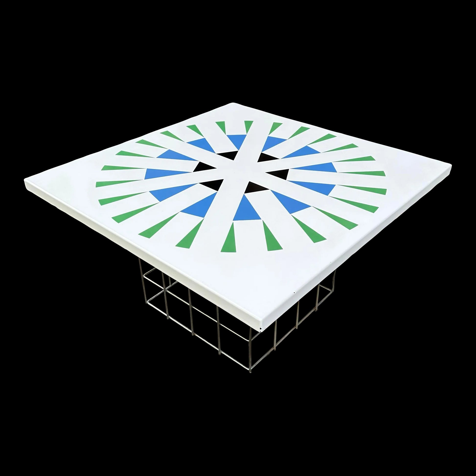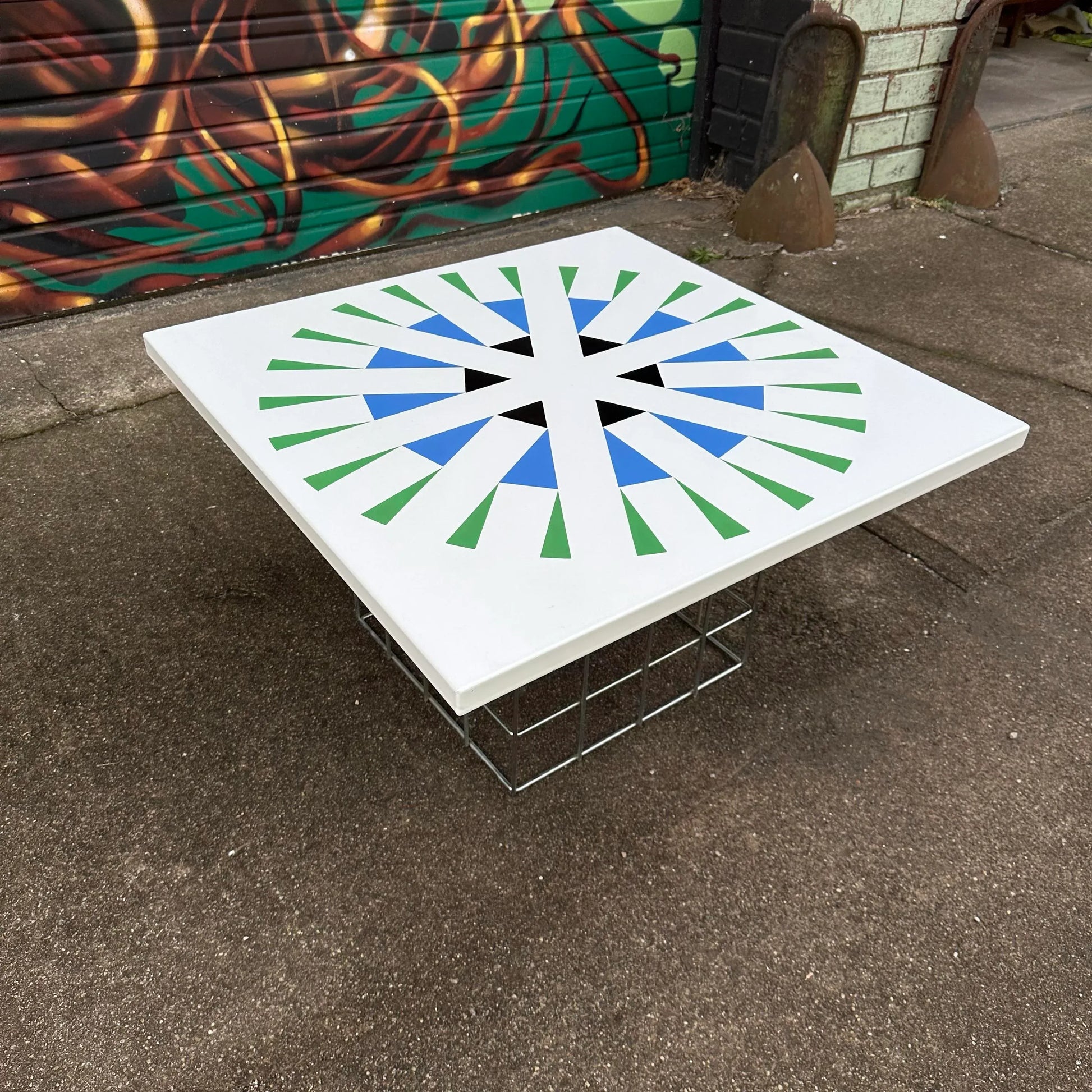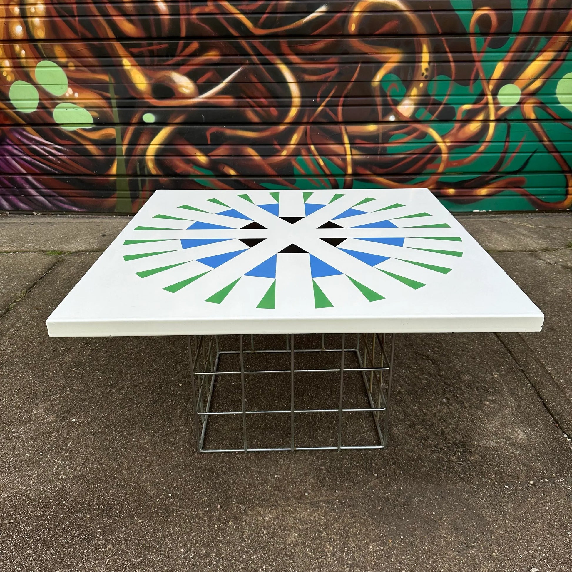 Amazing Geometric Enamel Top With Chrome Wire Bottom Side Table Alexander Girard