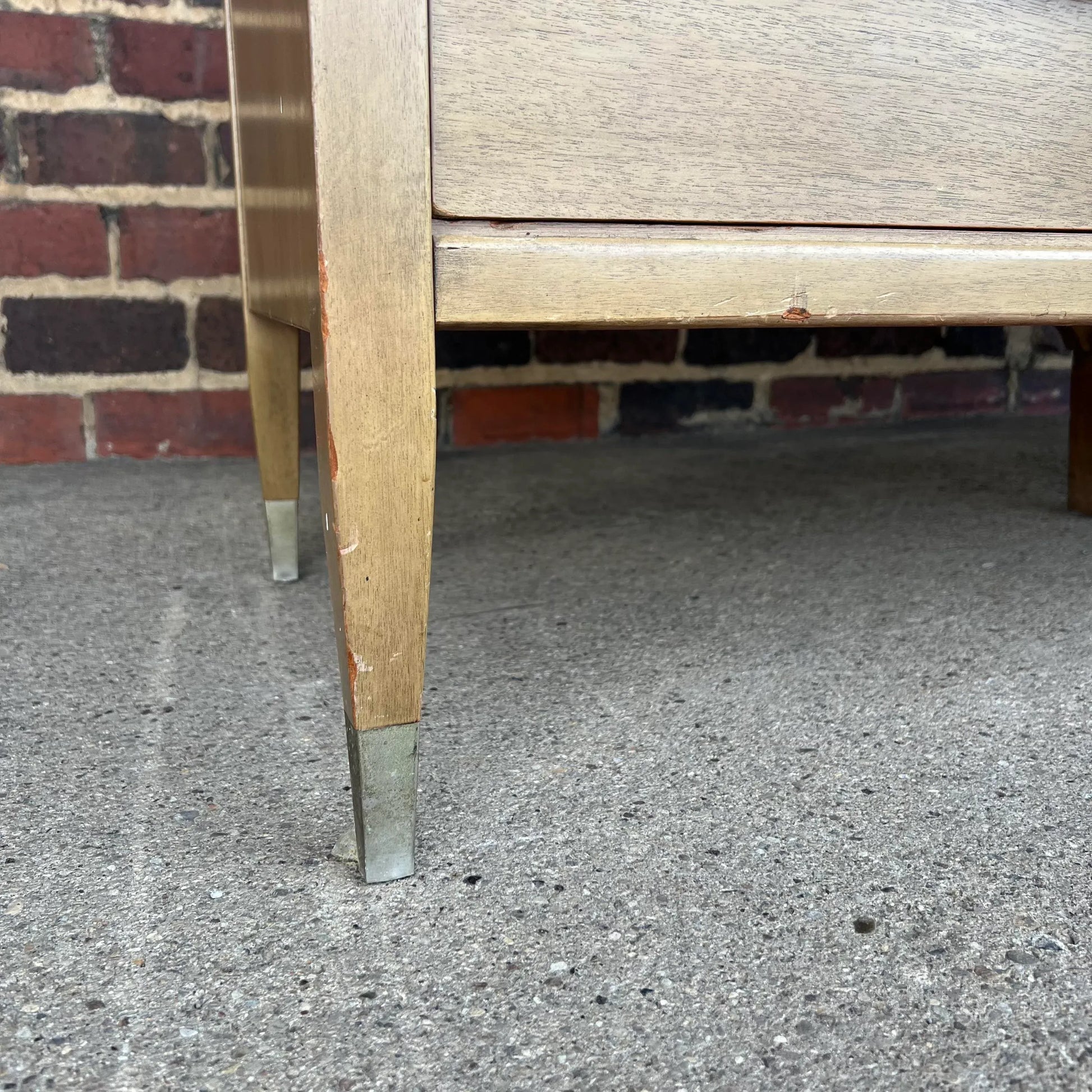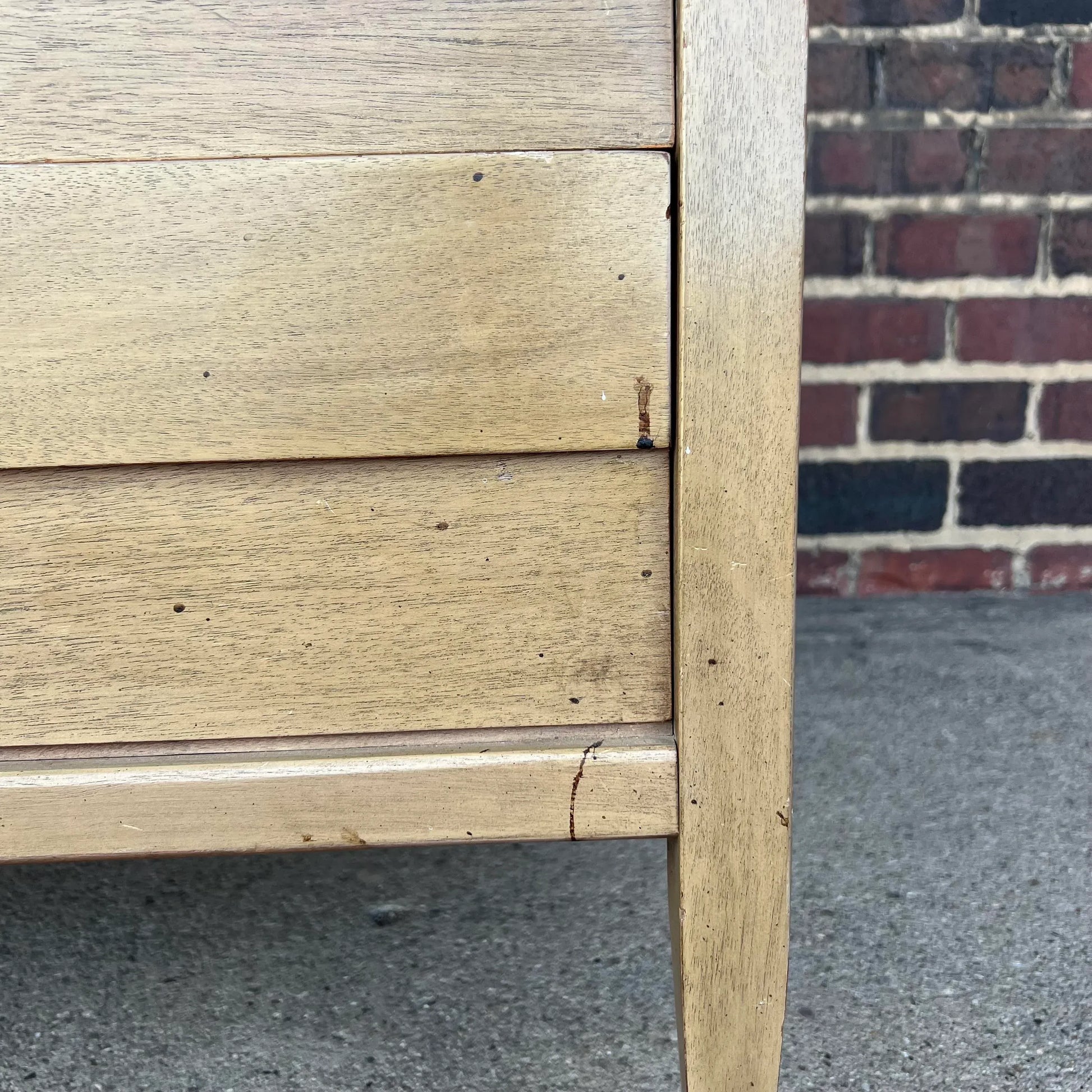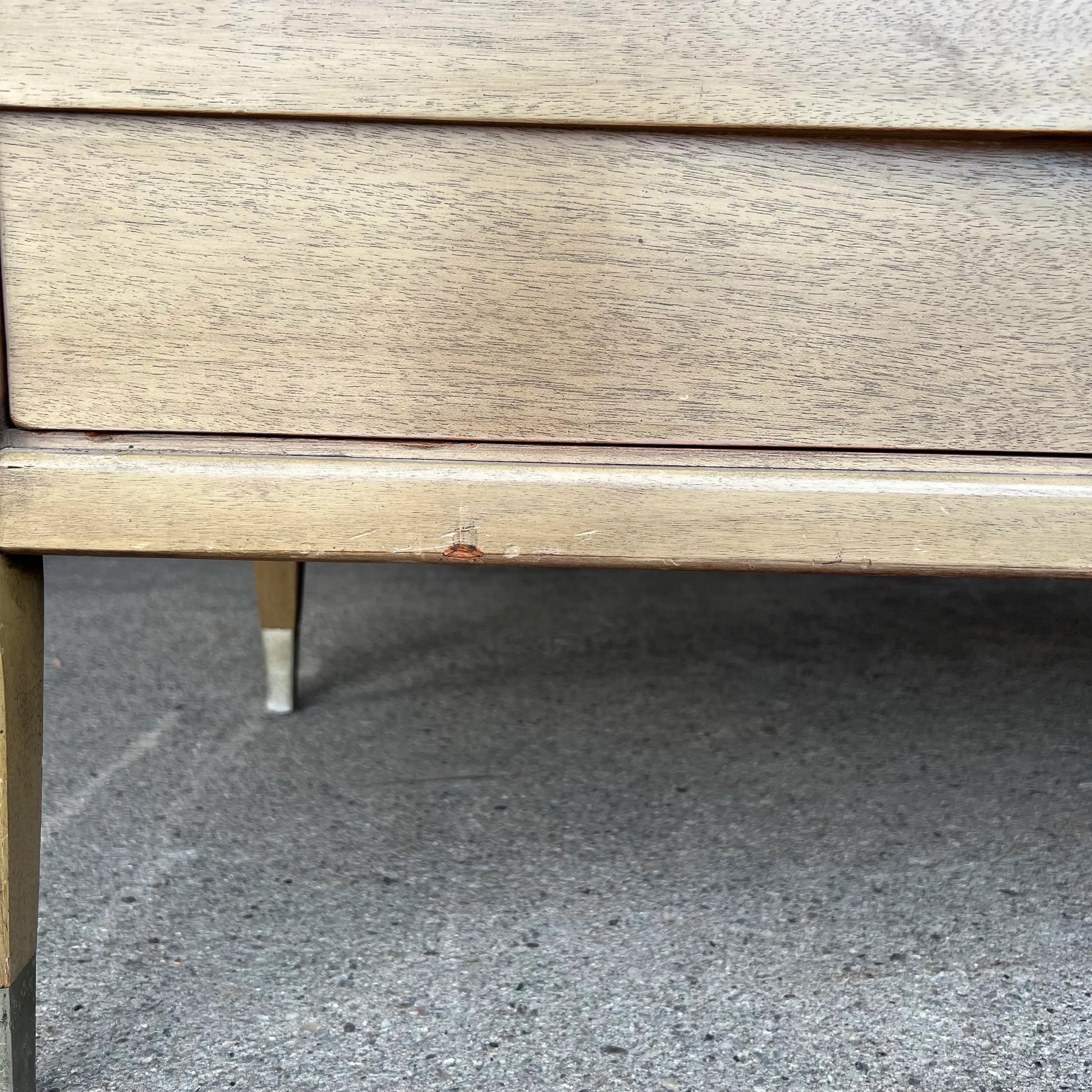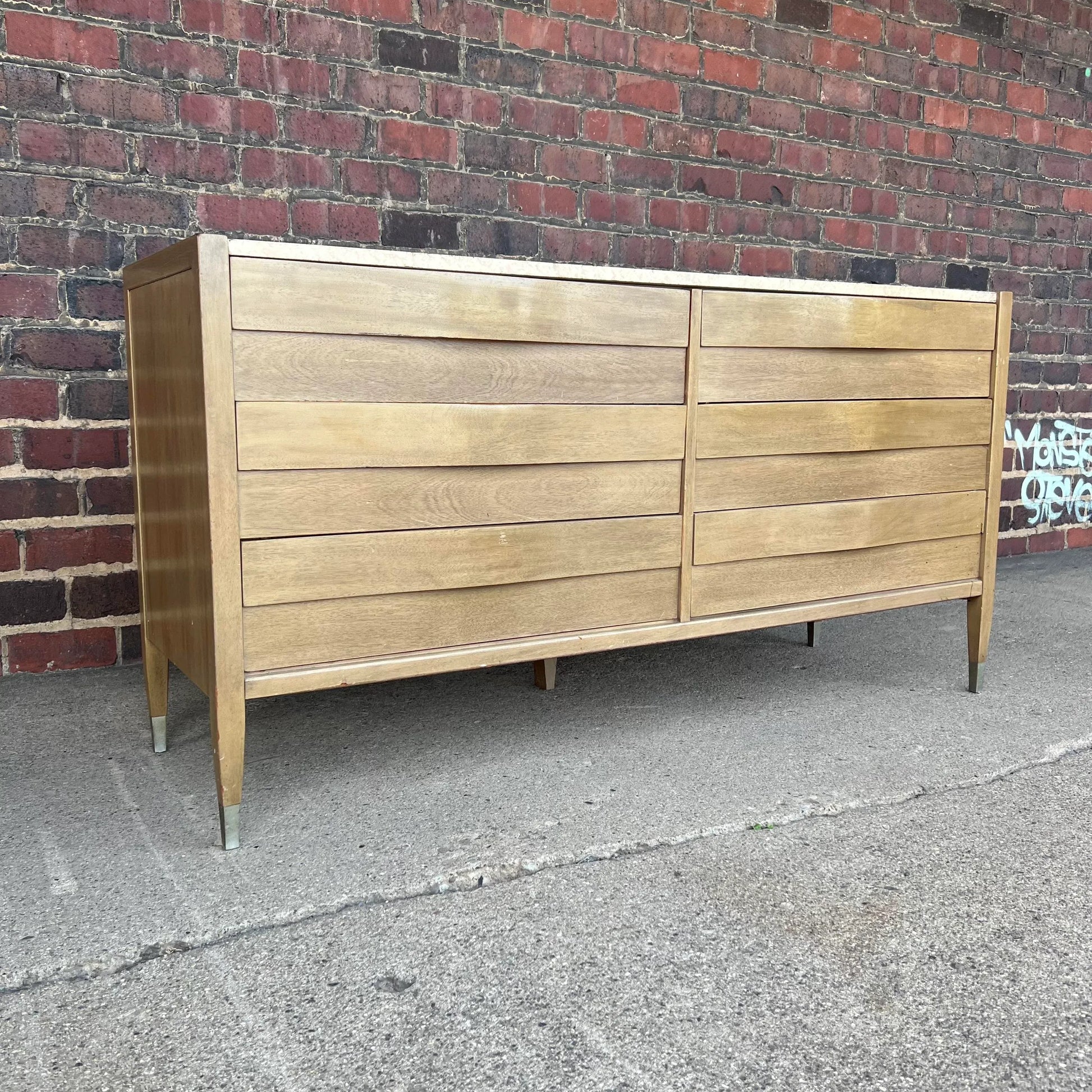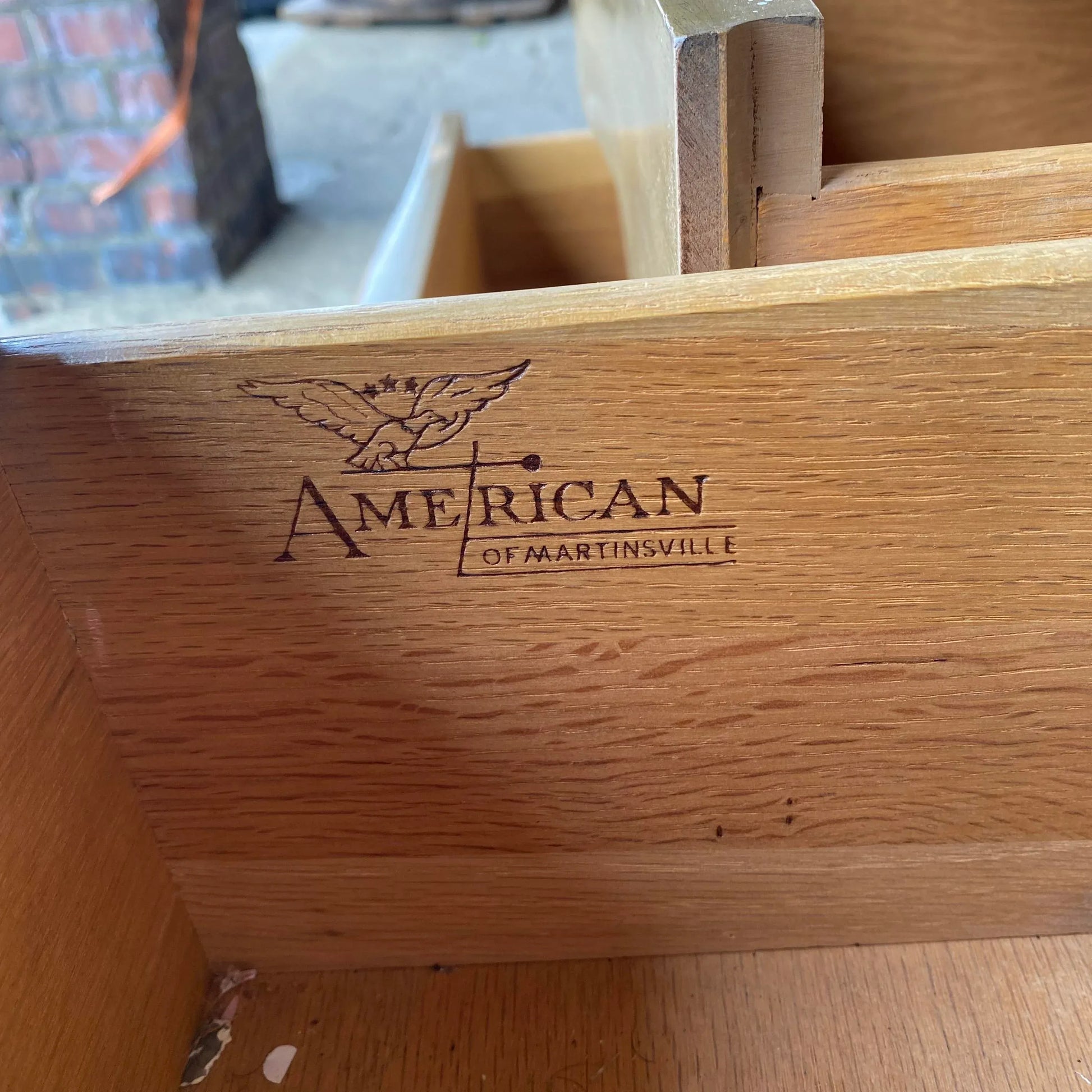 American of Martinsville long low dresser with waved front drawers and travertine top.