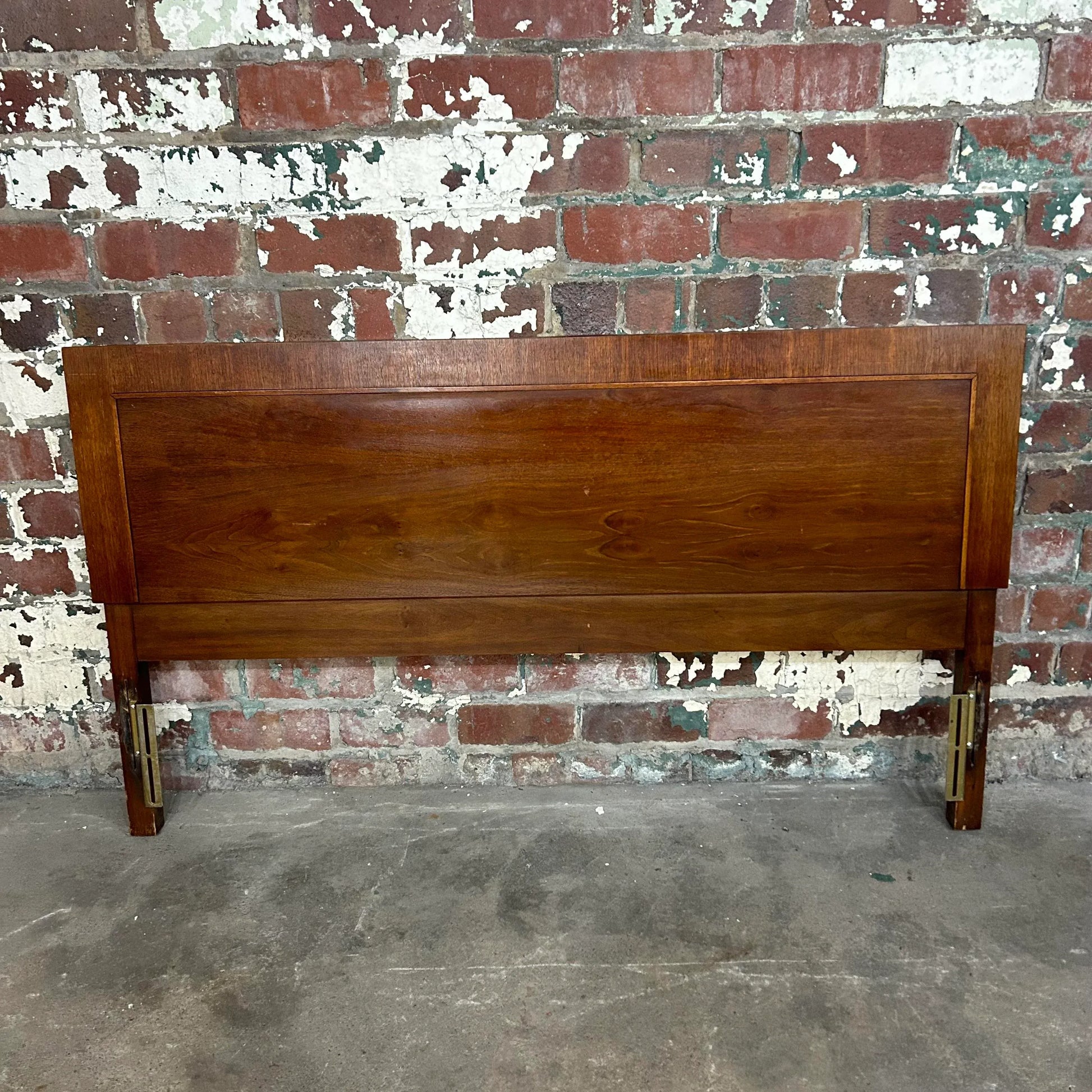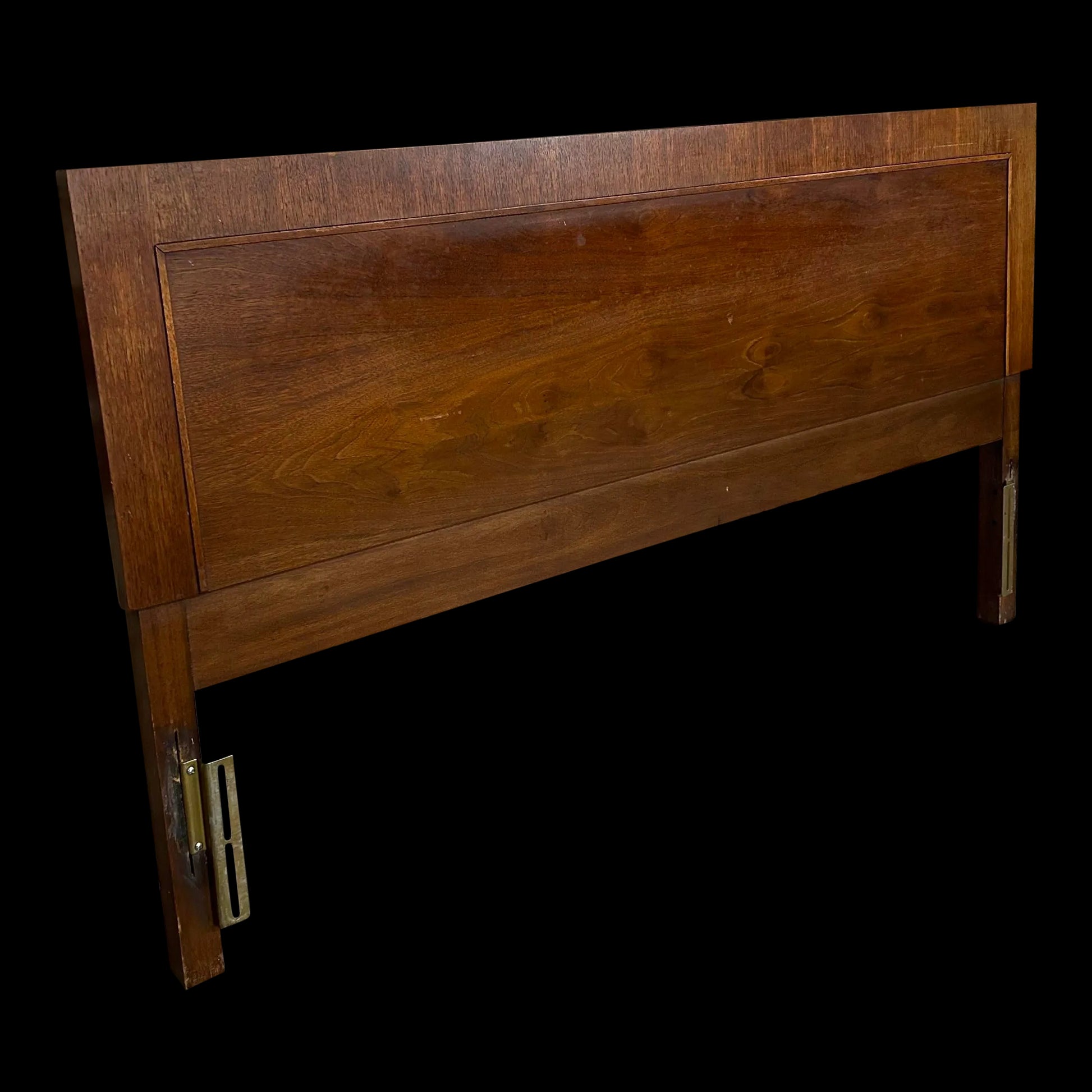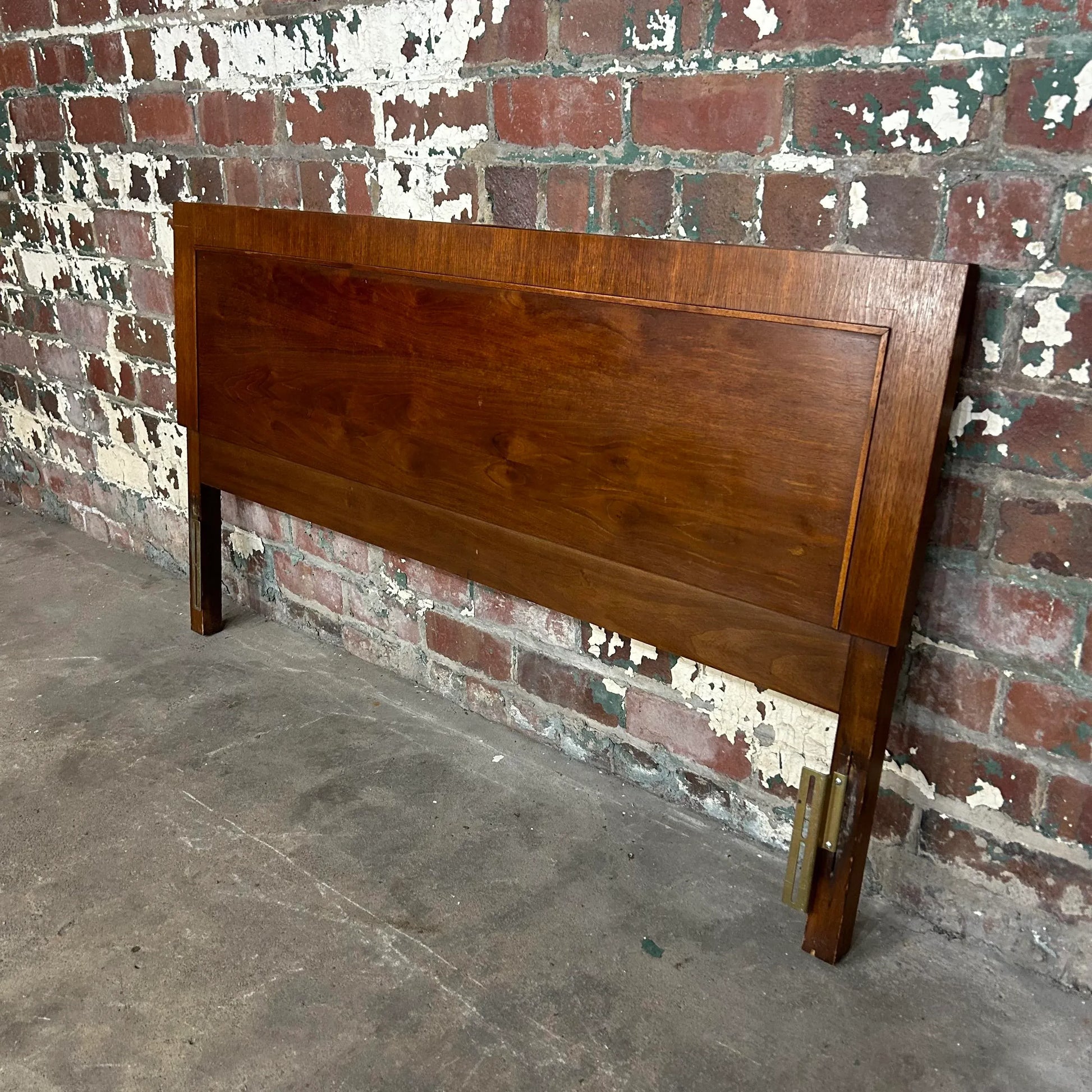 Mid century modern full size headboard made by American of Martinsville. This piece is a sleek rectangular shape constructed out of a sturdy walnut wood.