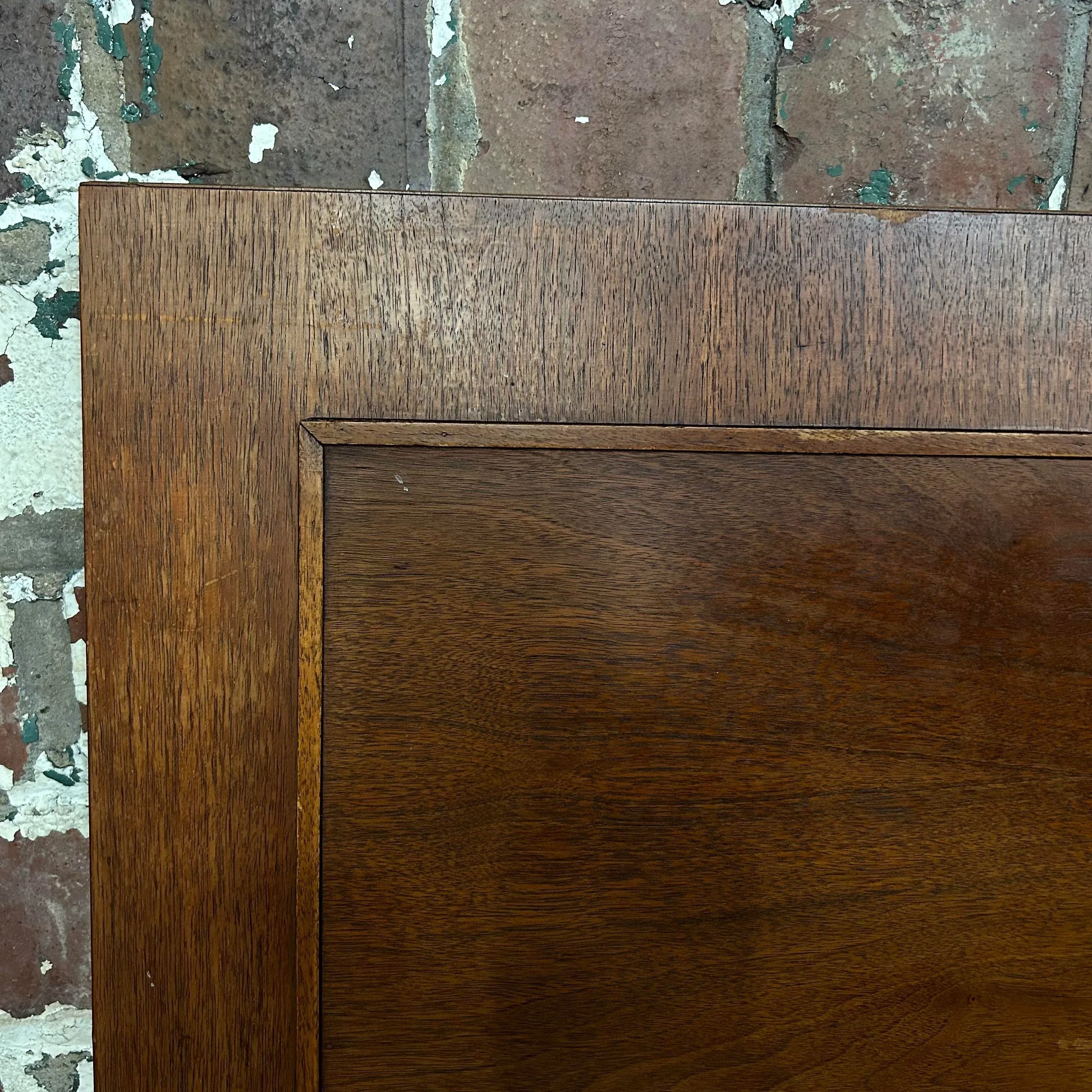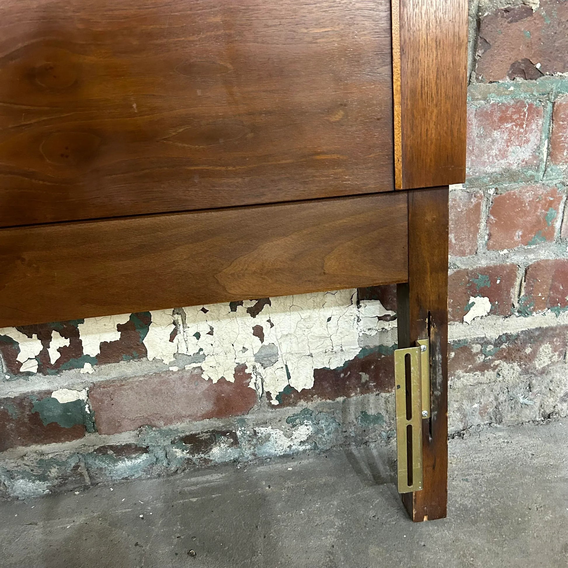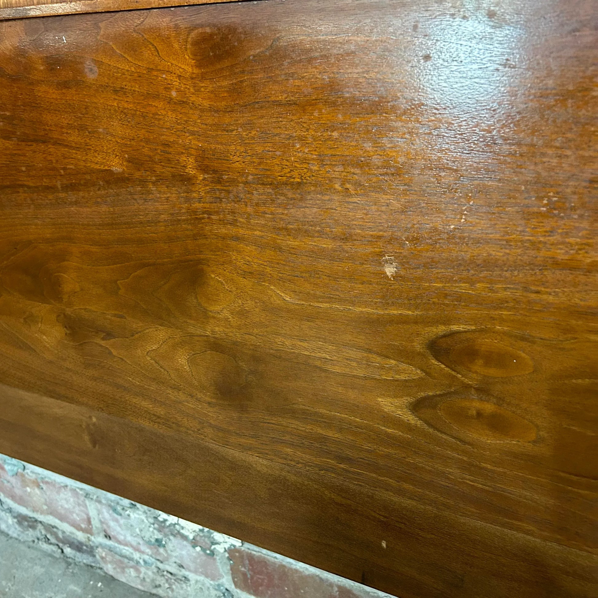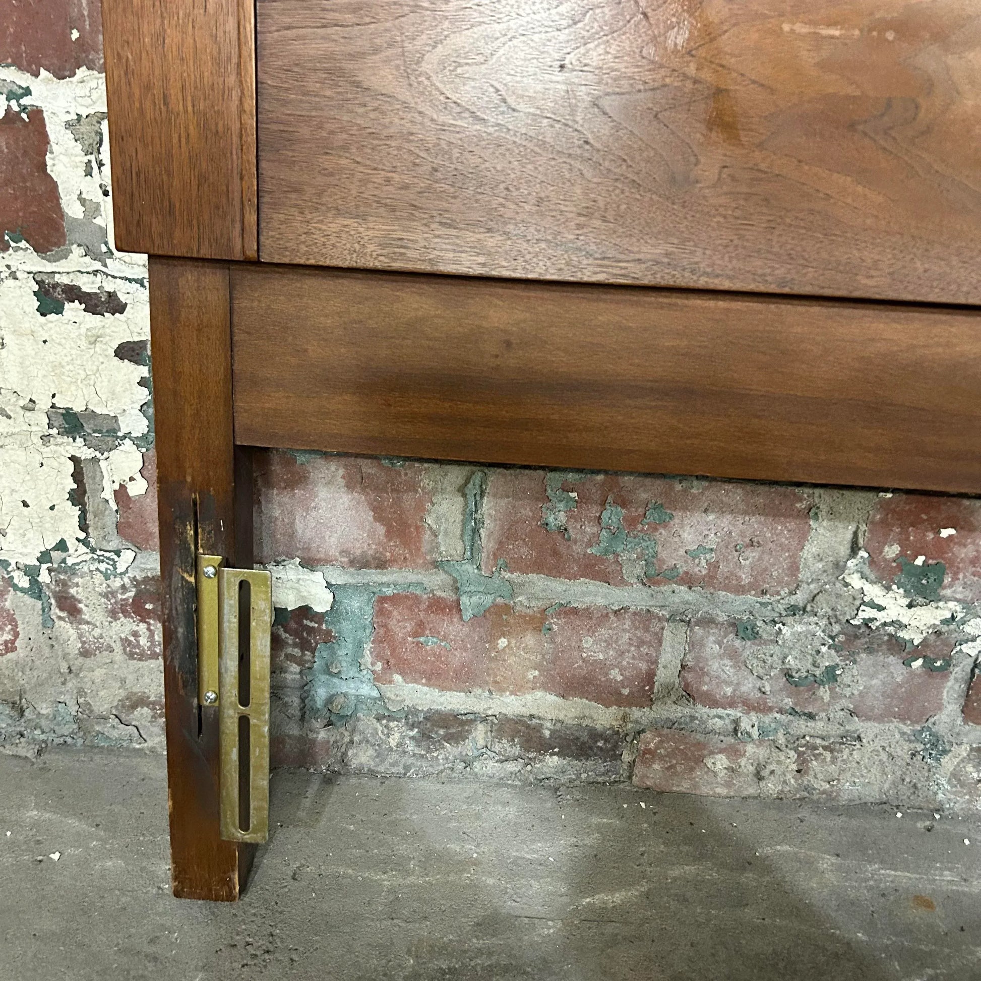 Mid century modern full size headboard made by American of Martinsville. This piece is a sleek rectangular shape constructed out of a sturdy walnut wood.