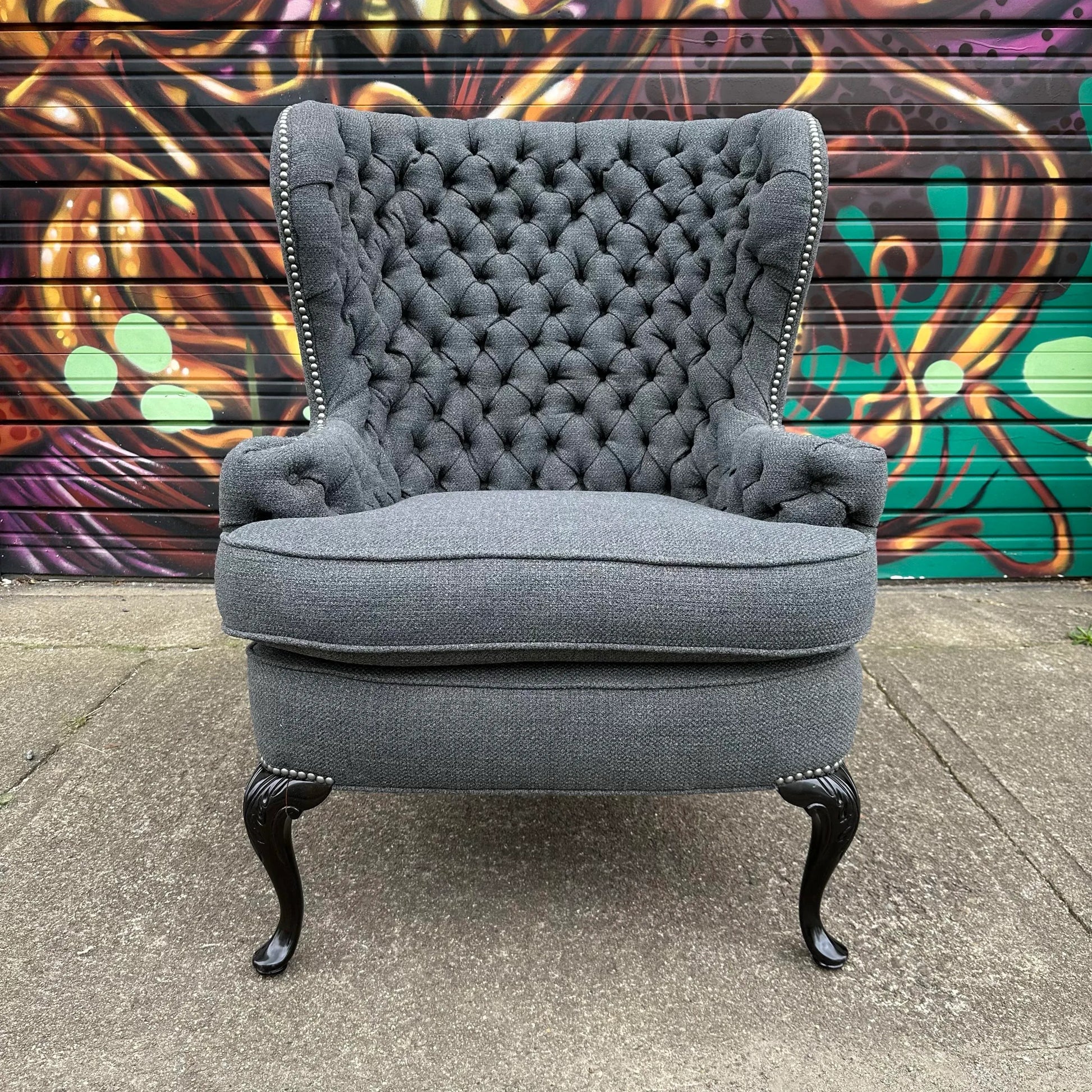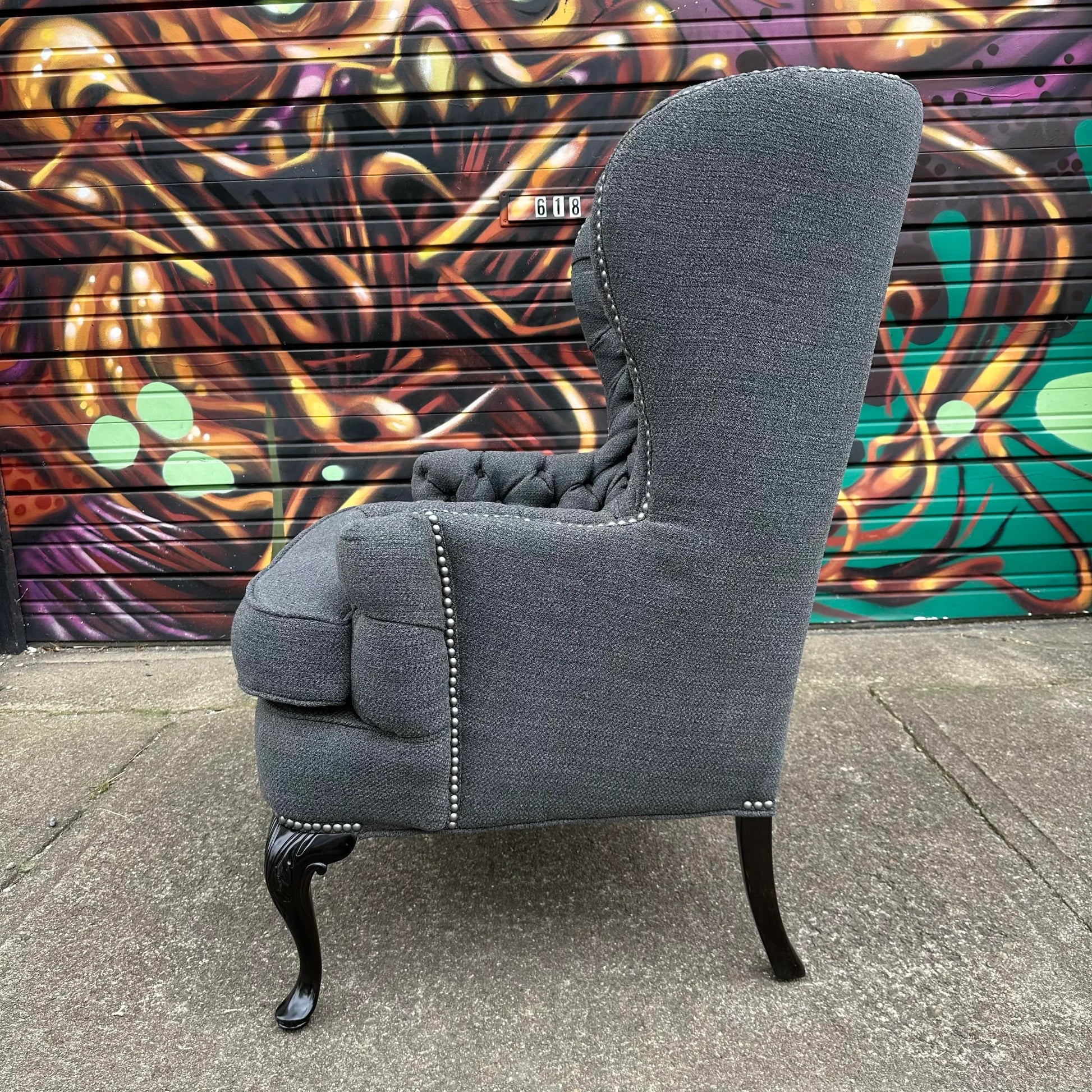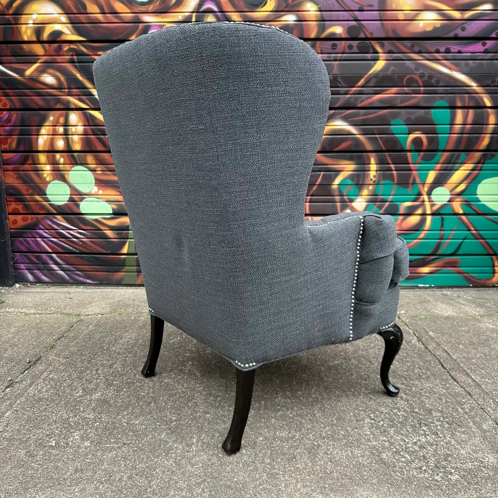 Tall wing back chair reupholstered with all