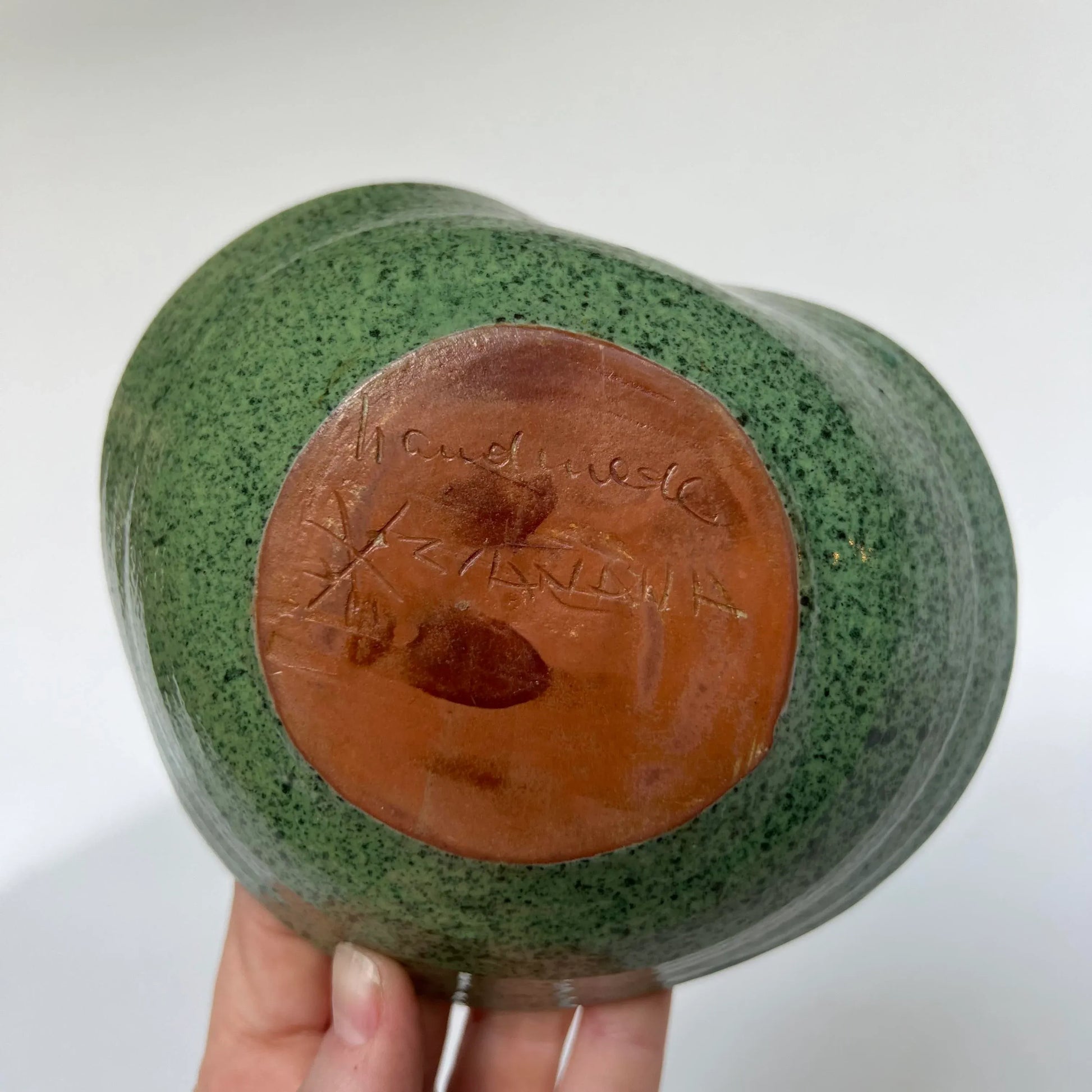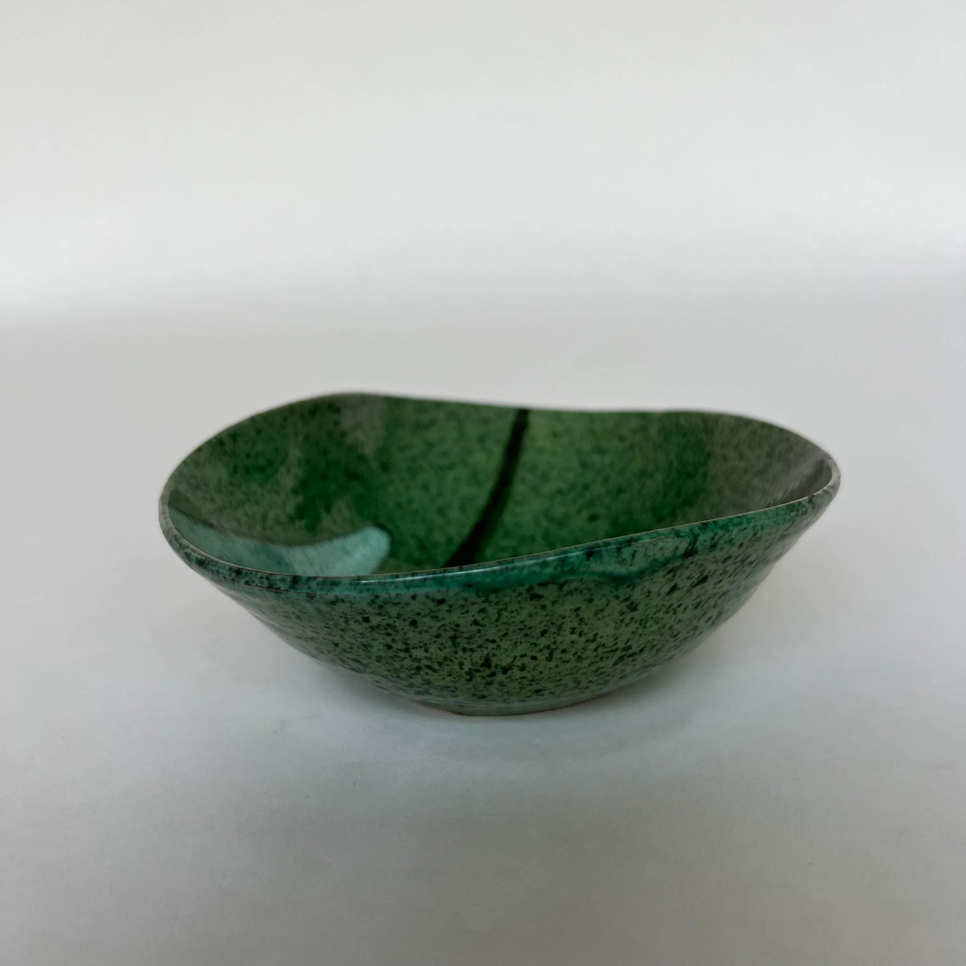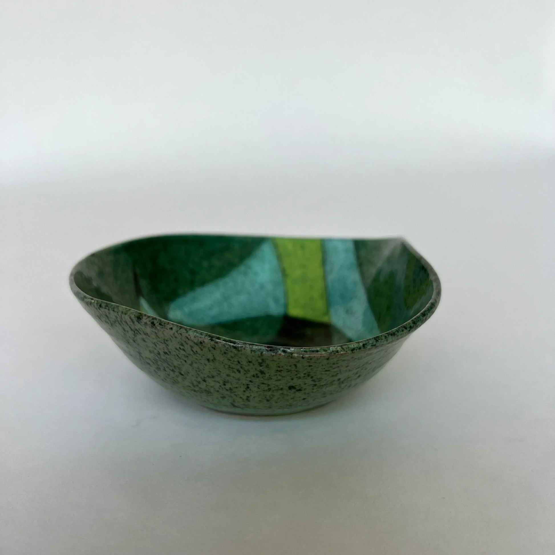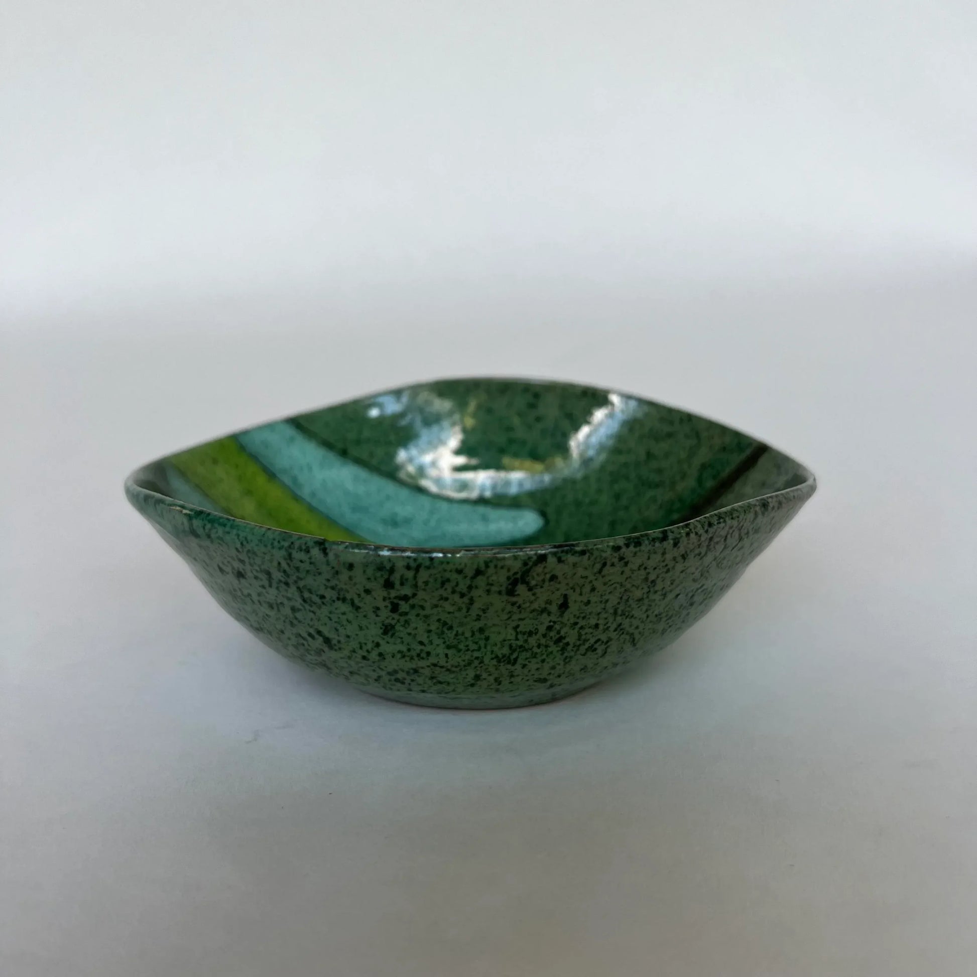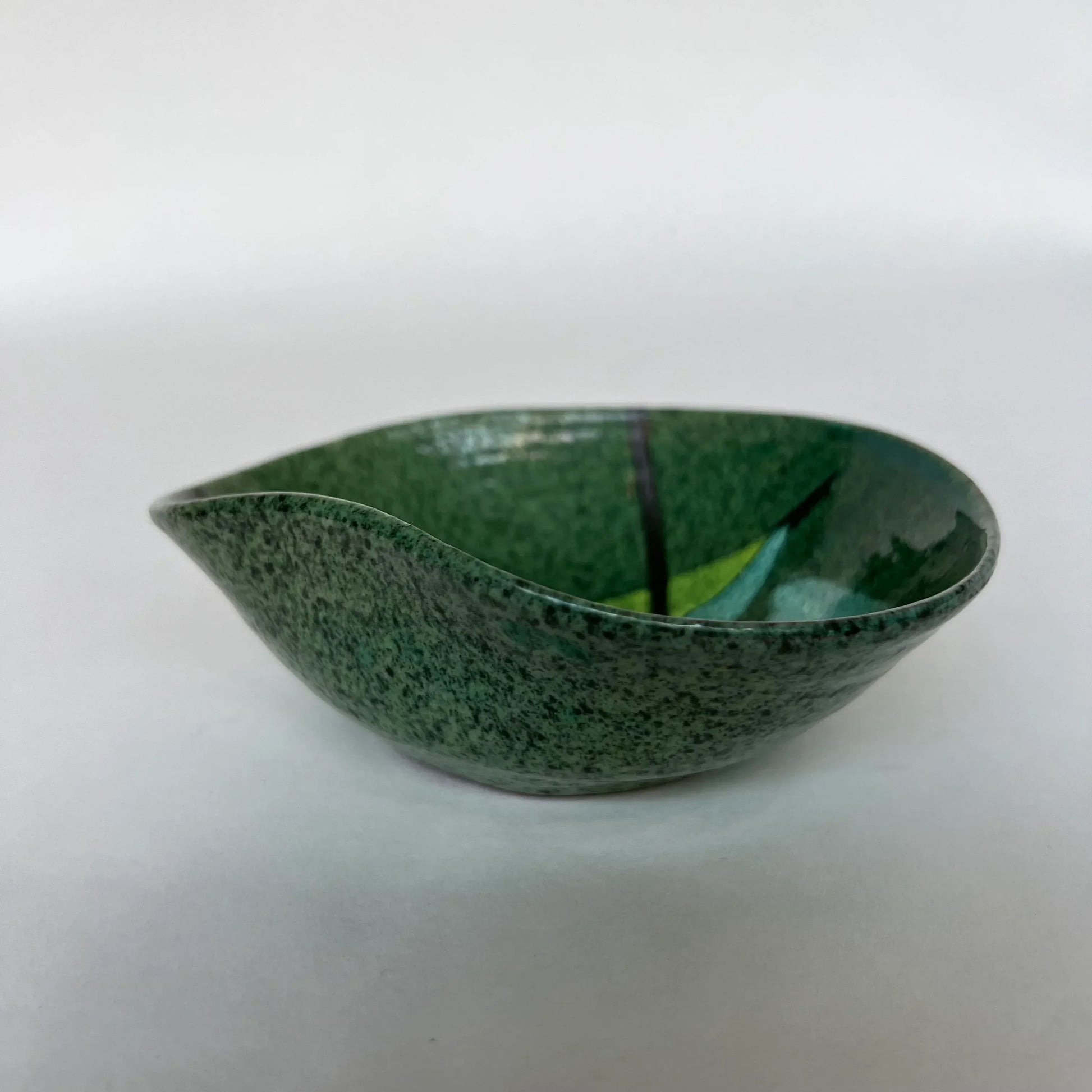 Beautifully Shaped Ceramic Dish With Bird Design Blue Green Teal Signed