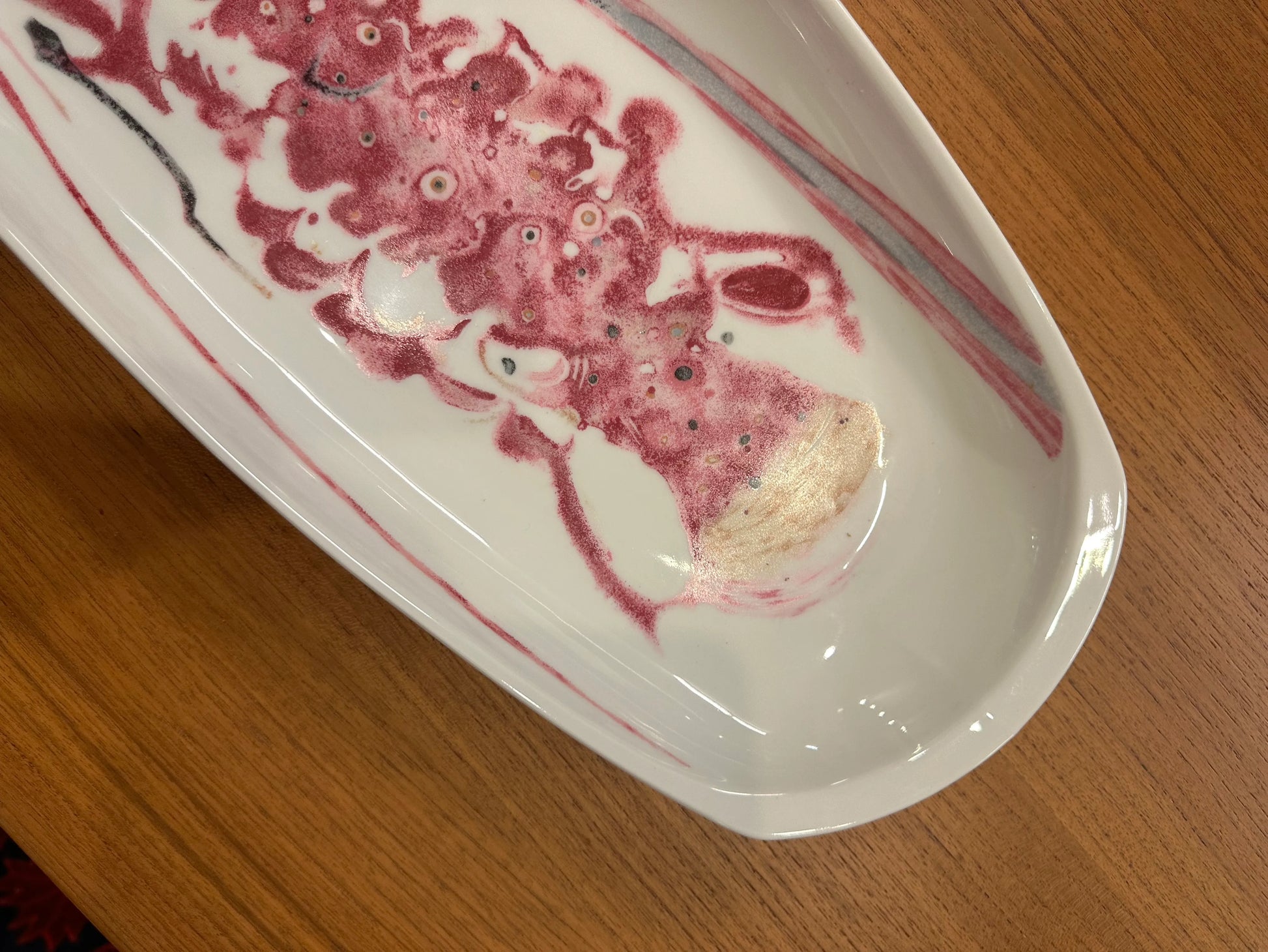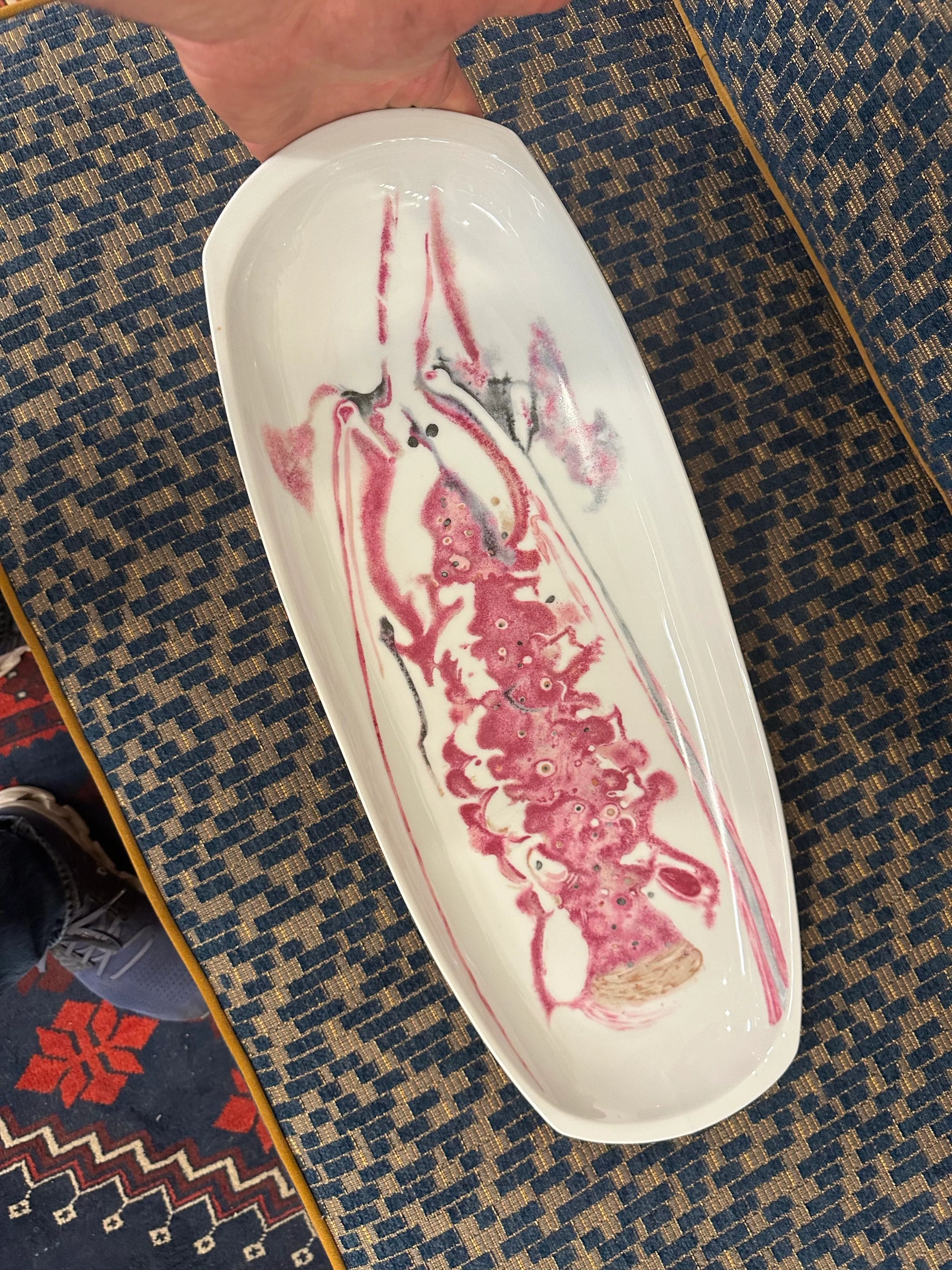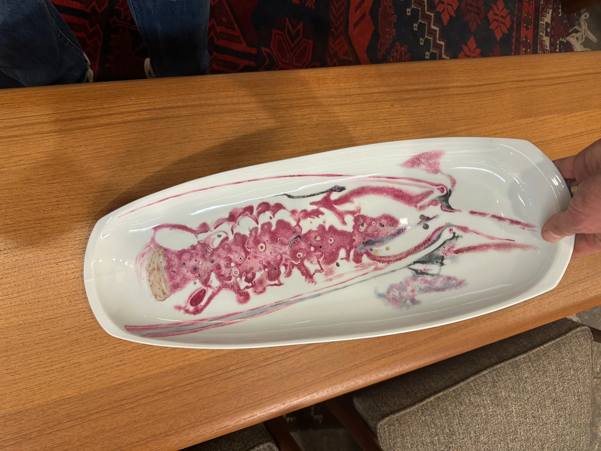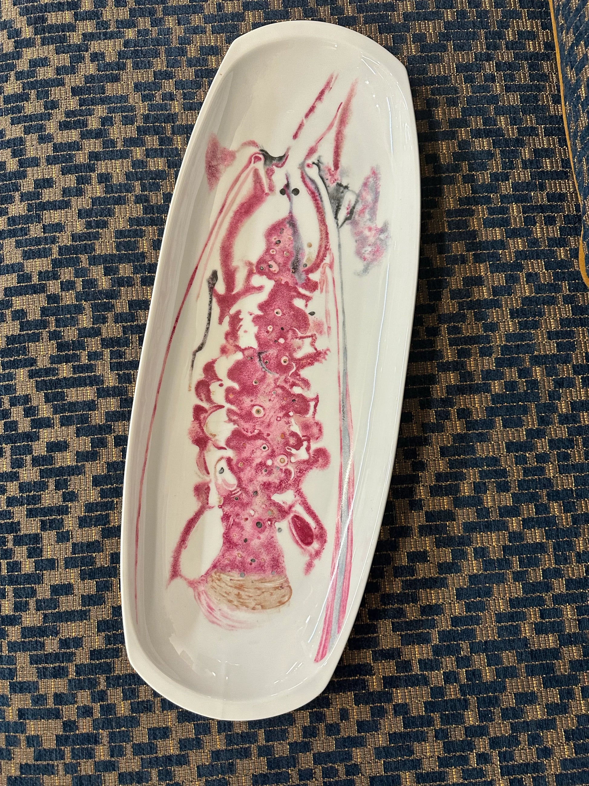 Exquisite “Homerus” lobster ceramic serving dish by Bernard and Limoges. Known for its remarkable craftsmanship, Limoges porcelain is celebrated worldwide for quality and artistry, and this piece is no exception. With intricate hand-painted details, this serving dish captures the beauty of a lobster in vibrant, lifelike colors, making it a true centerpiece for seafood presentations or an elegant display piece.