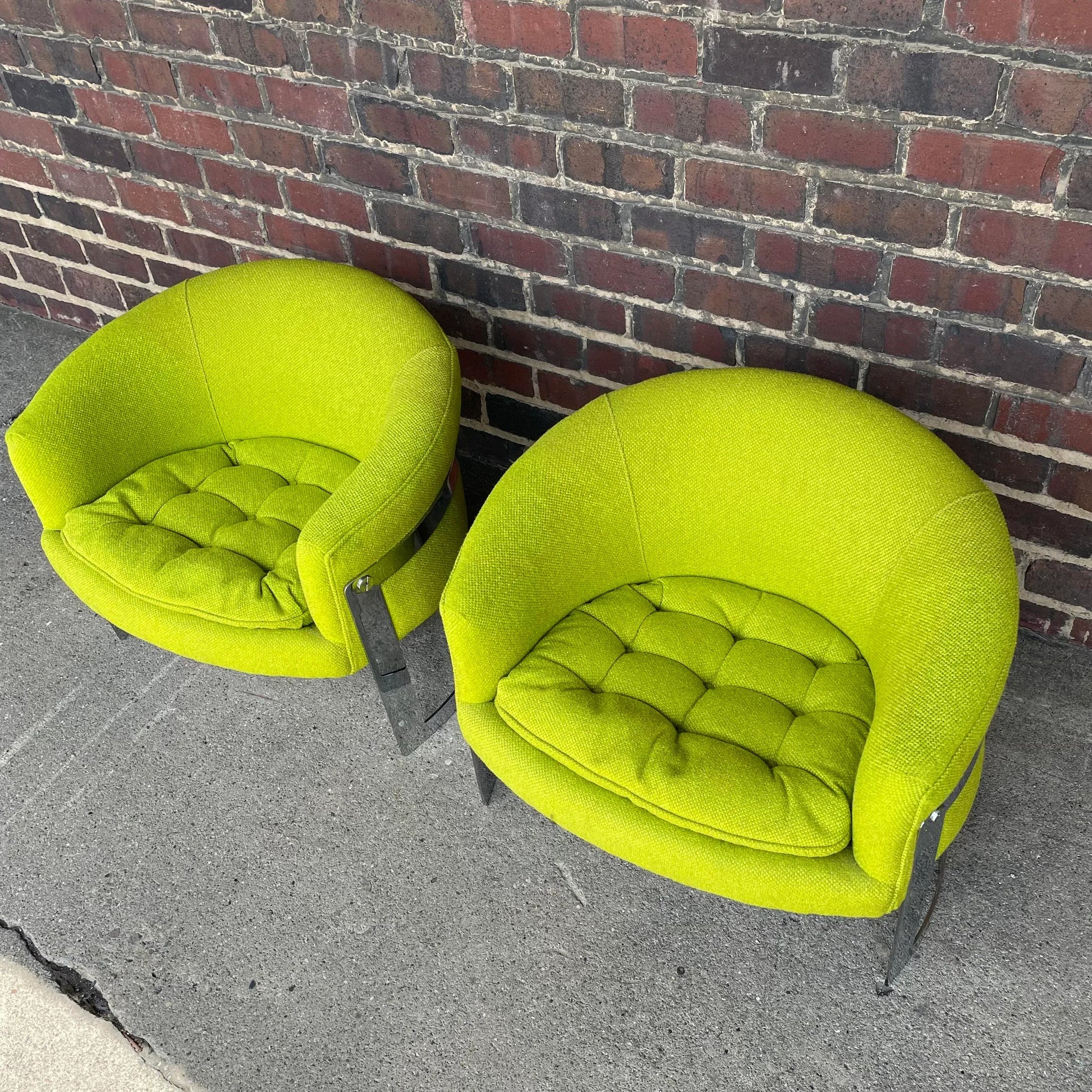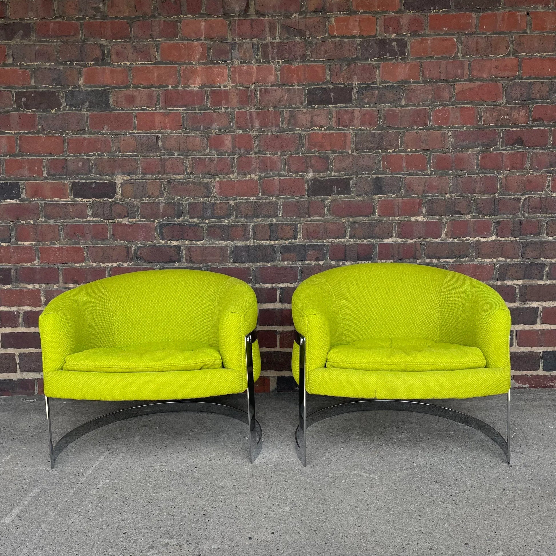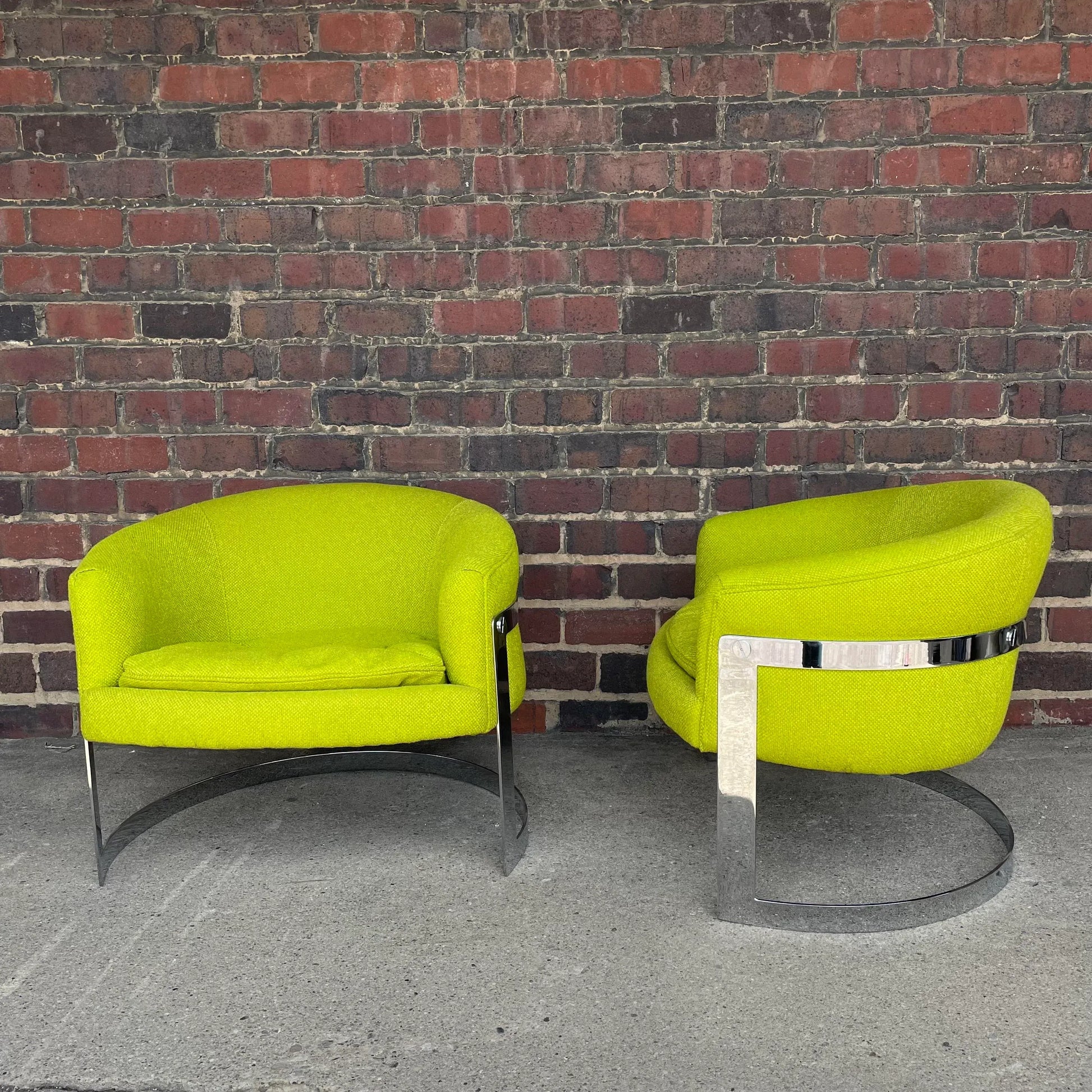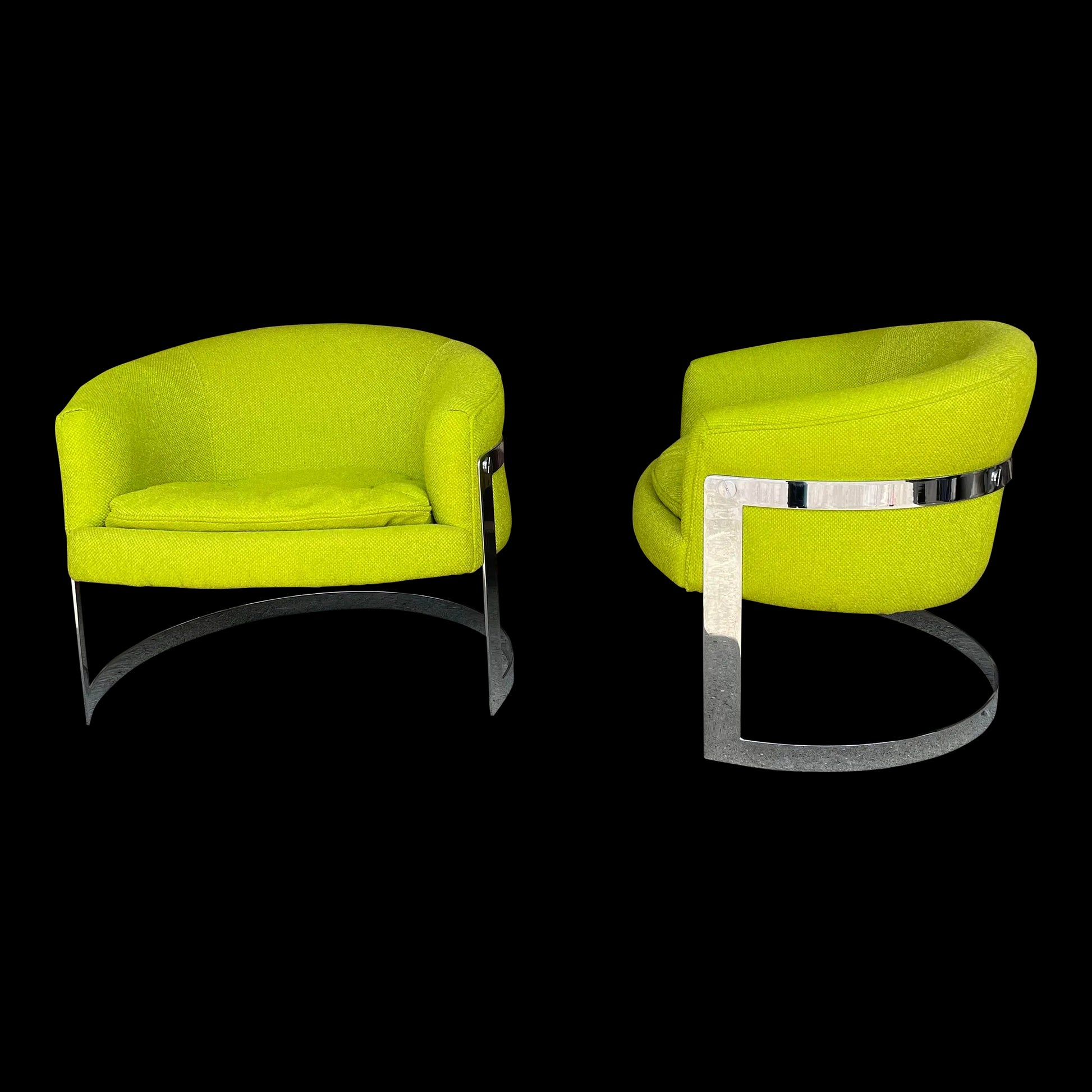 Pair of Cantilevered Chrome chairs often attributed to Milo Baughman.