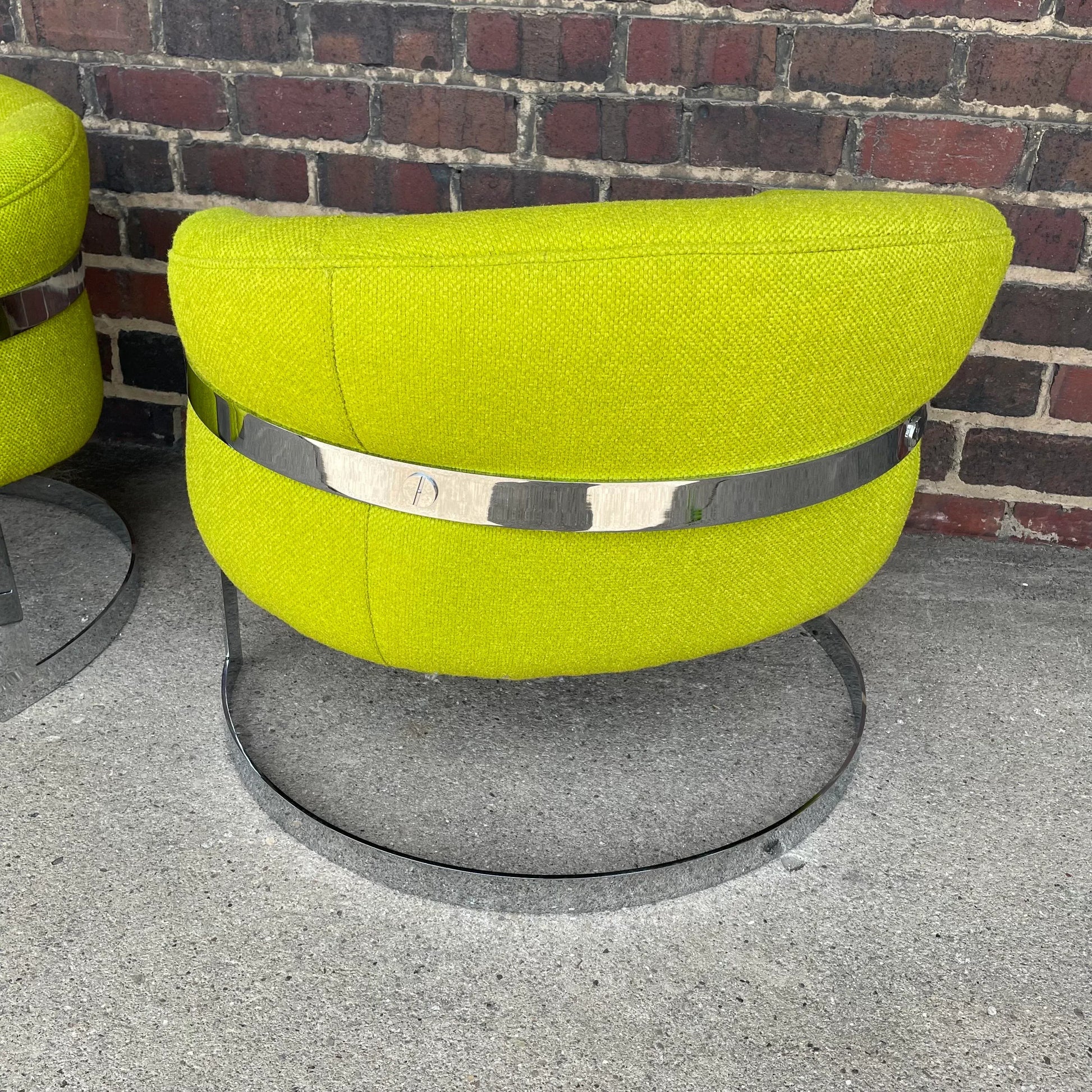 Bernhardt Furniture Pair of Cantilevered Chrome Chairs Style of Milo Baughman