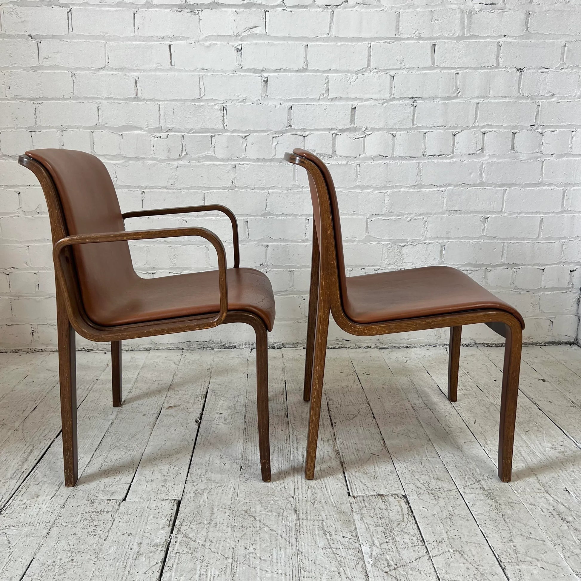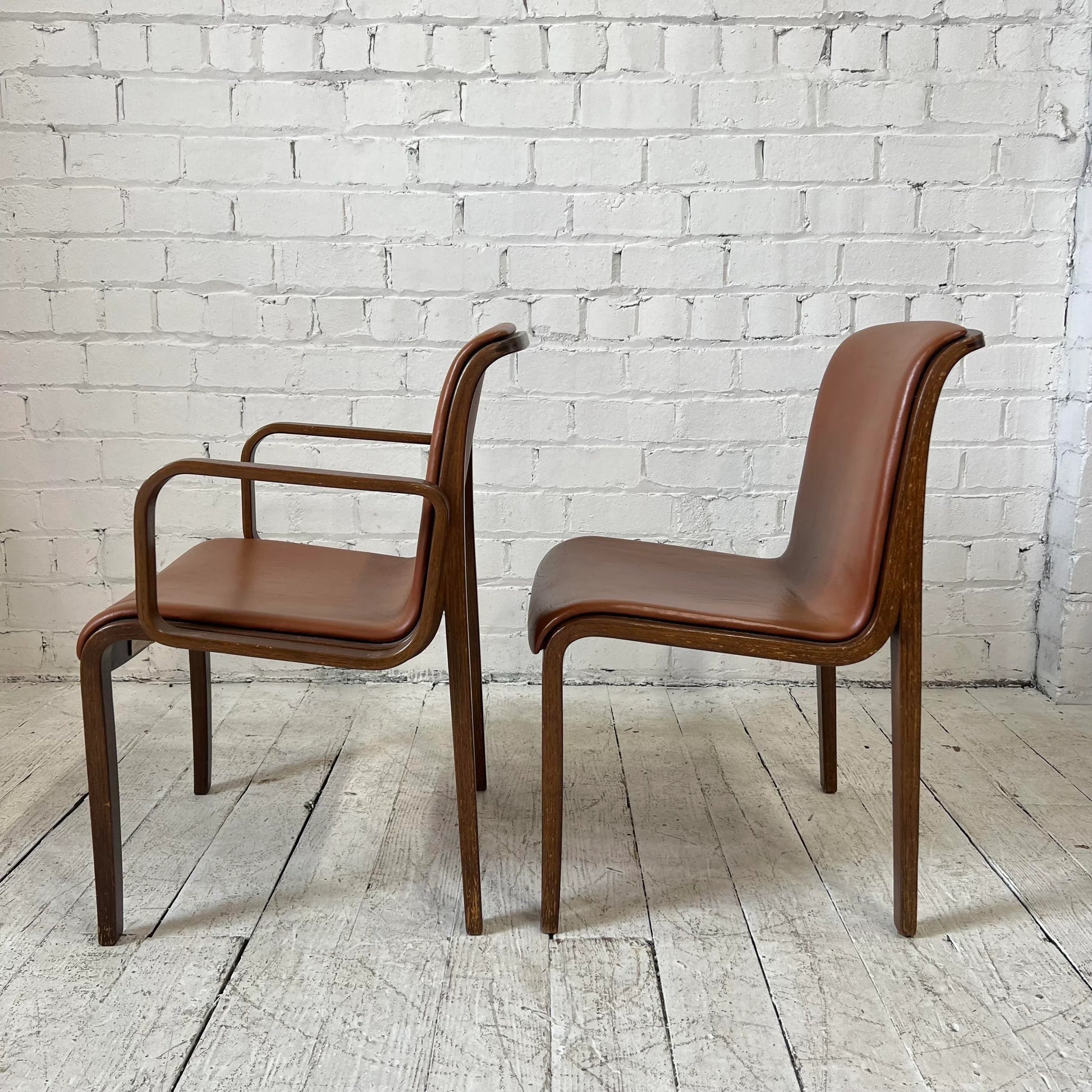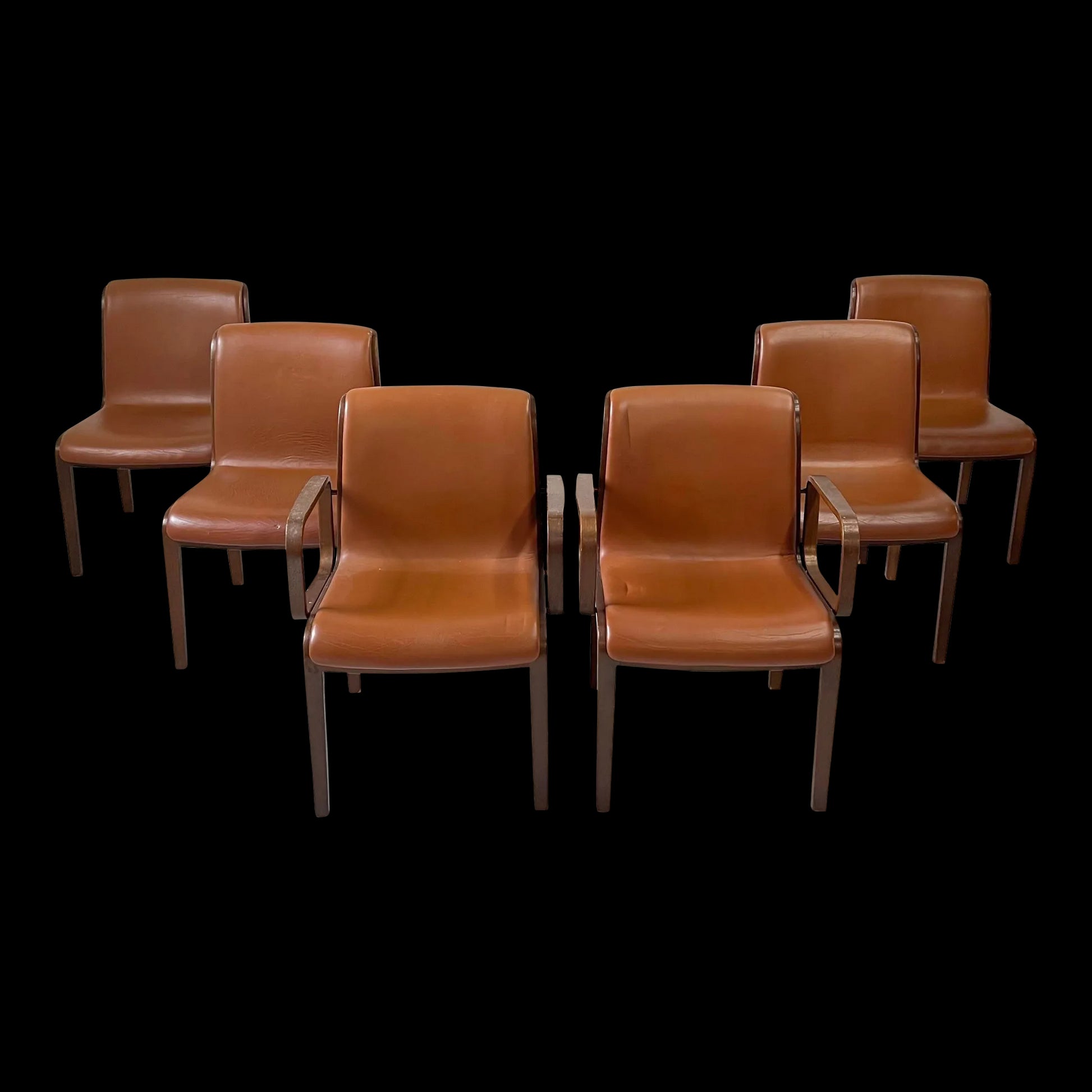Bill Stephens for Knoll Leather and Bentwood Chairs Set of 6