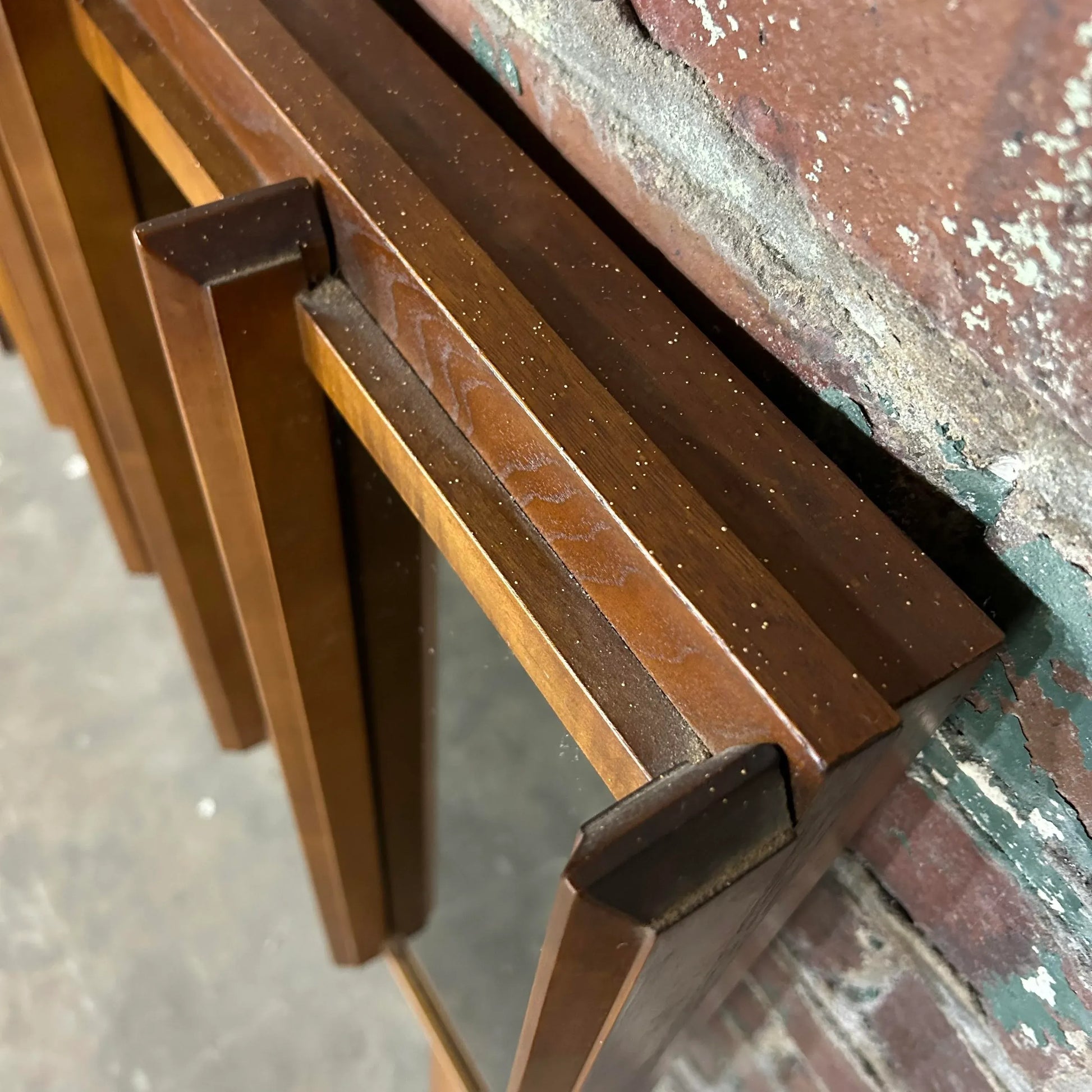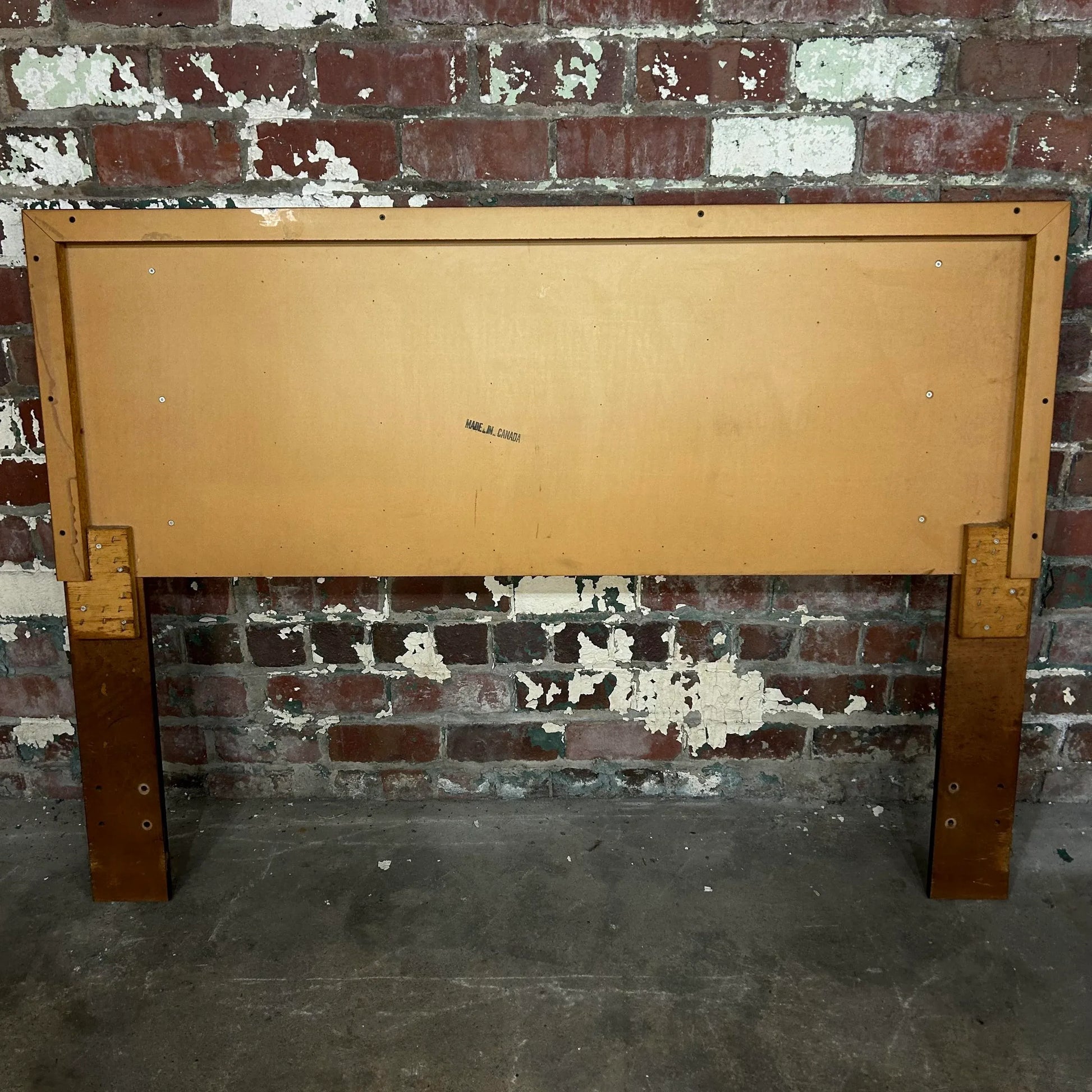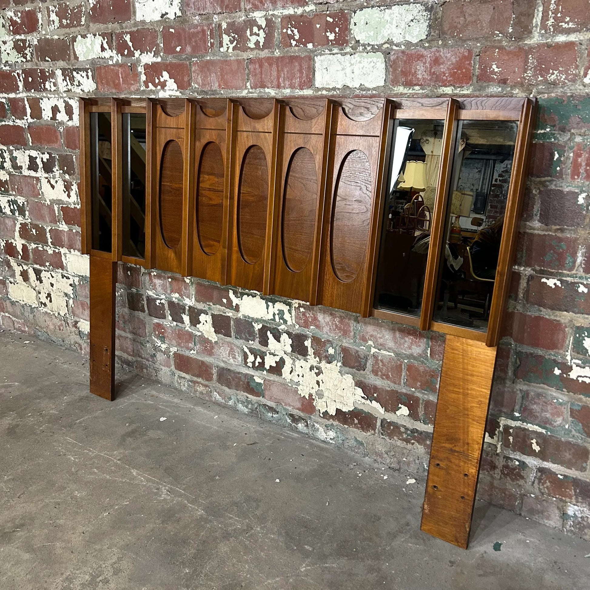 Mid century modern brutalist full headboard by Tabago with mirrored accents. Made in Canada.