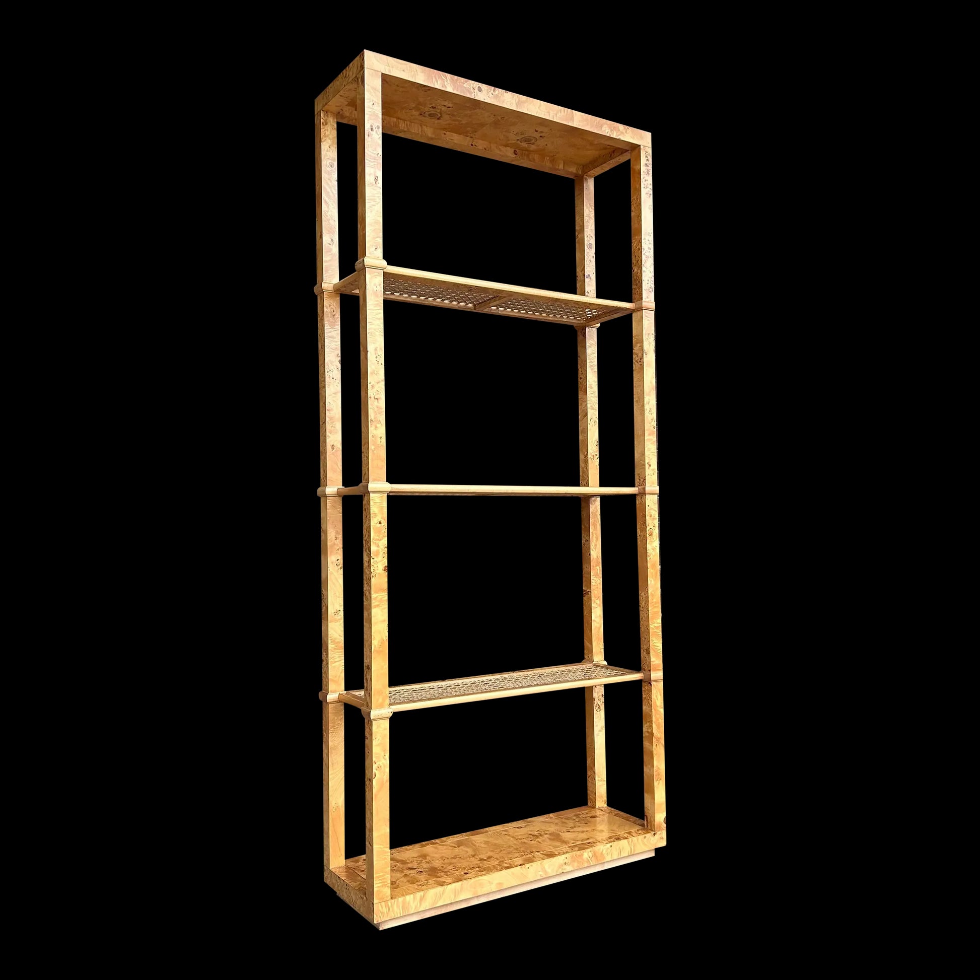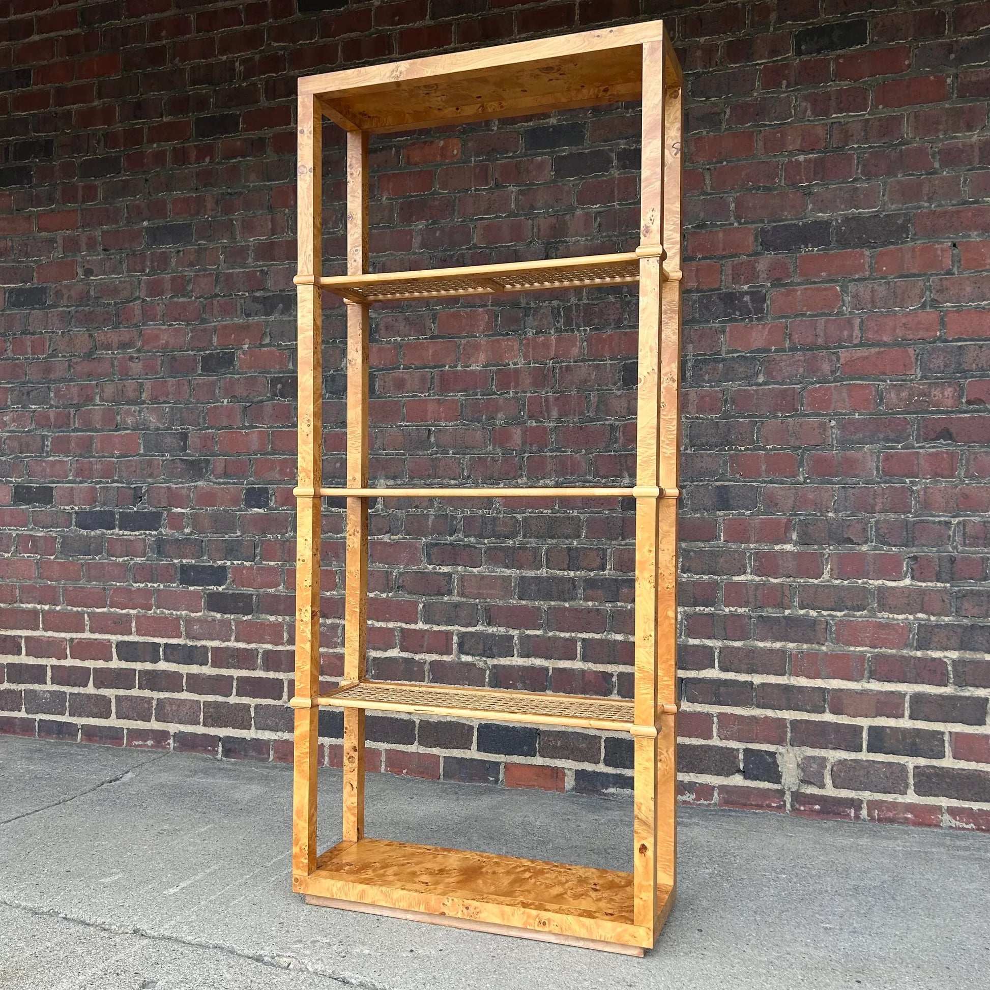 Burlwood and Cane Bookshelf Room Divider