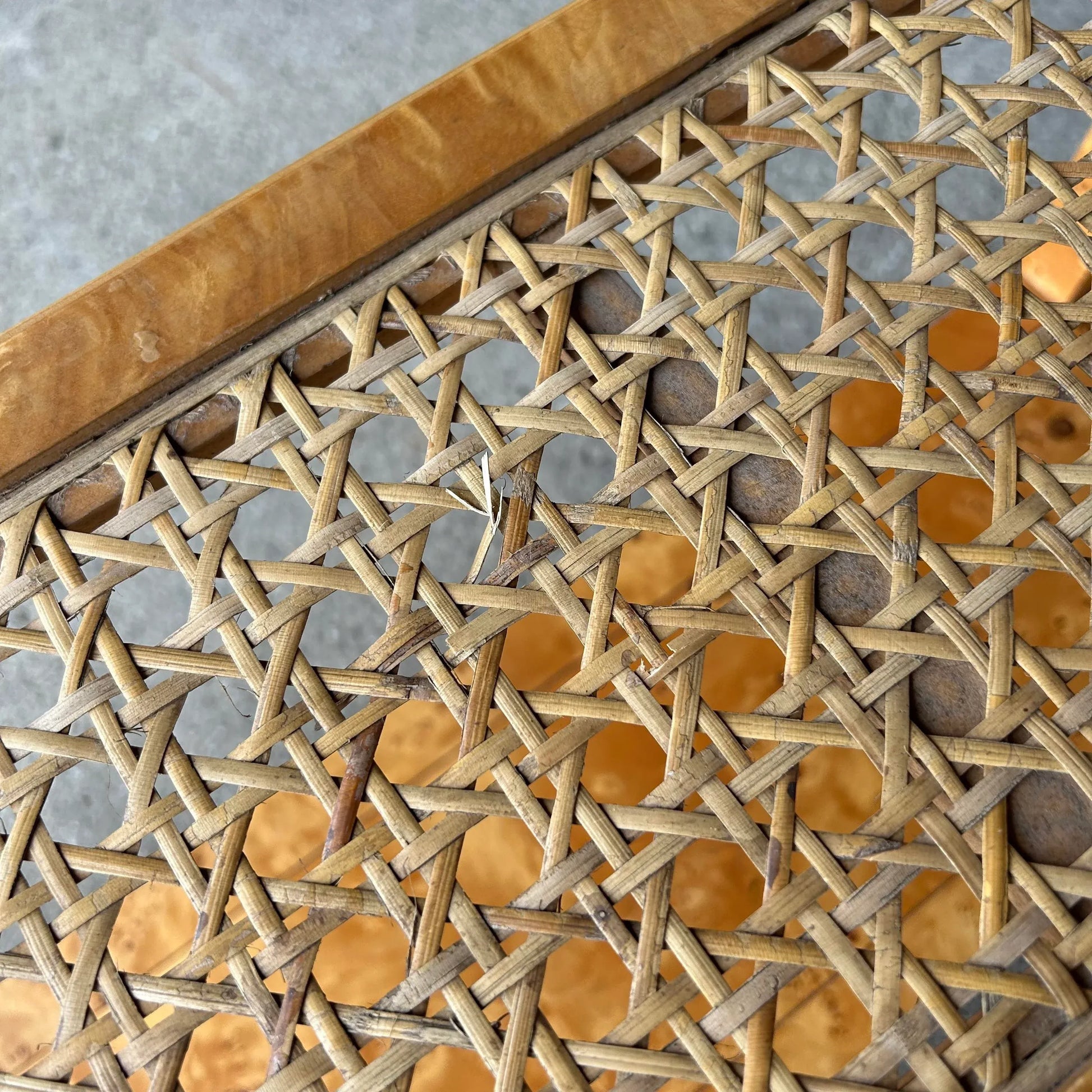 Beautiful bookshelf or room divider made of burlwood and cane