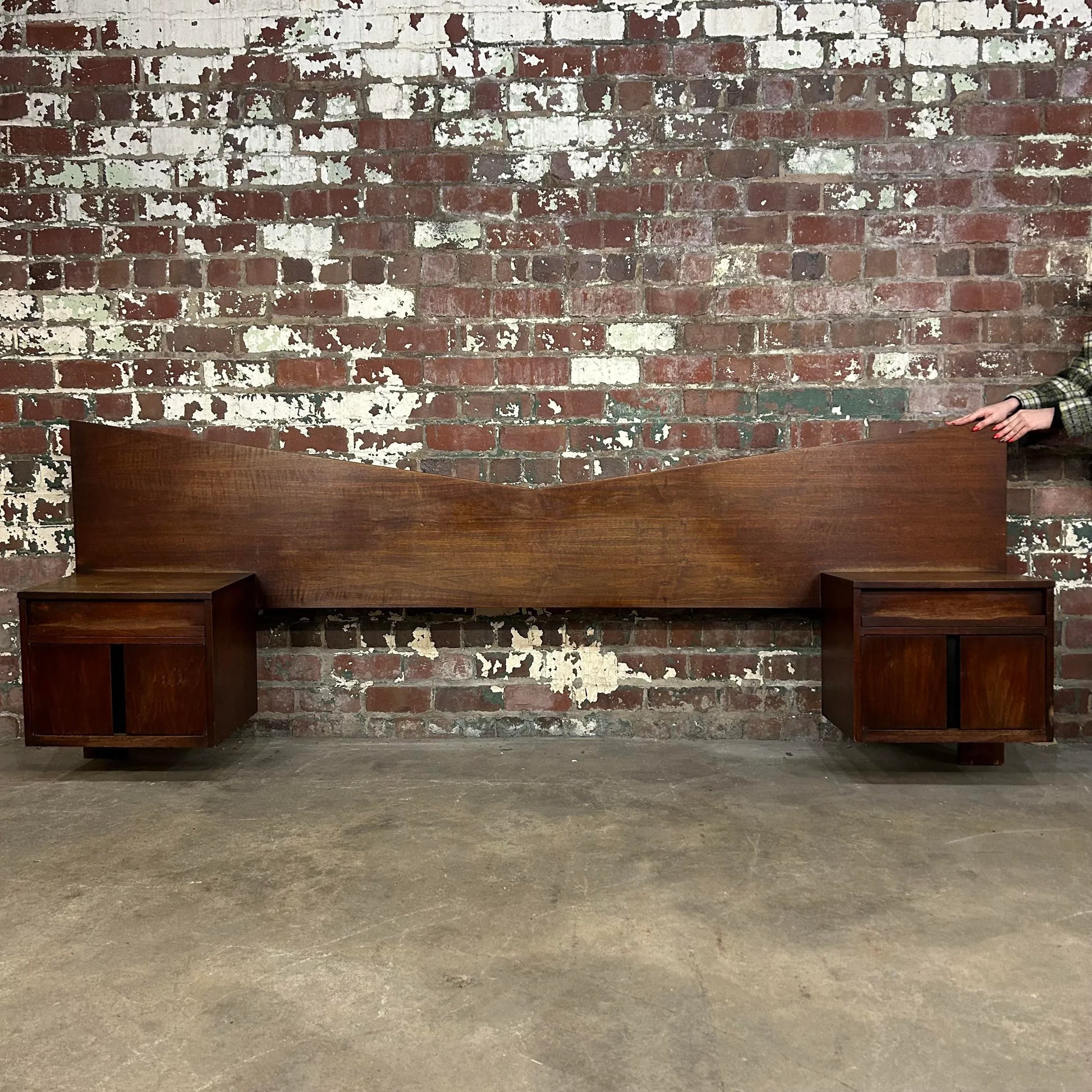 Craftsmen Queen Size Headboard With Floating Nightstands Walnut Curved