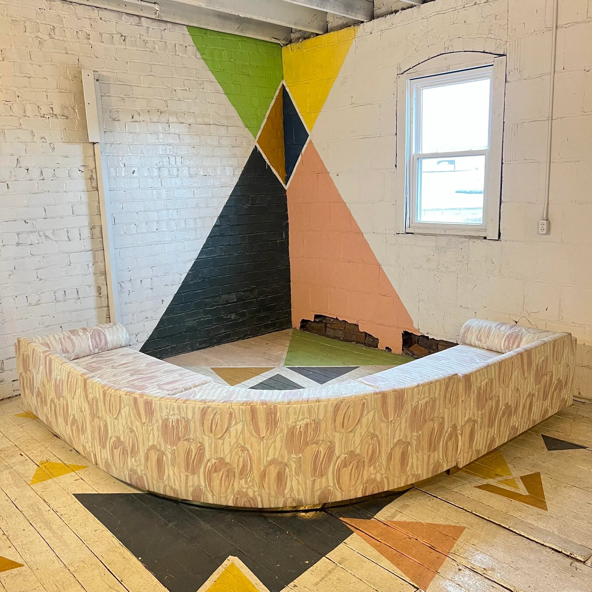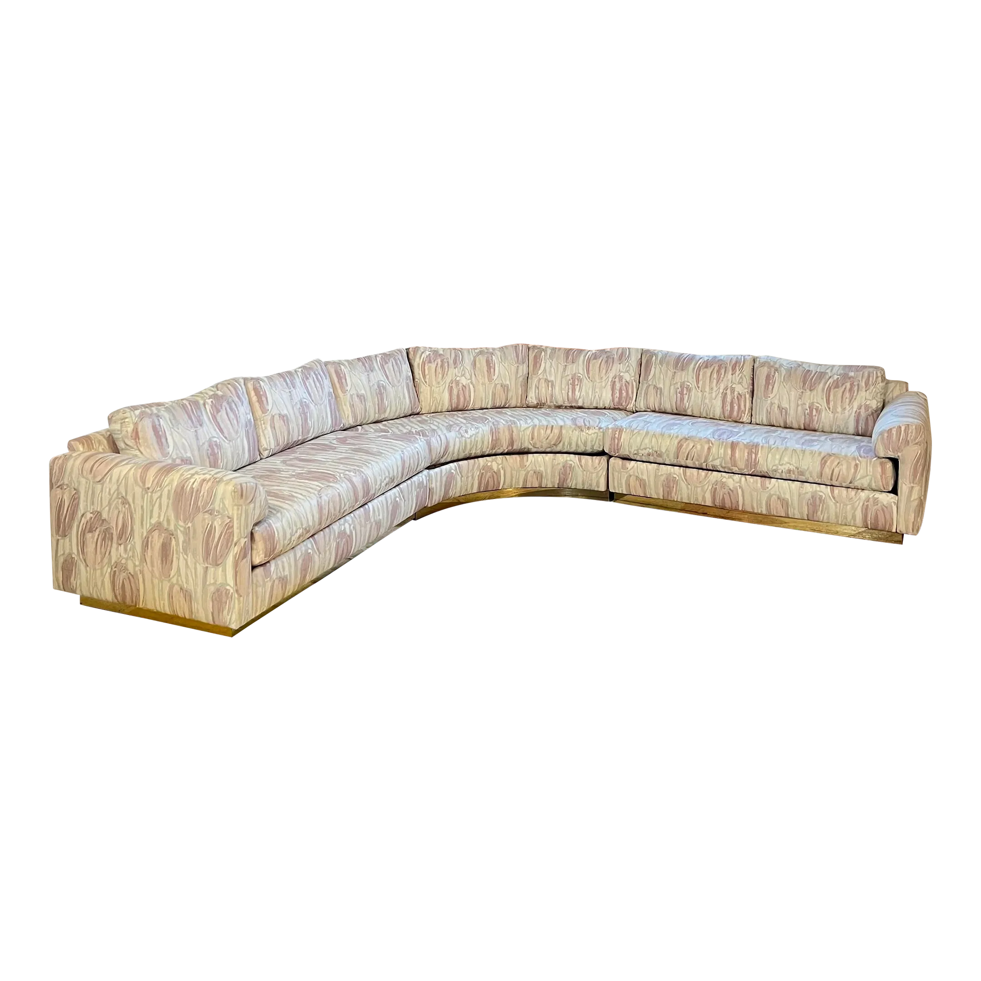 Curved Sectional 80s Sofa With Brass Base Detailing