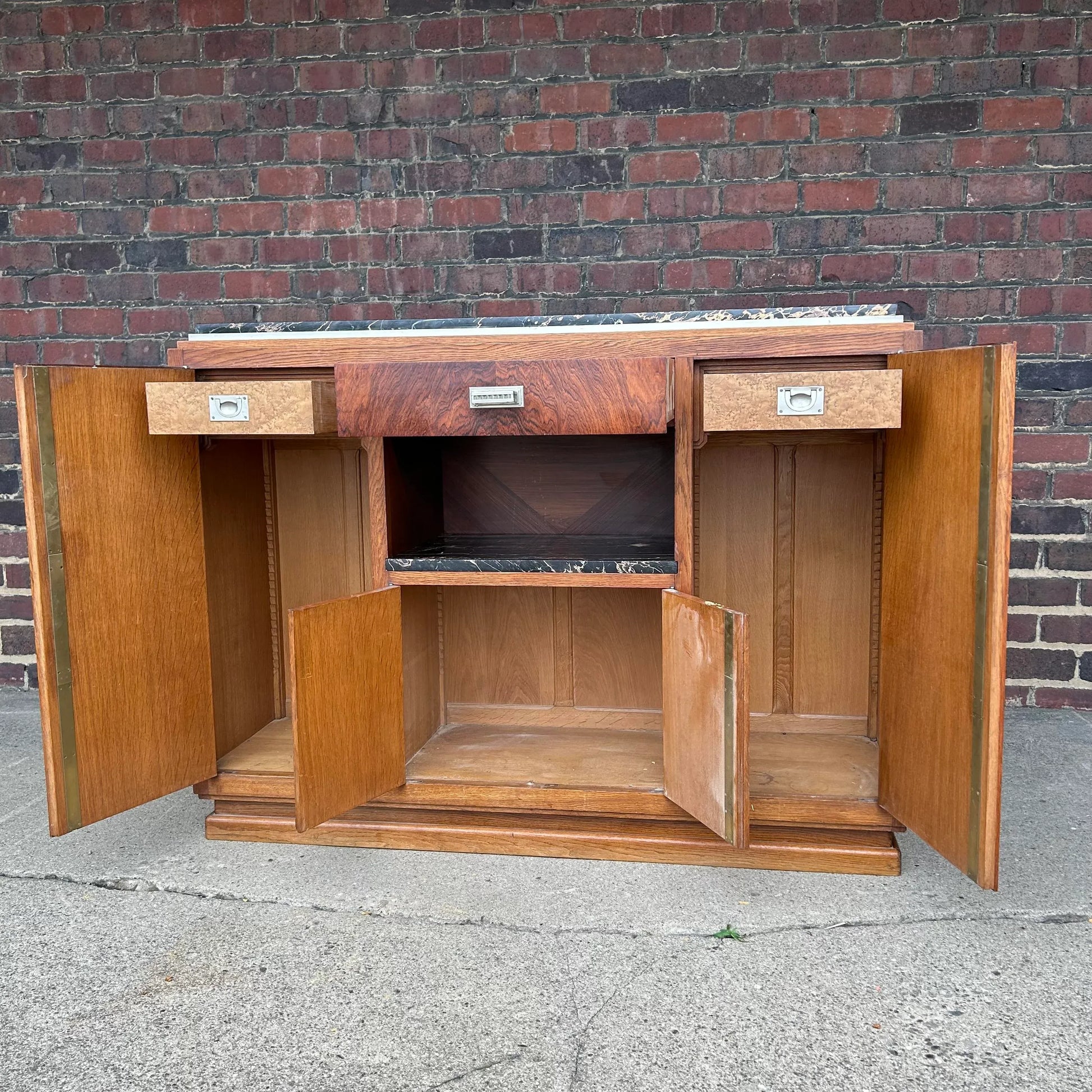Rosewood, marble, and nickeled brass hardware.