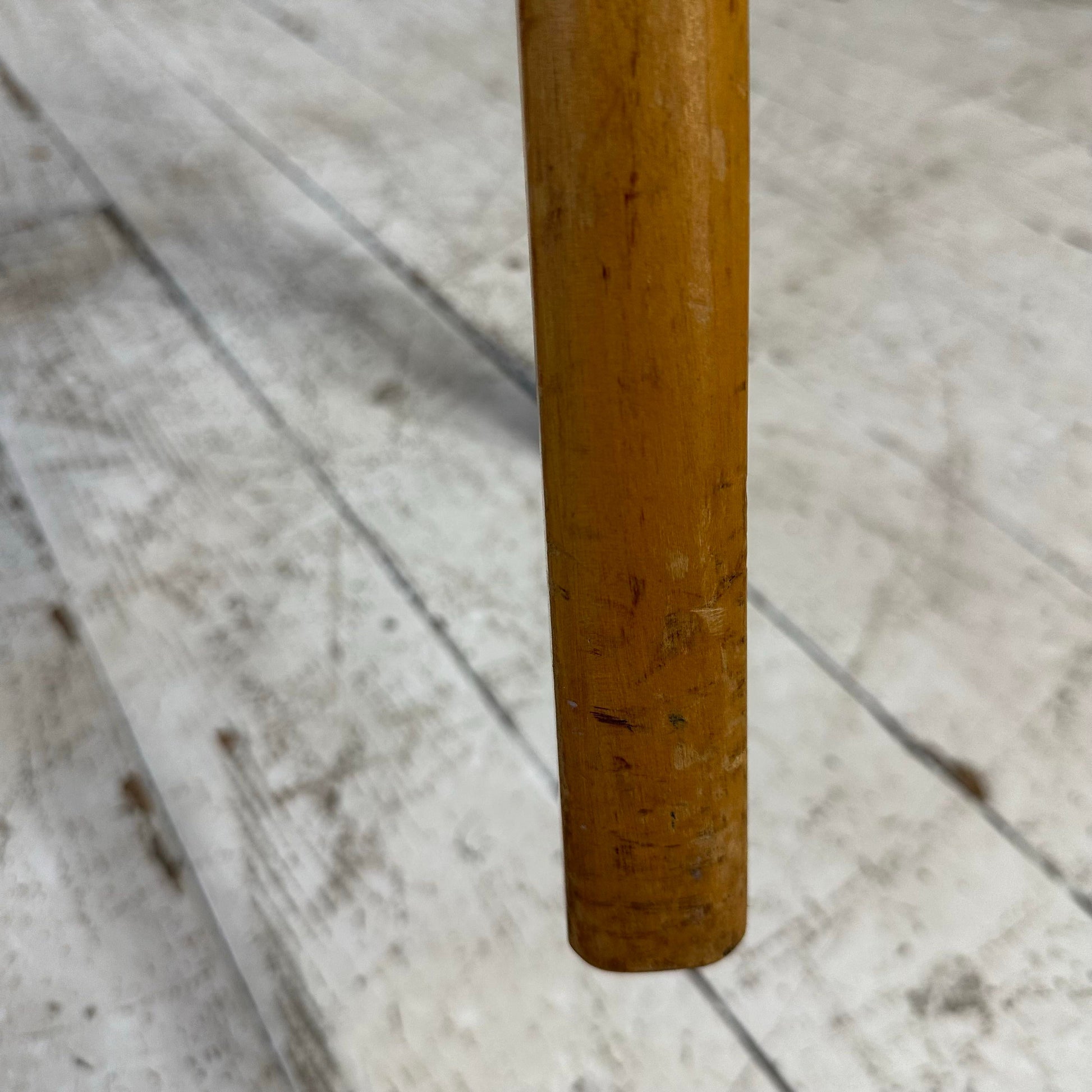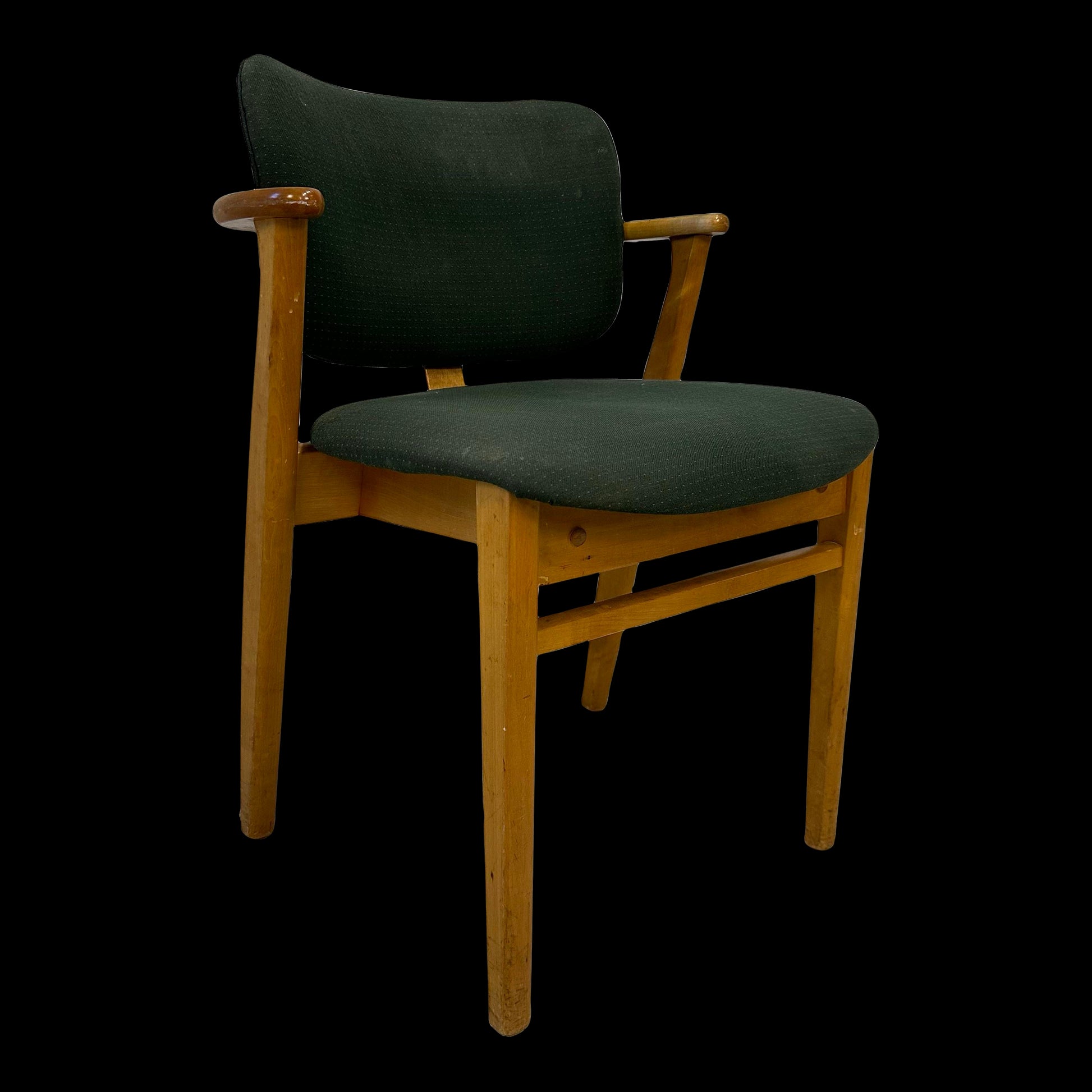 Domus chair by Knoll Associates. Light wood chair currently covered in a dark green fabric with cream dots.