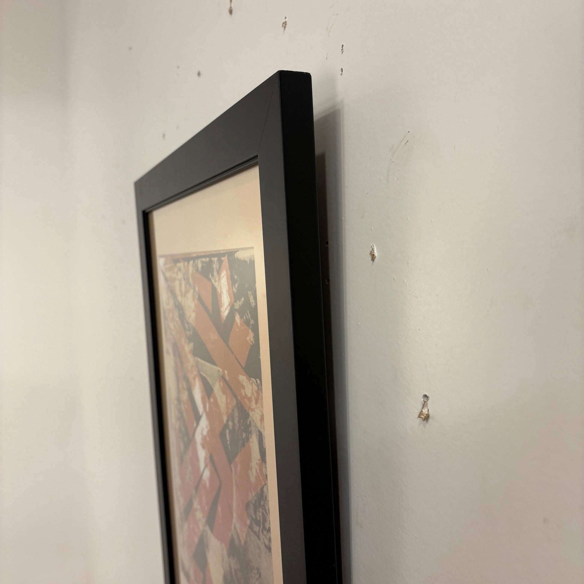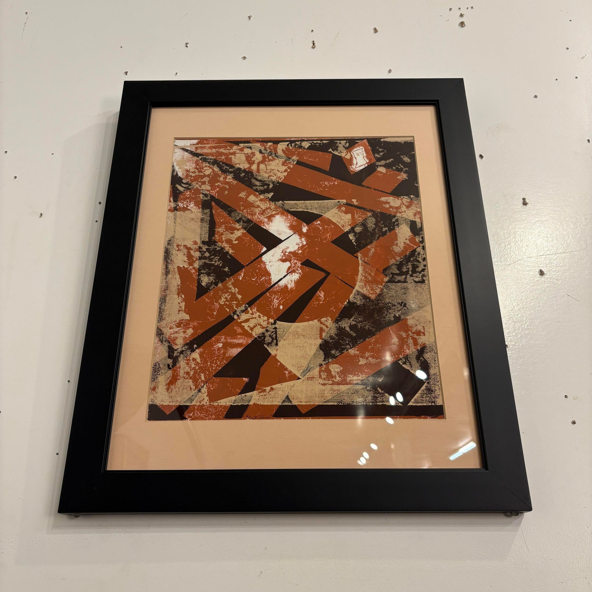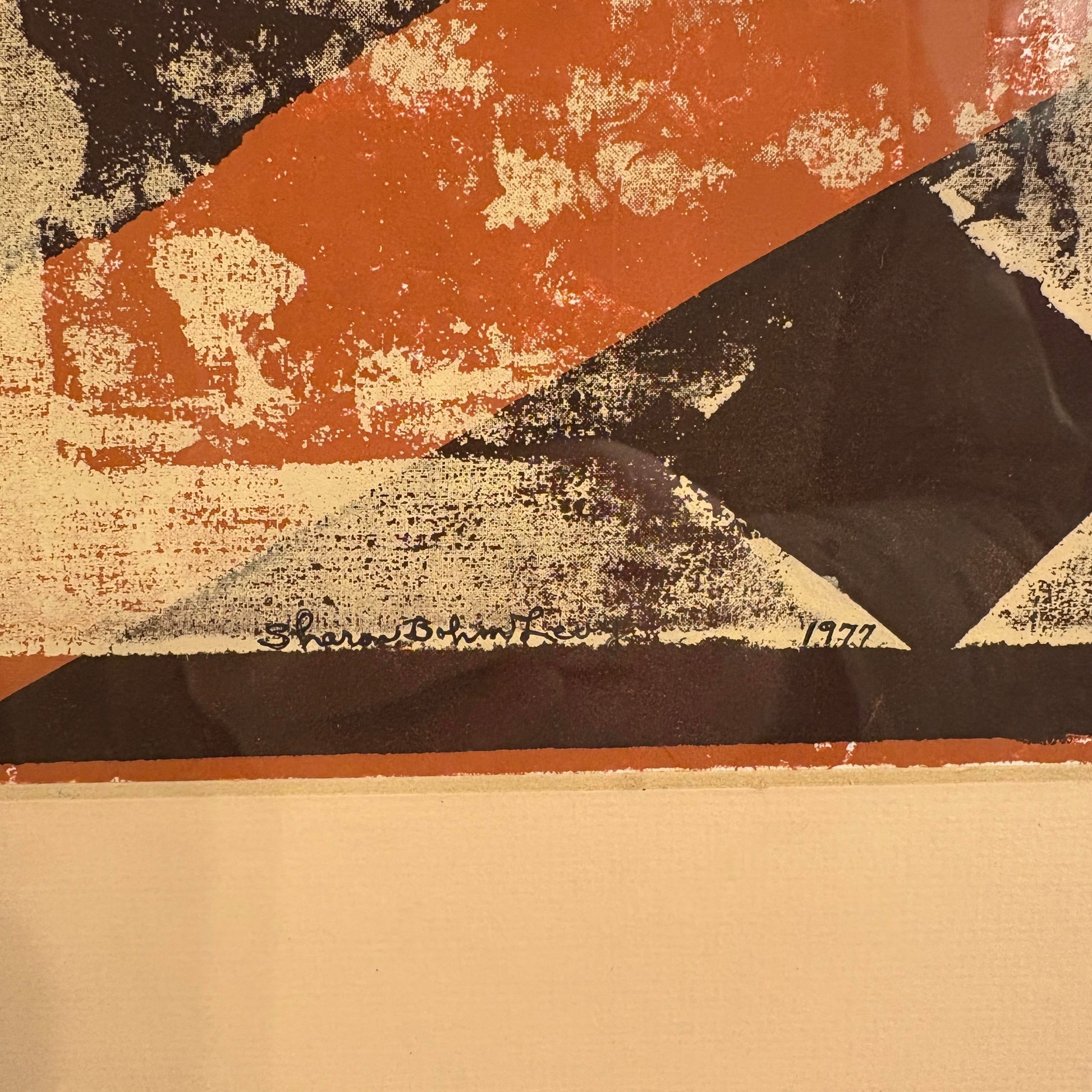 Framed and matted painting by Sharon Bohm Levy titled “earth tones” 1977.