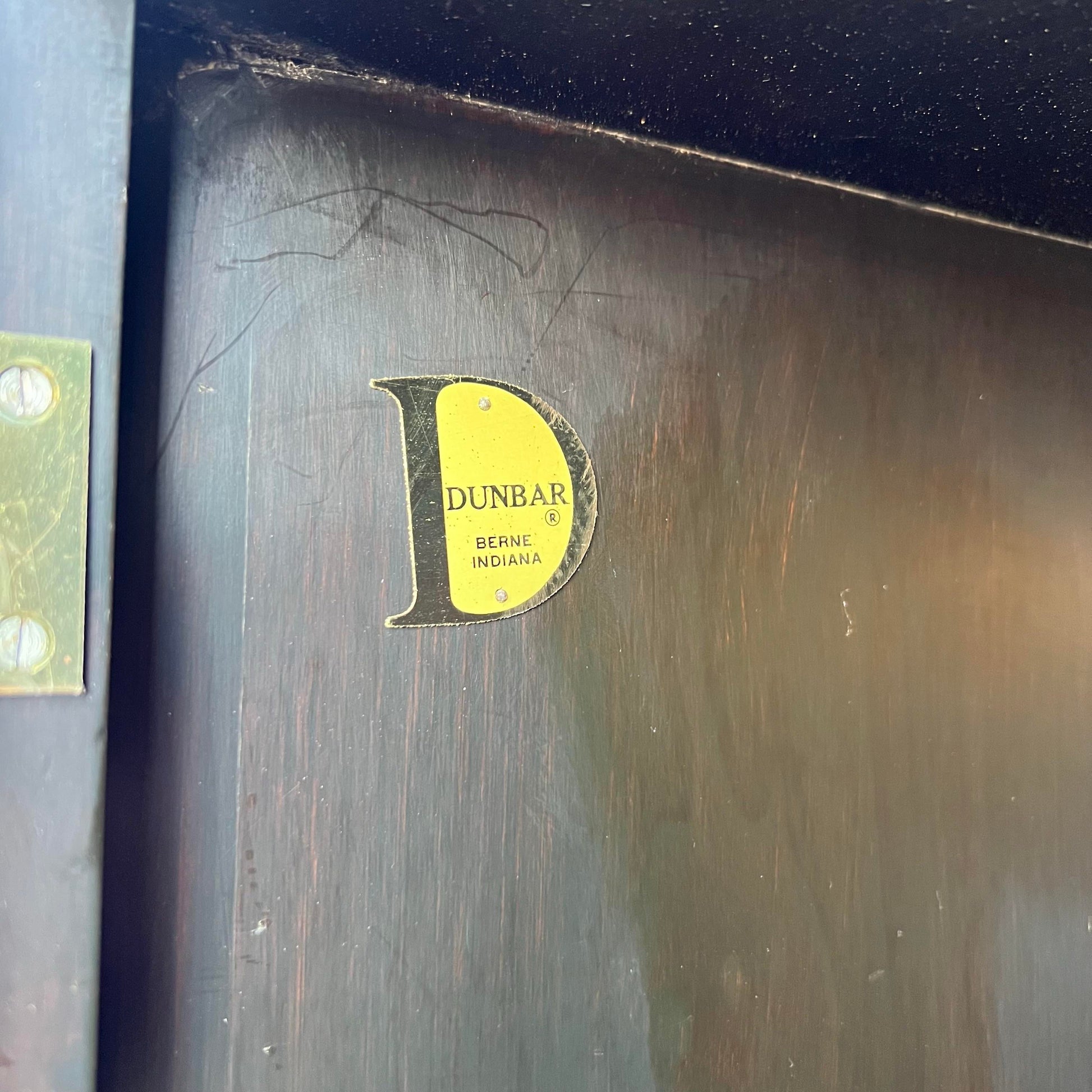 Edward Wormley for Dunbar Concave Credenza and Display Shelves Wall Unit. This superior design by Edward Wormley combines the sideboard or credenza with open and closed glass shelving in a curve front wall unit often called the Superstructure. There is a Dunbar plaque on inside left cabinet. The piece comes with 2 brass Dunbar keys