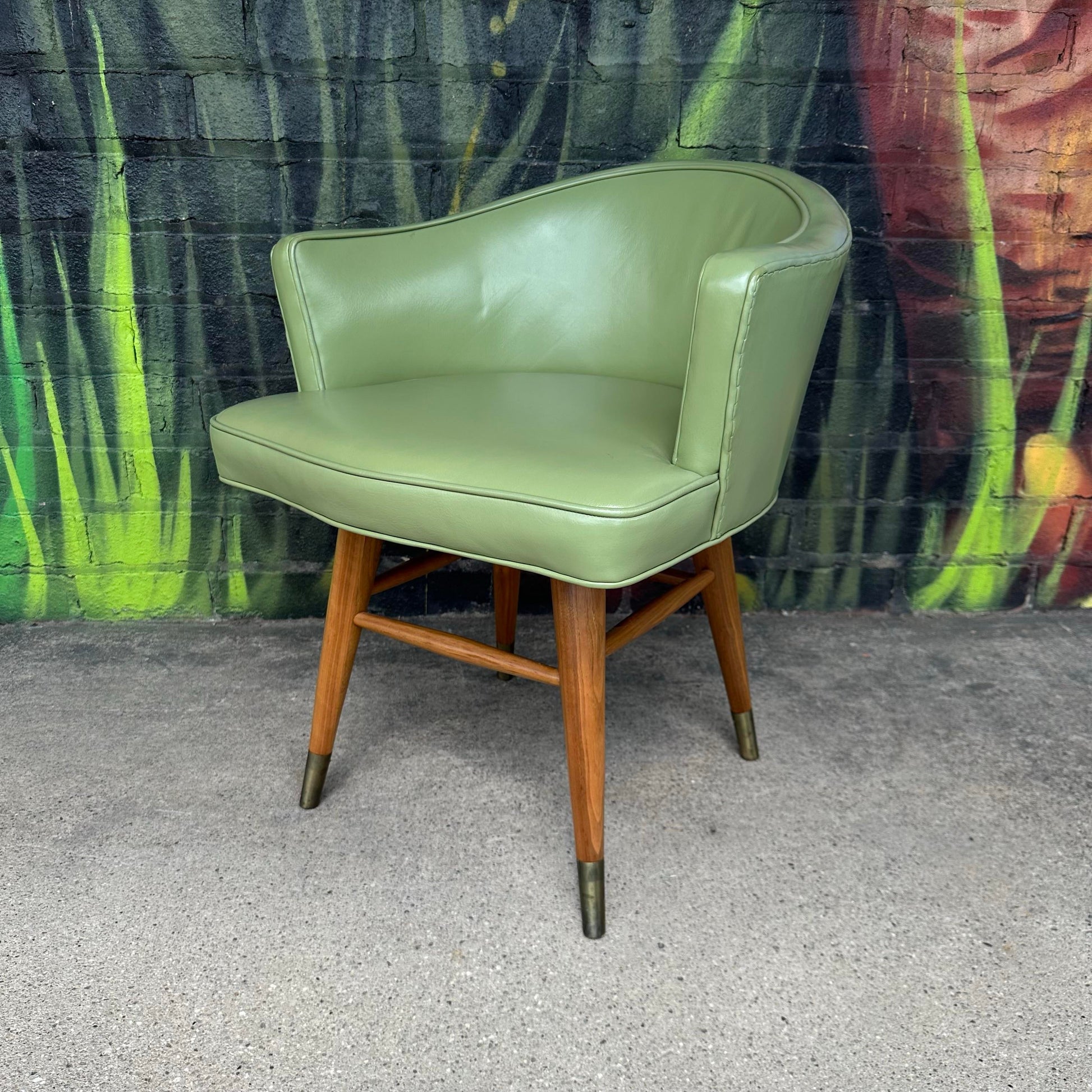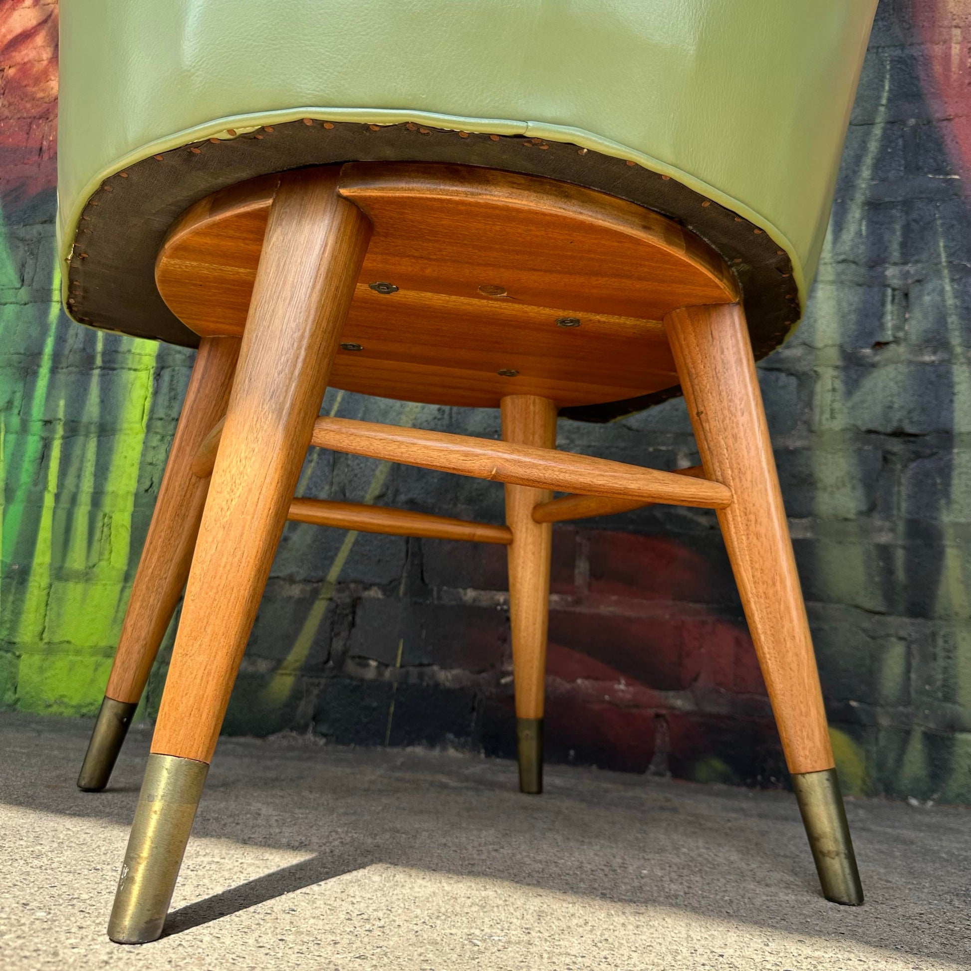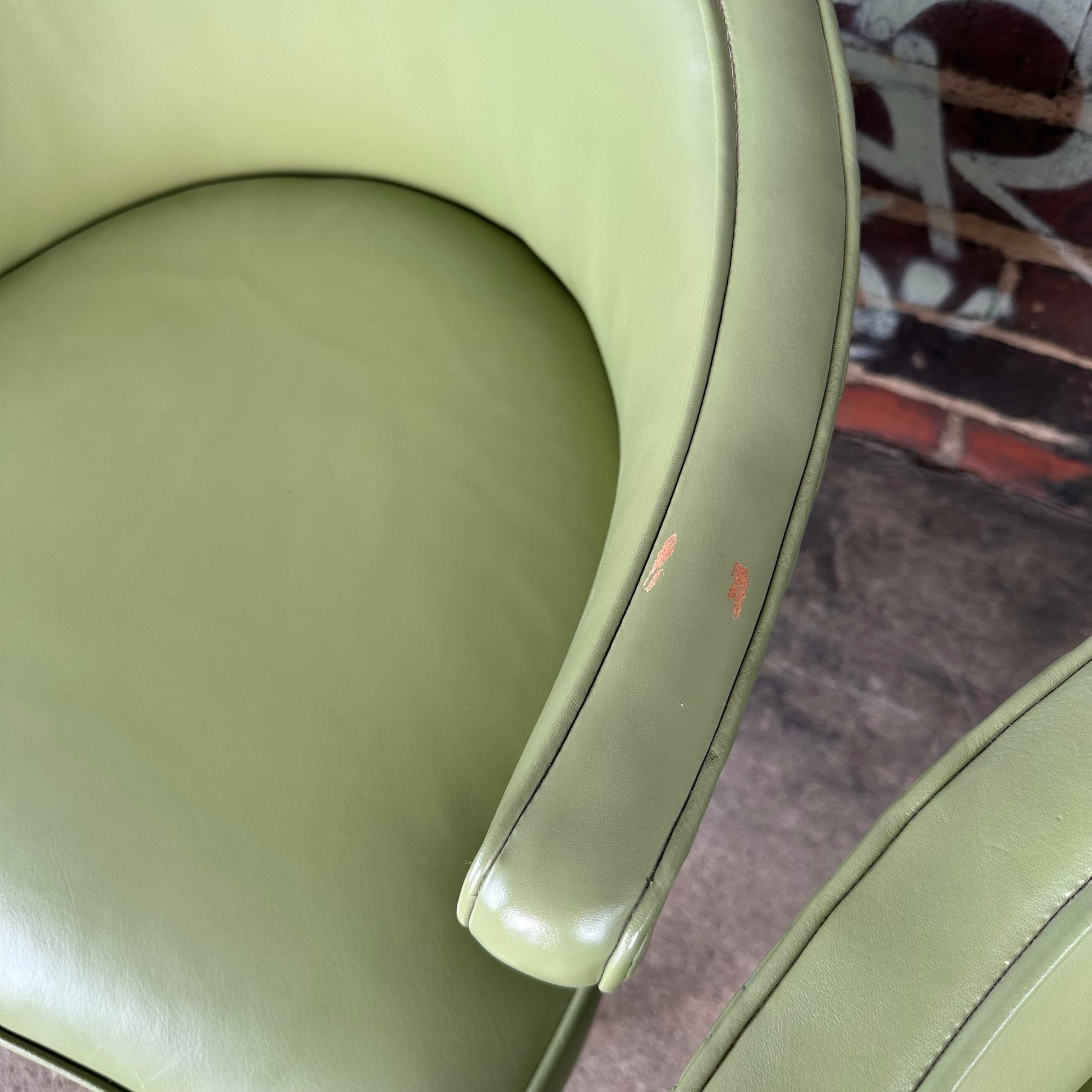 Very rare Edward Wormley for Dunbar dining set with working heated center that ranges from low, medium, and high. Perfect for keeping fondue/food warm. This set comes with 6 swivel chairs covered in a light green leather.
