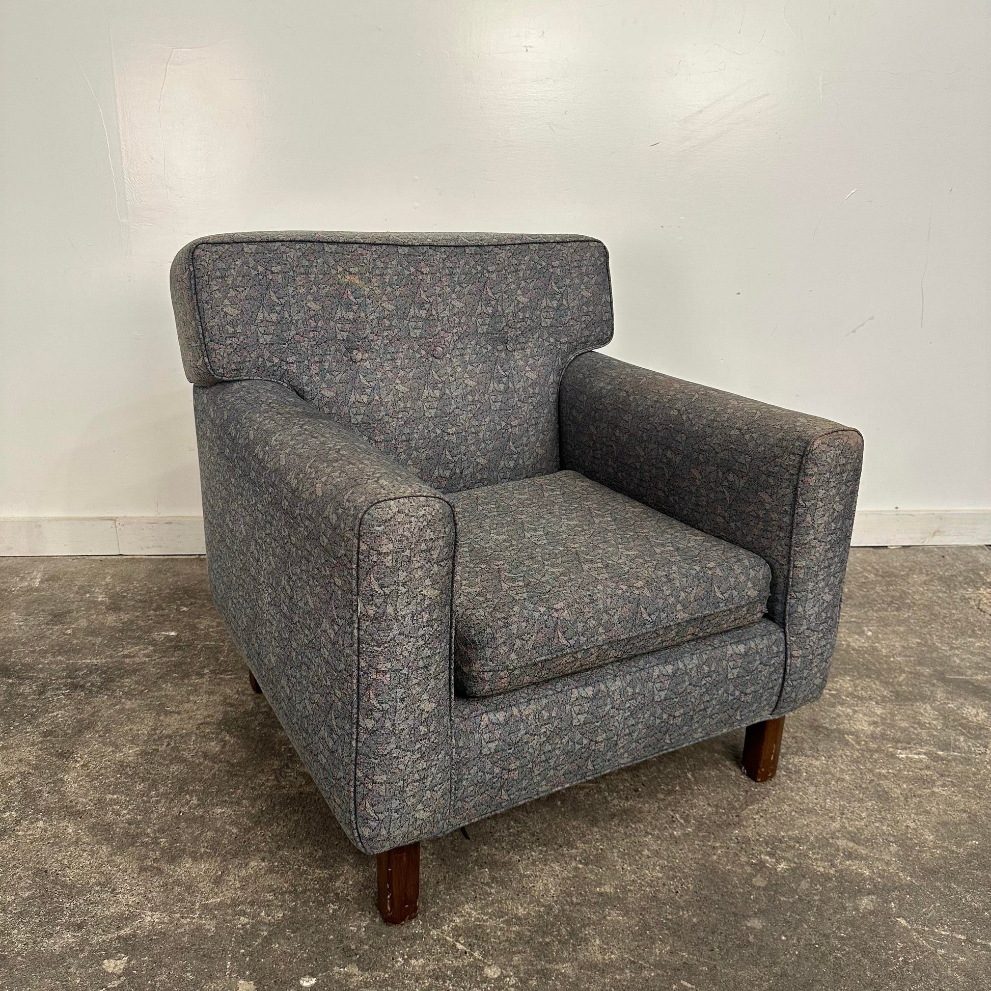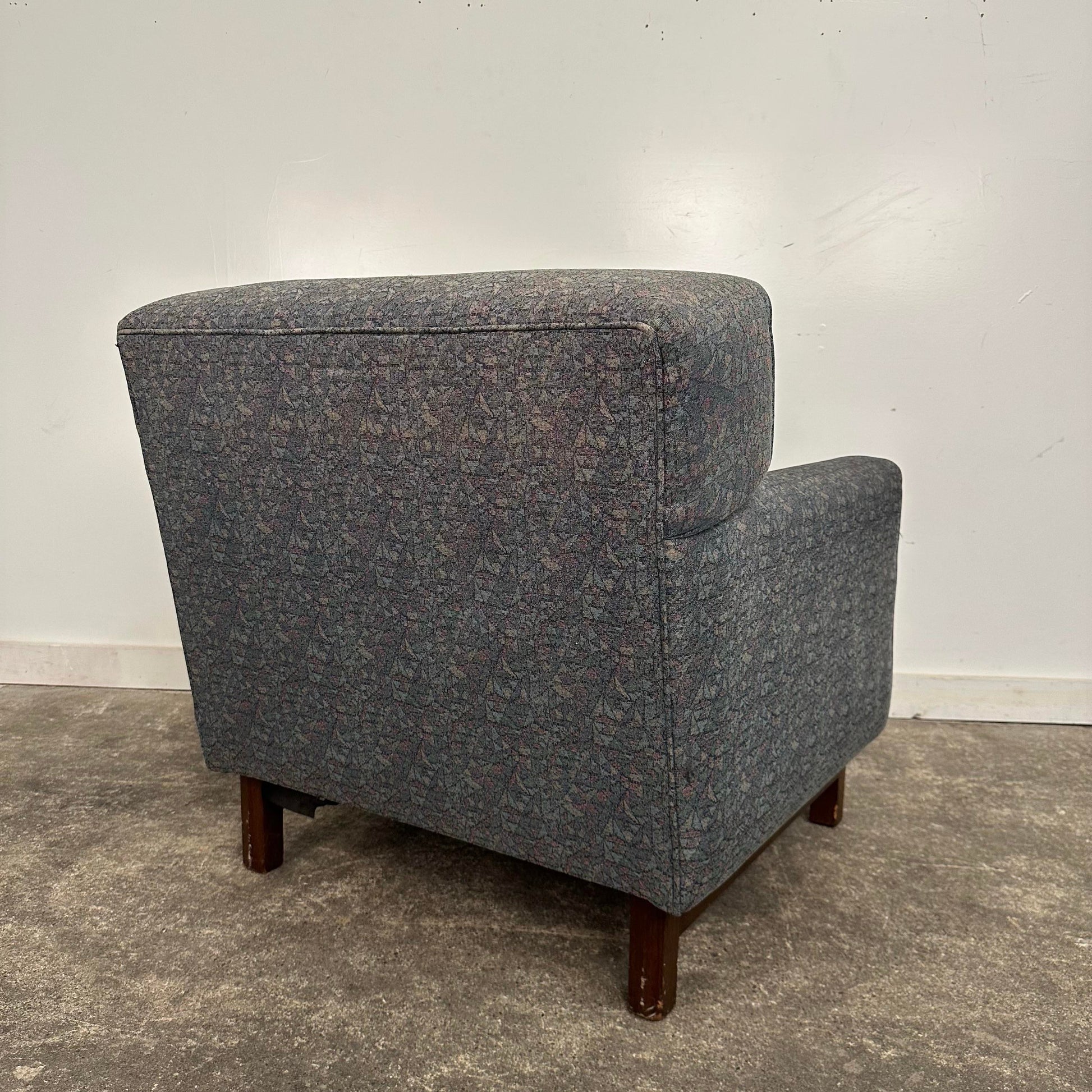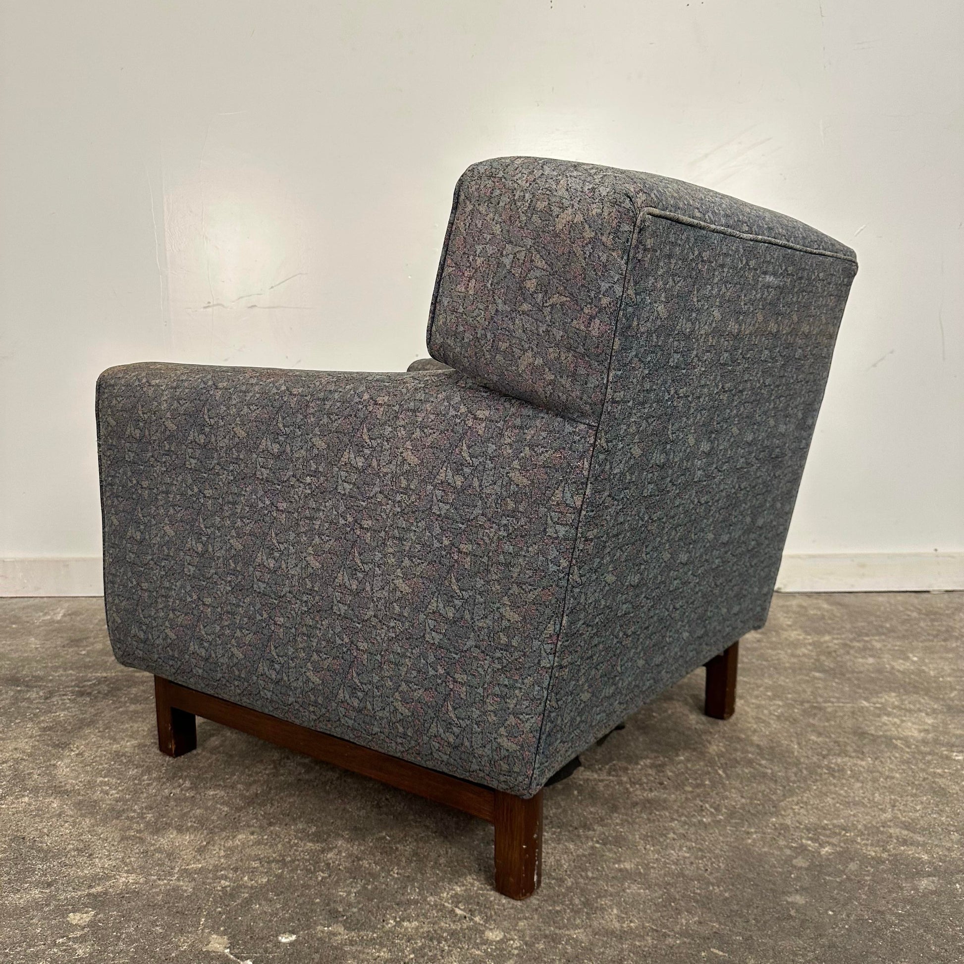 Mid century modern Edward Wormley for Dunbar Lounge Chair. This well made vintage lounge chair is designed by Edward Wormley in the 1950s. This chair has been reupholstered and was previously used in a college. There is no makers mark on the chair.