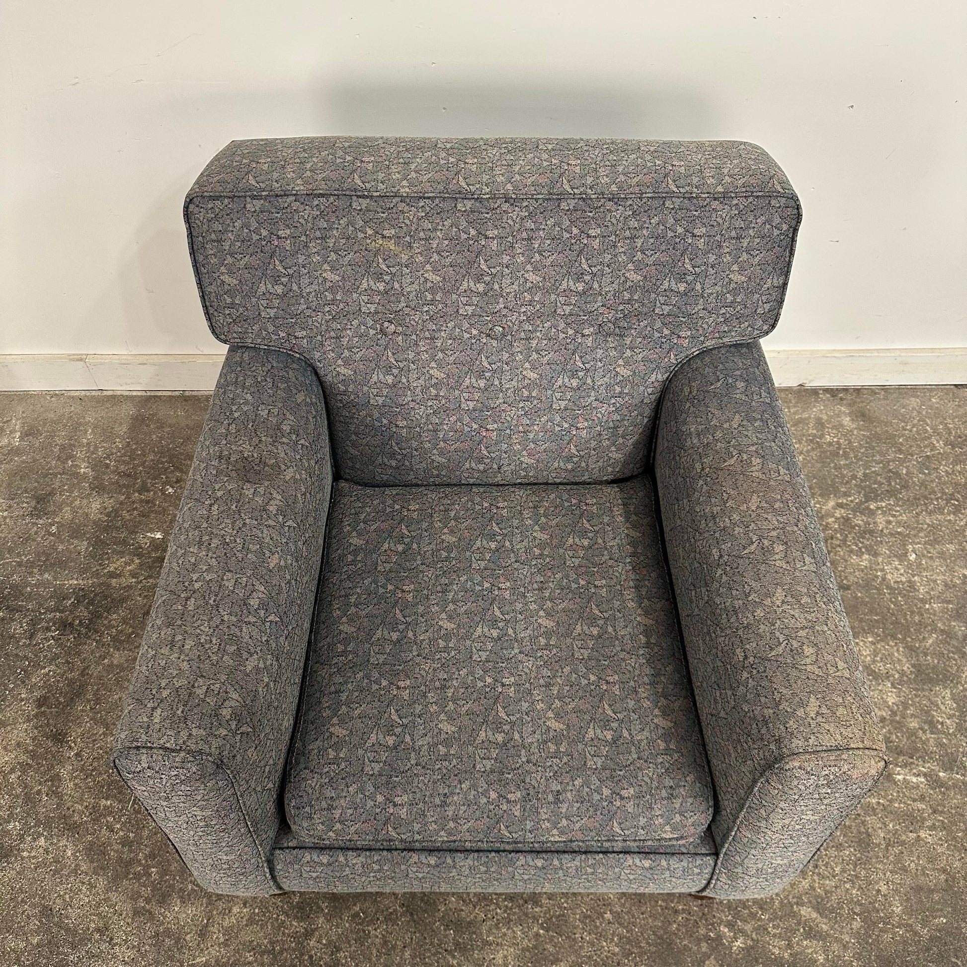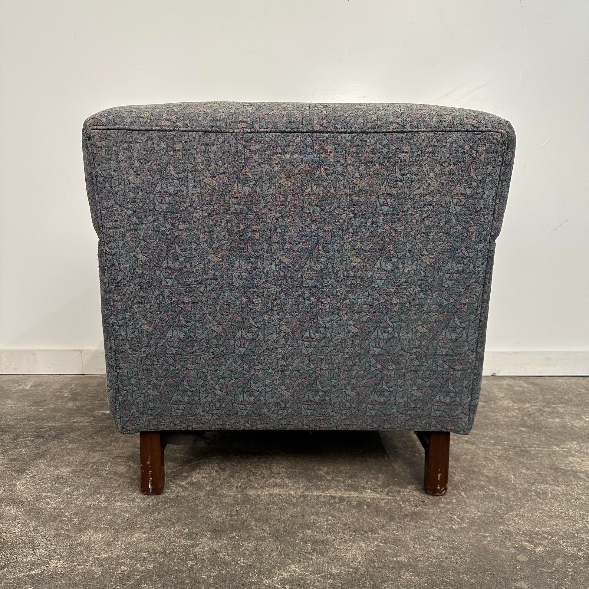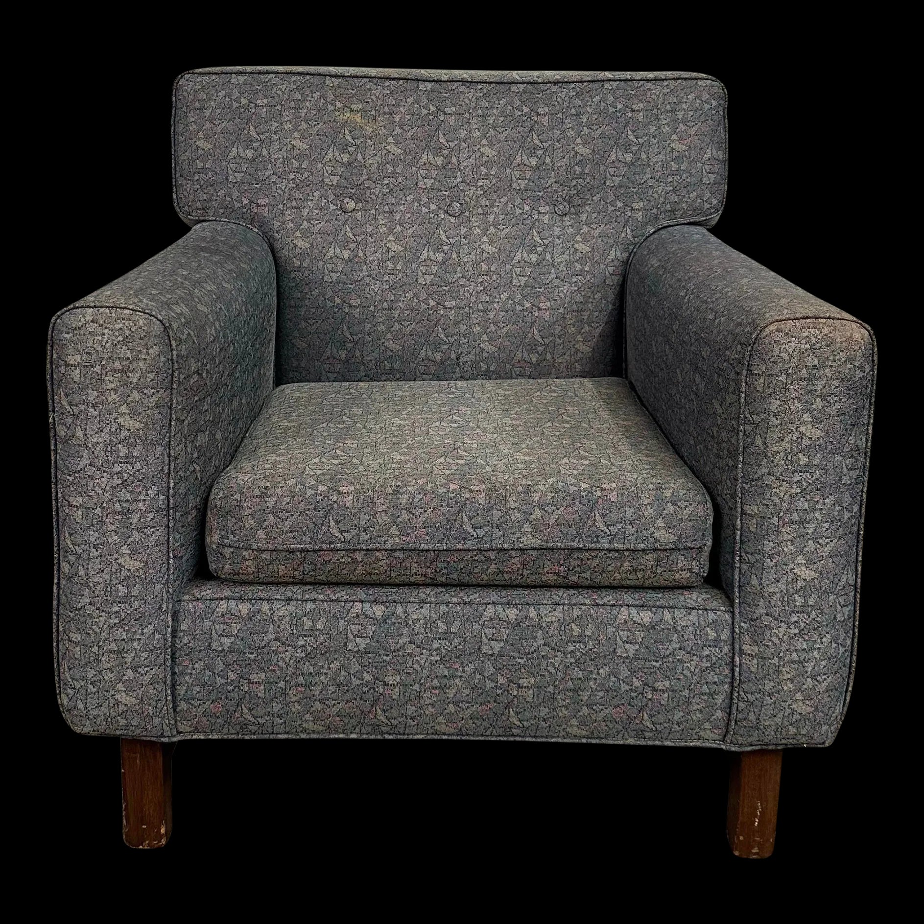 Mid century modern Edward Wormley for Dunbar Lounge Chair. This well made vintage lounge chair is designed by Edward Wormley in the 1950s. This chair has been reupholstered and was previously used in a college. There is no makers mark on the chair.