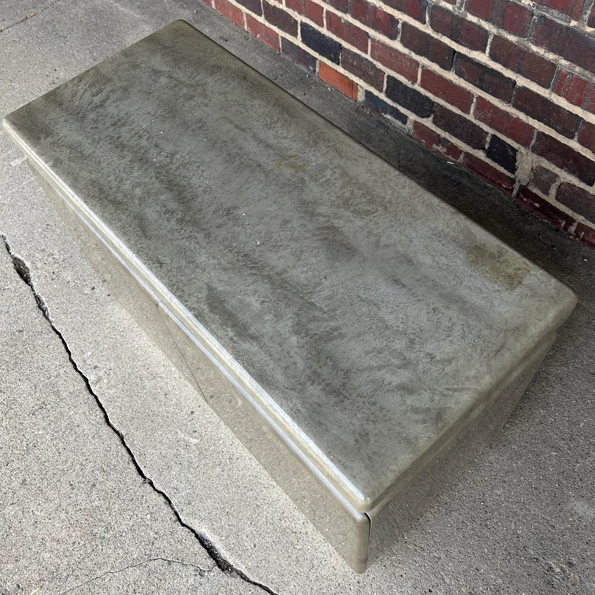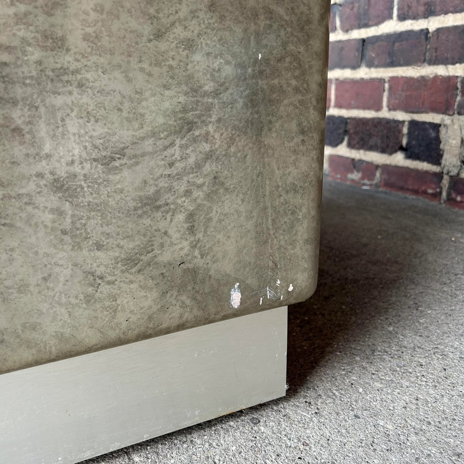 Faux Marble and Brushed Stainless Small Credenza Server Cabinet Post Modern 1980’s Karl Springer Style