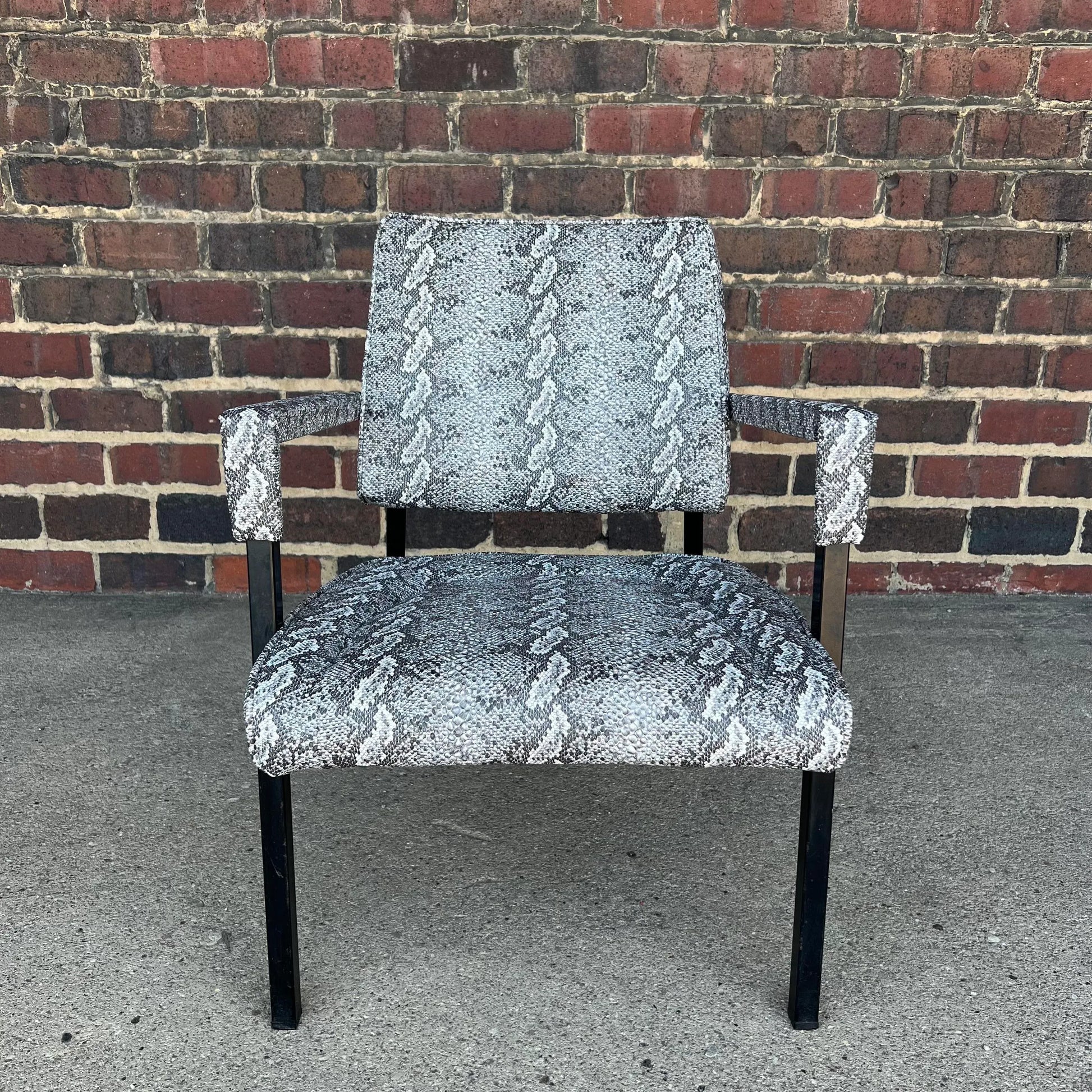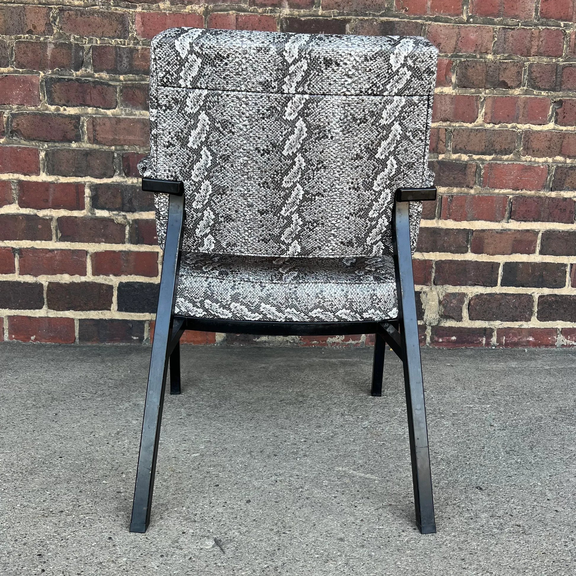 Faux Snake Skin and Metal Armchair by All-Steel Reupholstered Restored