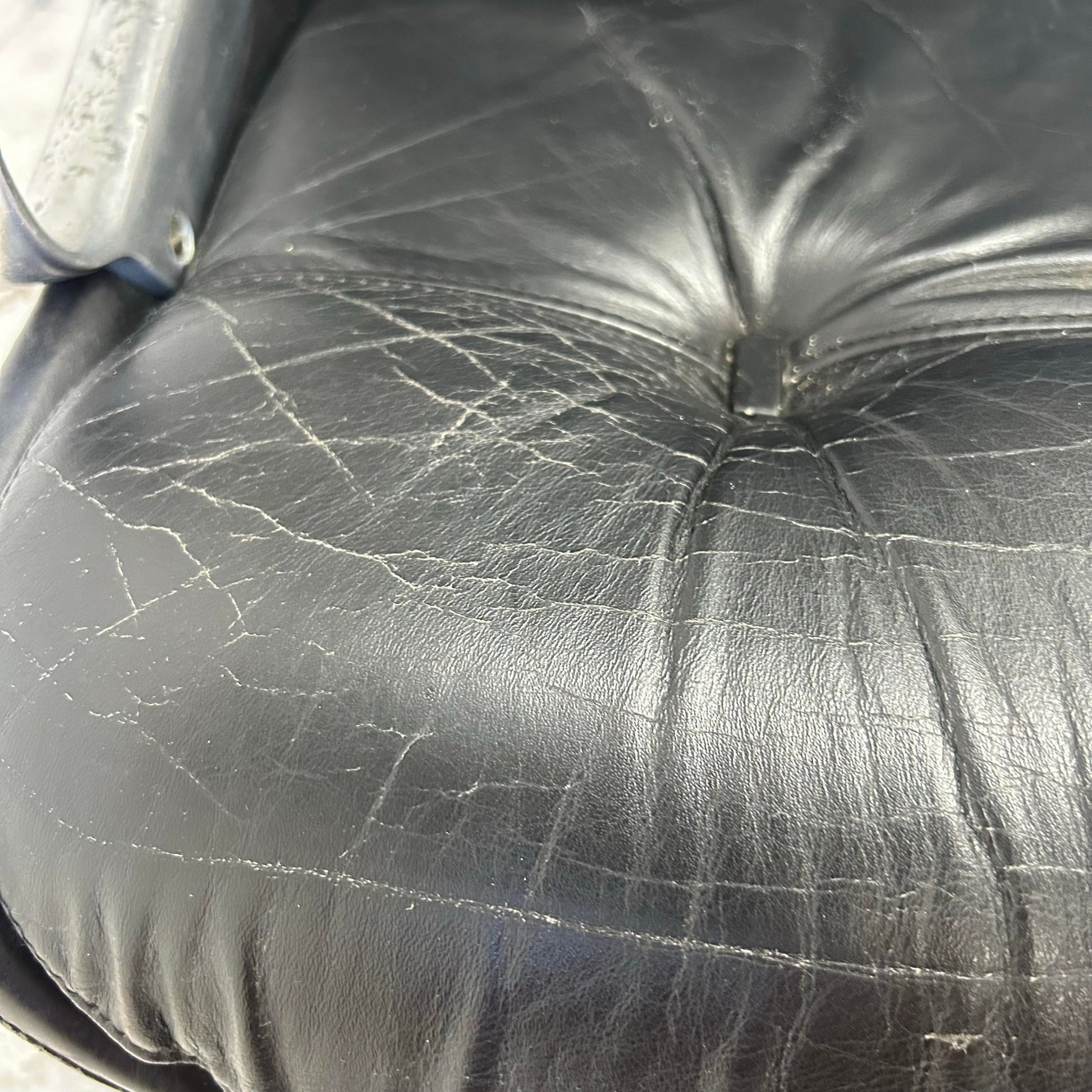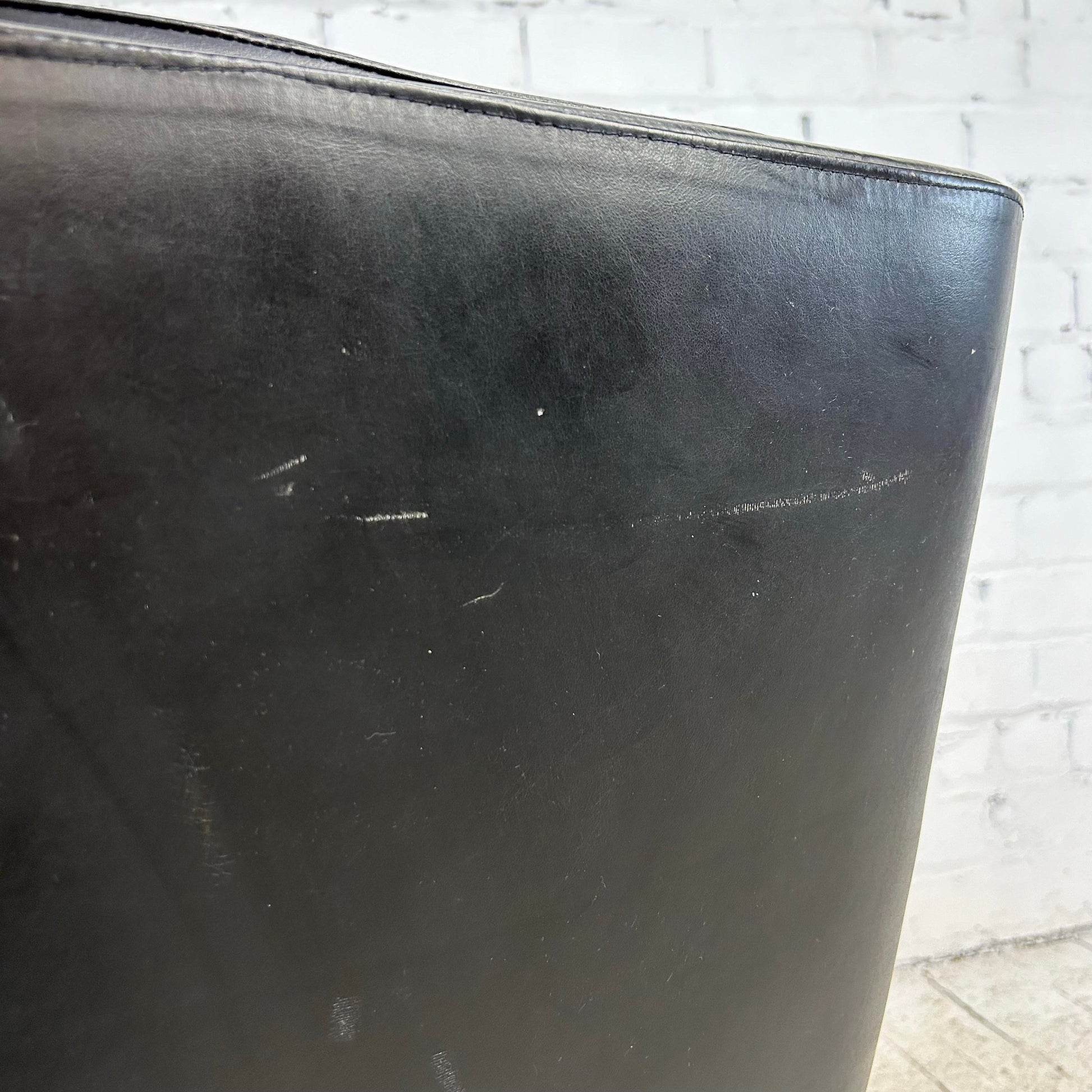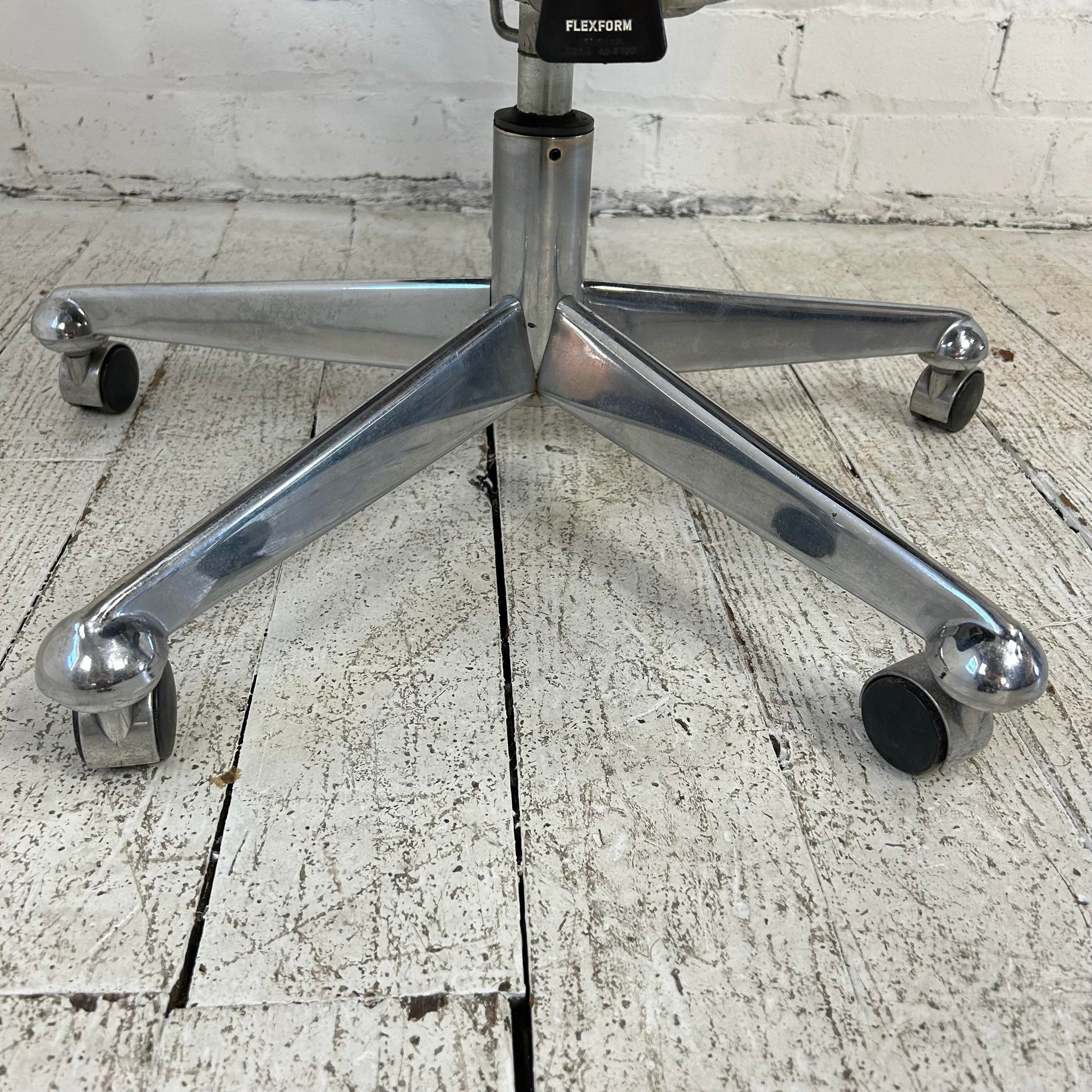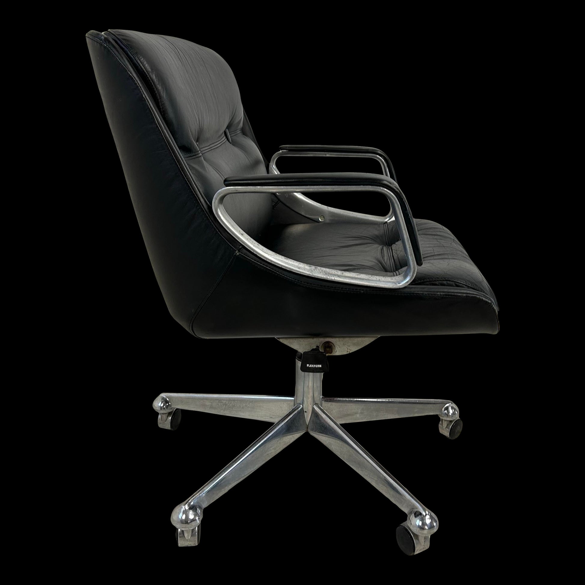 This office chair was designed by Brazilian designer Jean Gillon. This task chair, or office chair, is covered it it’s original leather and features a chrome 5-star base on casters. This chair has adjustable tilt and height.