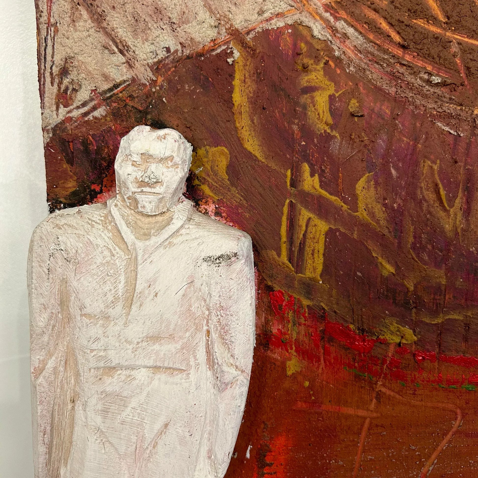 “Joes doing alright now” mixed media sculpture painting by J. Boomer 1989