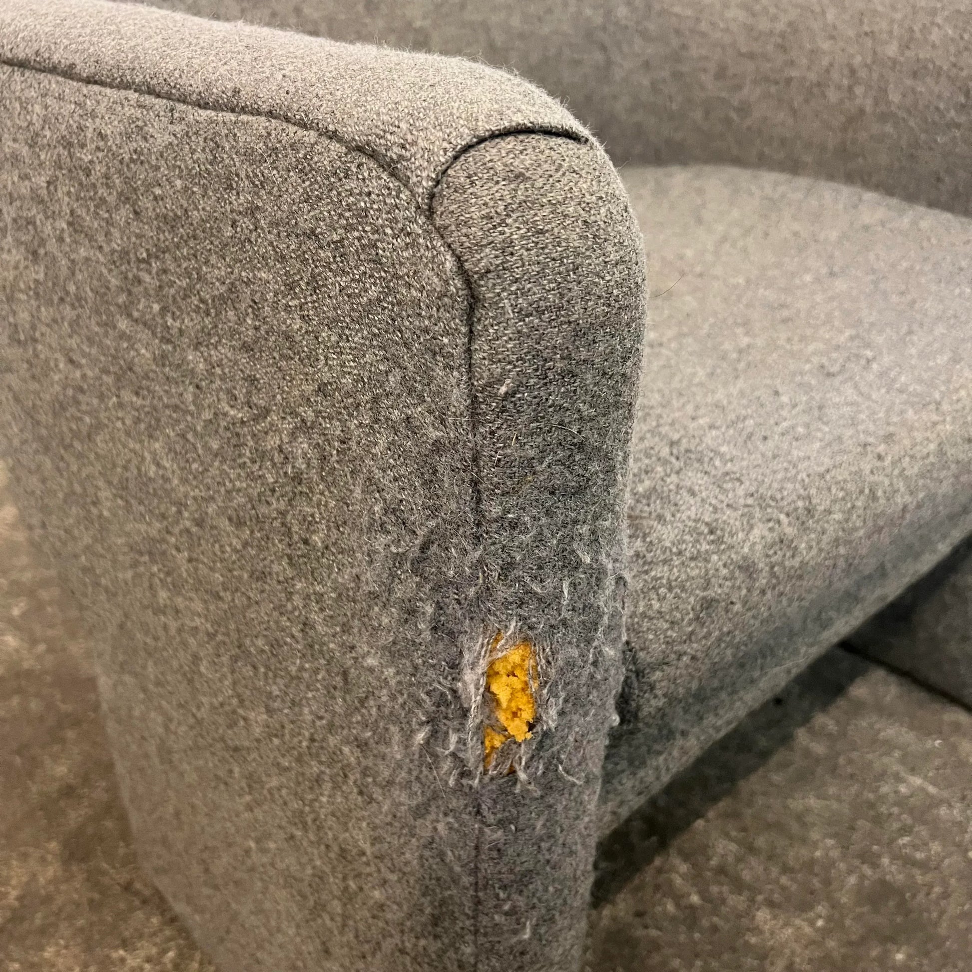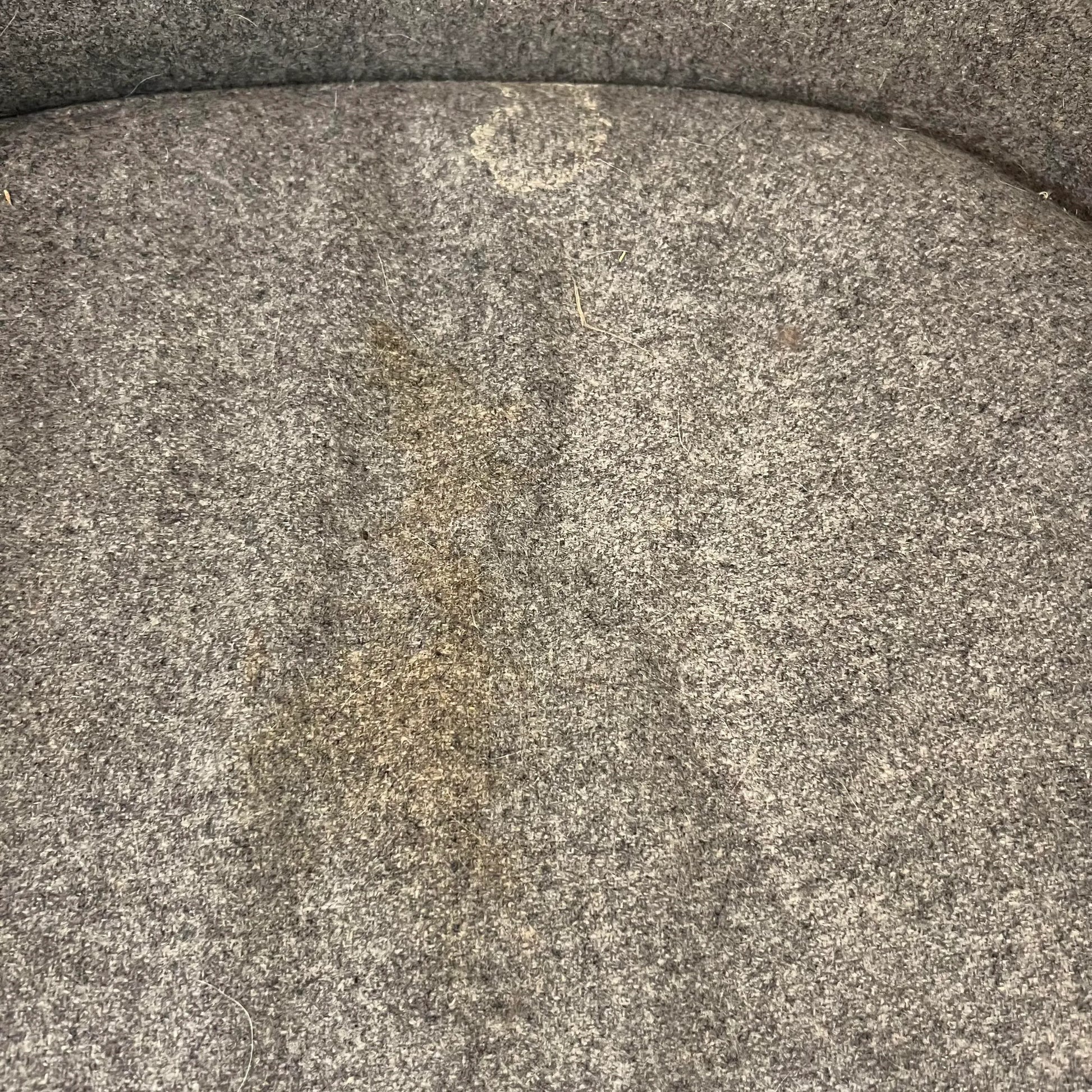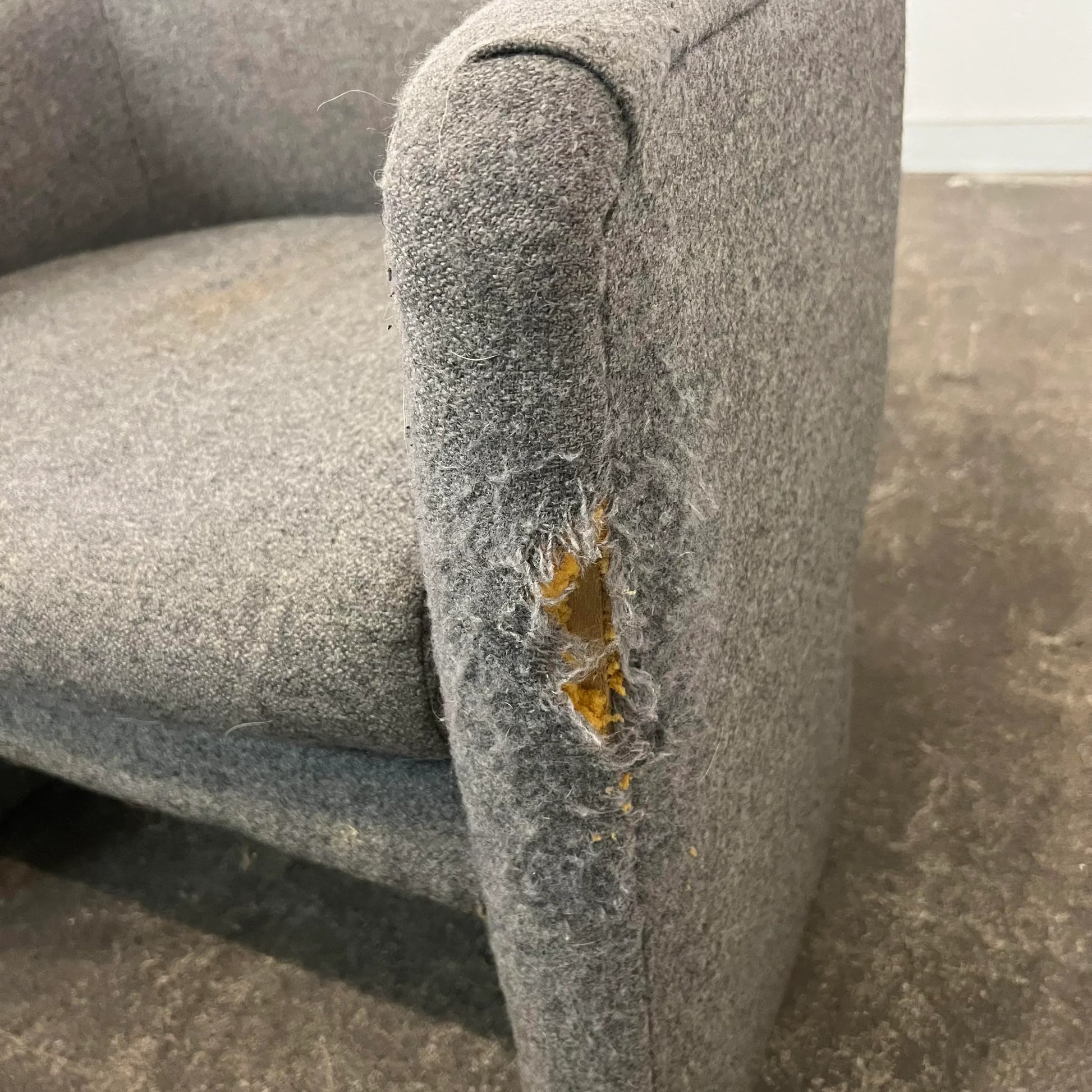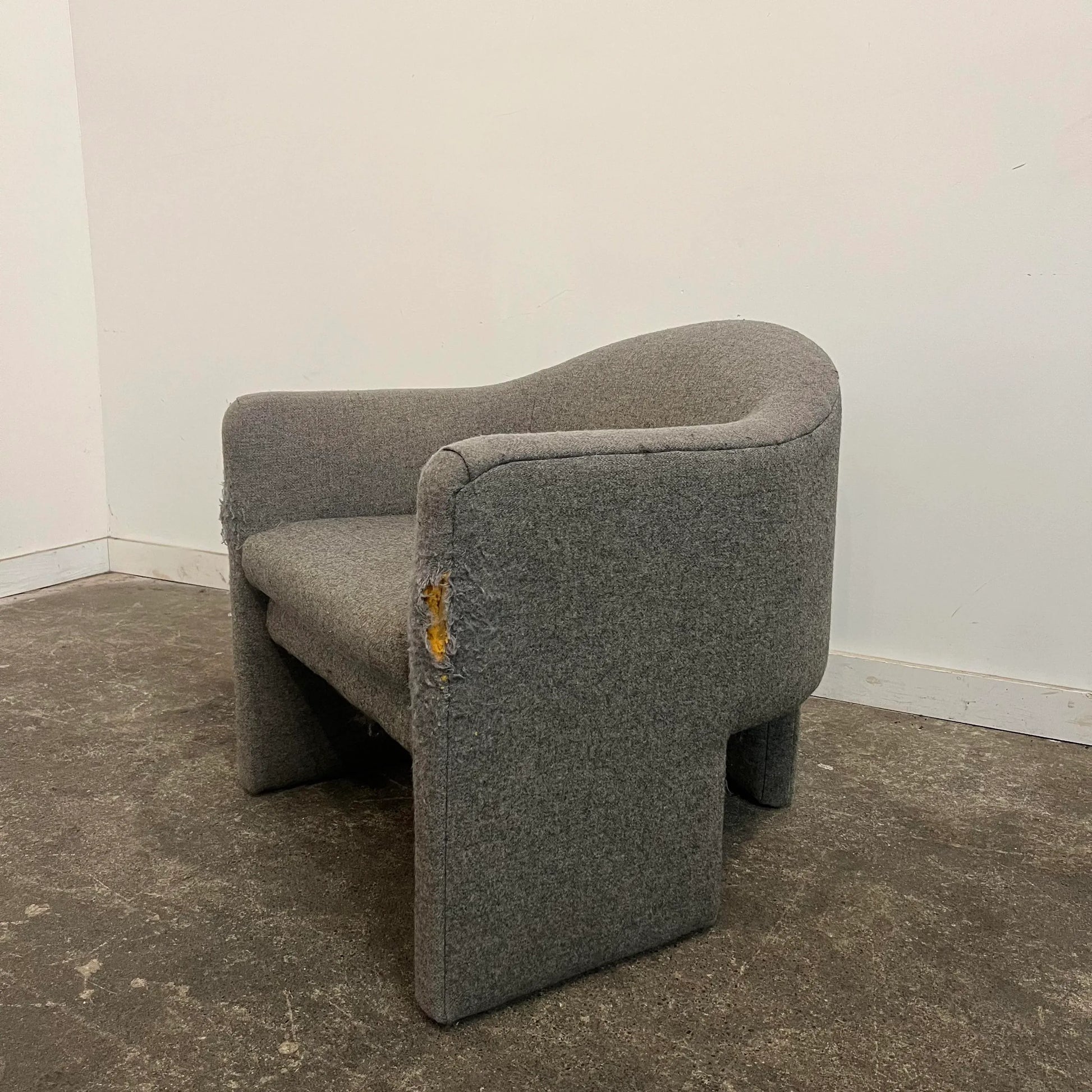 Three legged chair styled after Vladimir Kagan. Tag from Modern Classics in Taylorsville, NC.