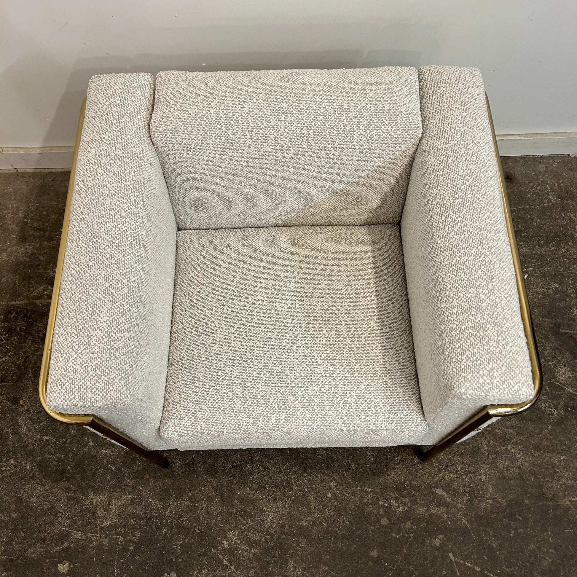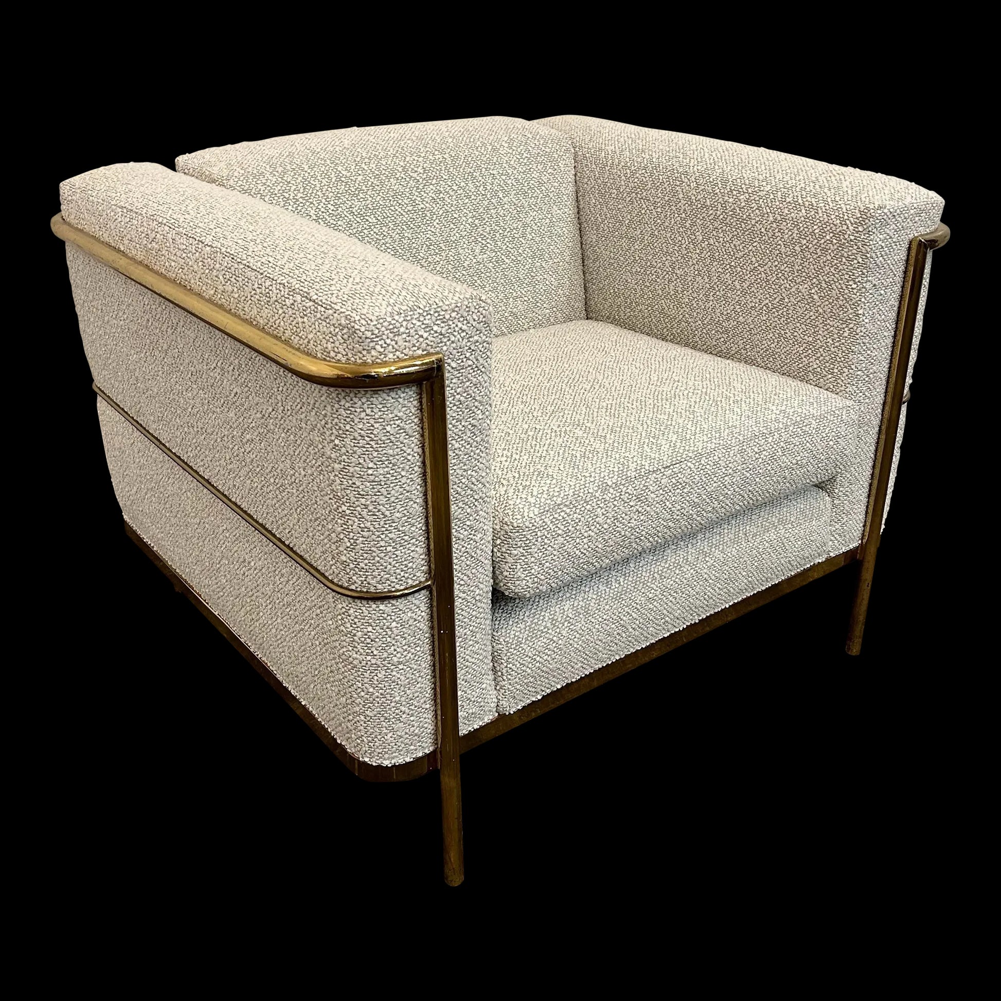 Lc2 Corbusier for Jack Cartwright Brass Arm Club Chair Recovered in Pindler Nubby Fabric