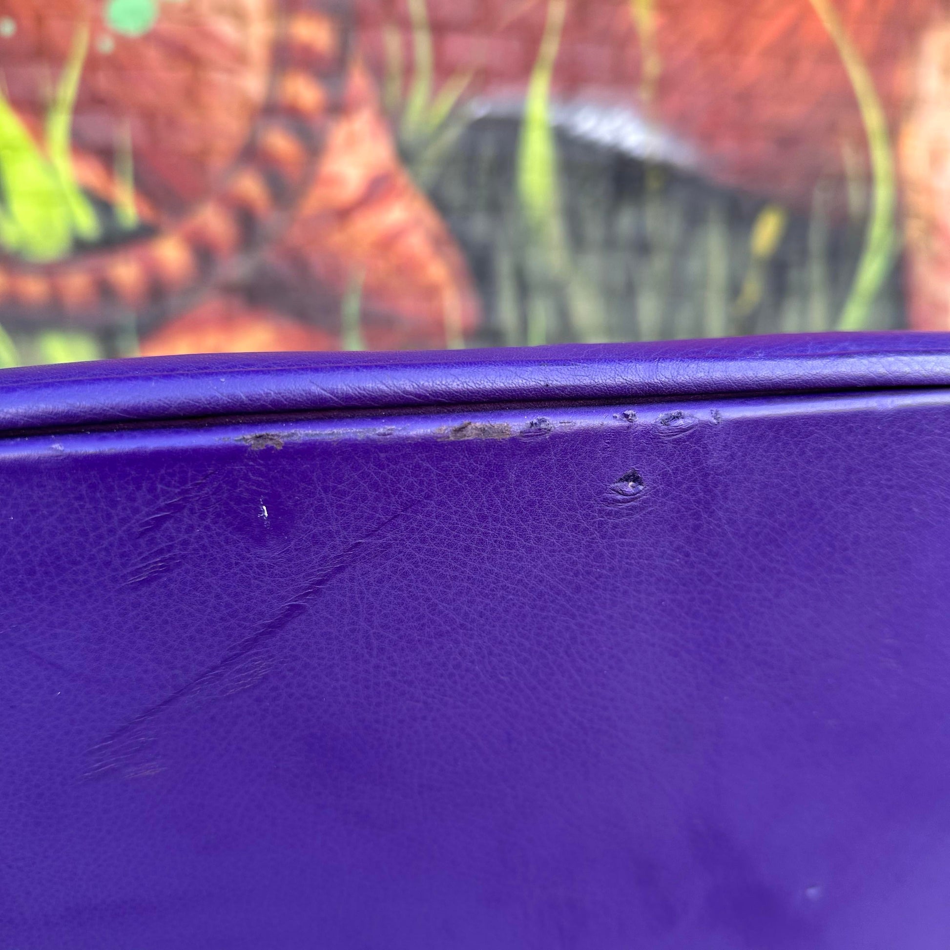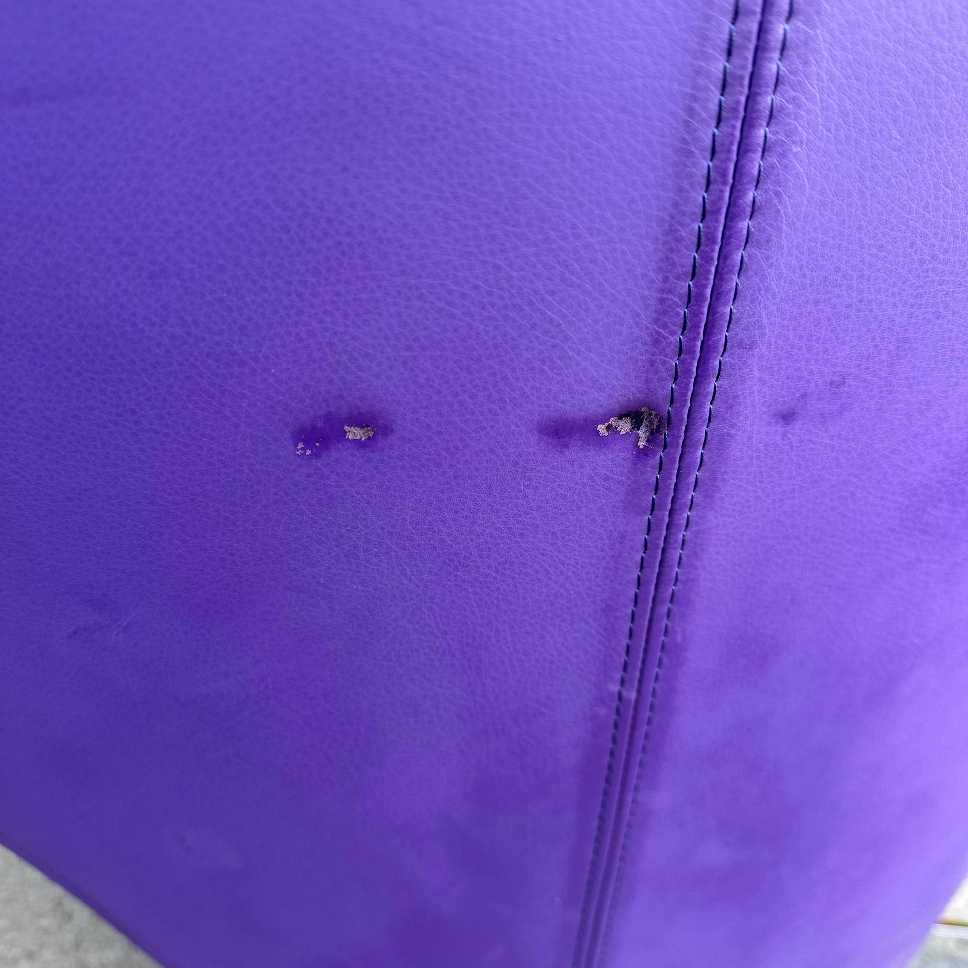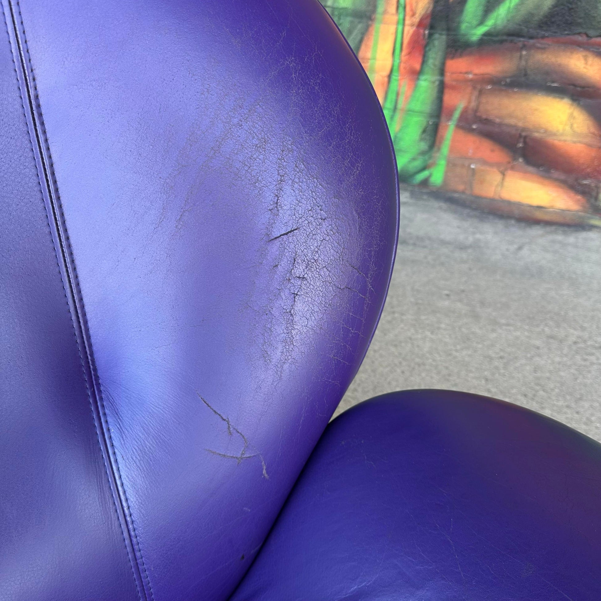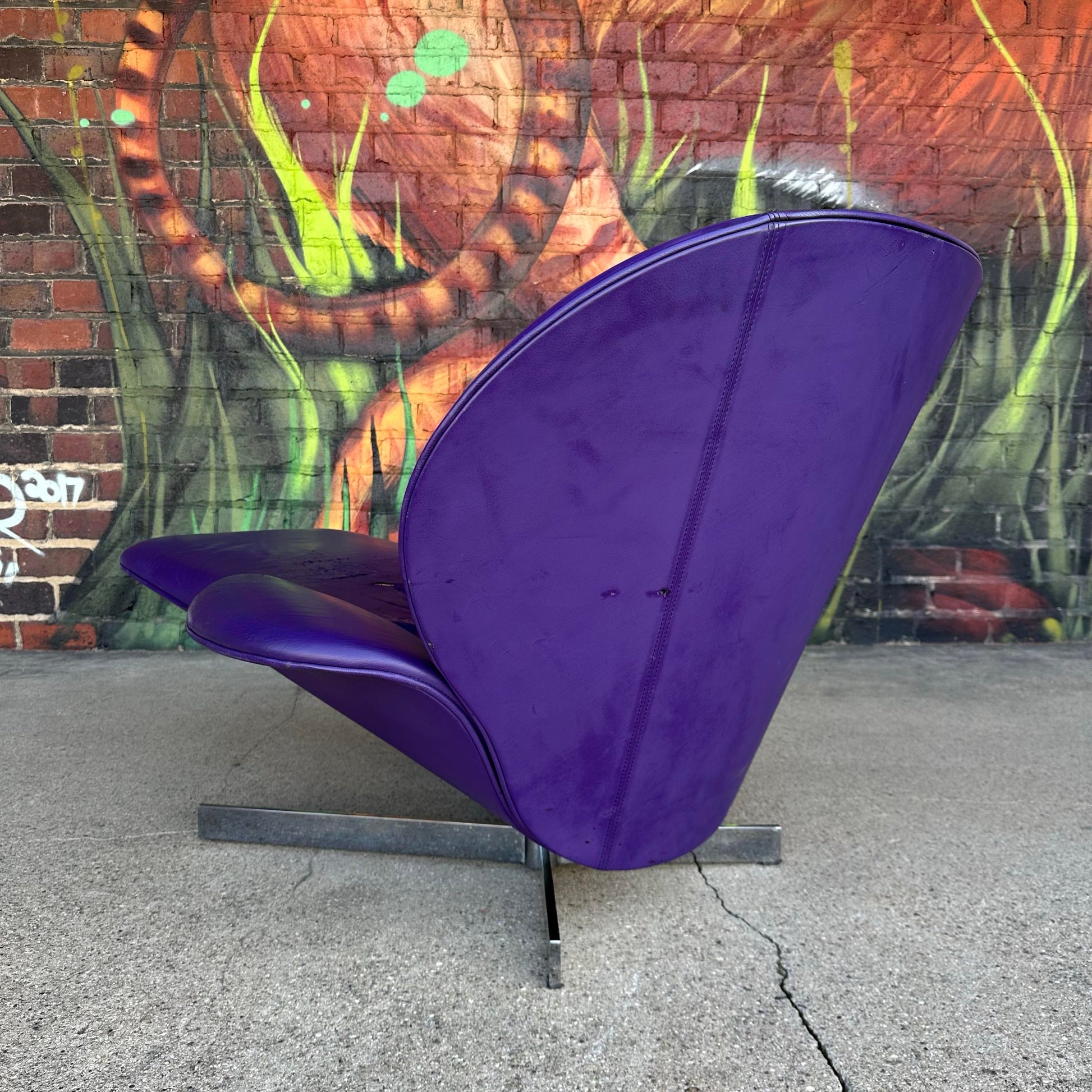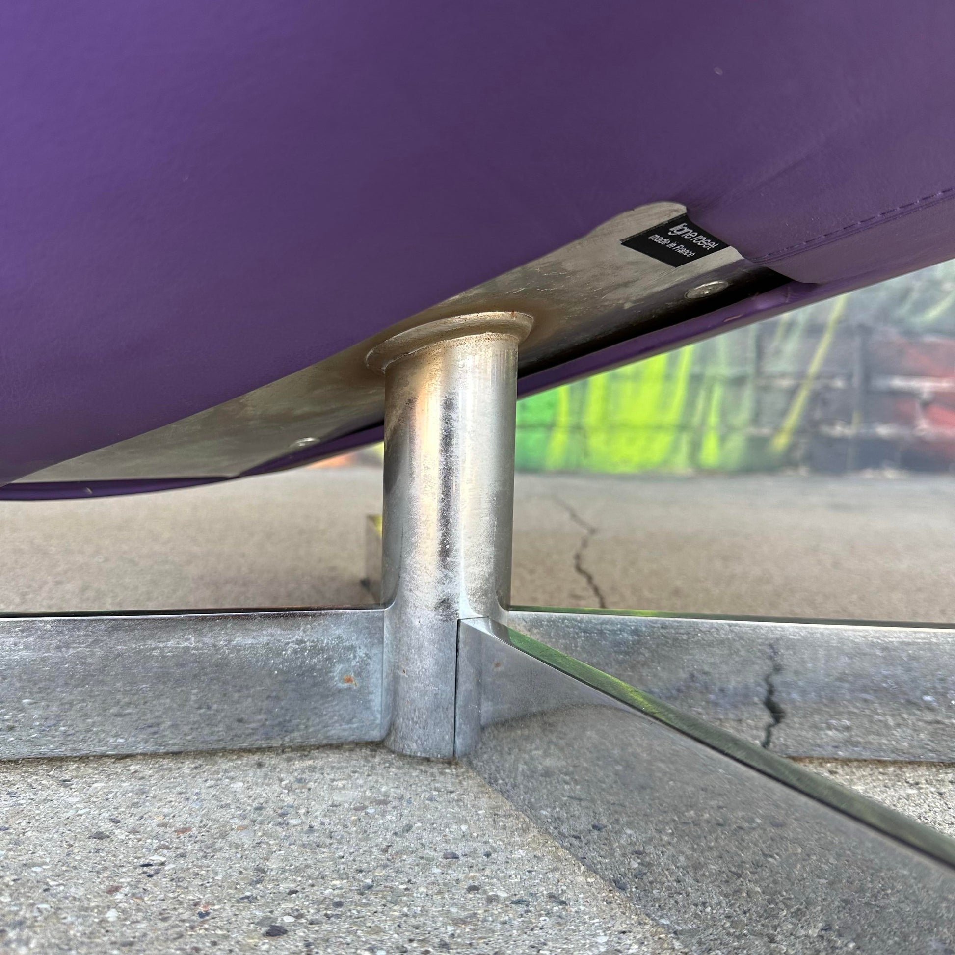 Lounge chair by Ligne Roset featuring purple leather and chrome base.