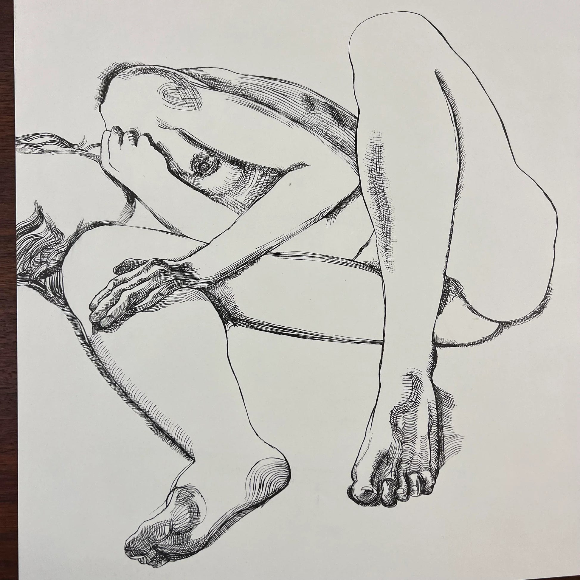 Lucian Freud original offset lithograph exhibition poster for his 1974 exhibit at the Hayward Gallery in London, United Kingdom.