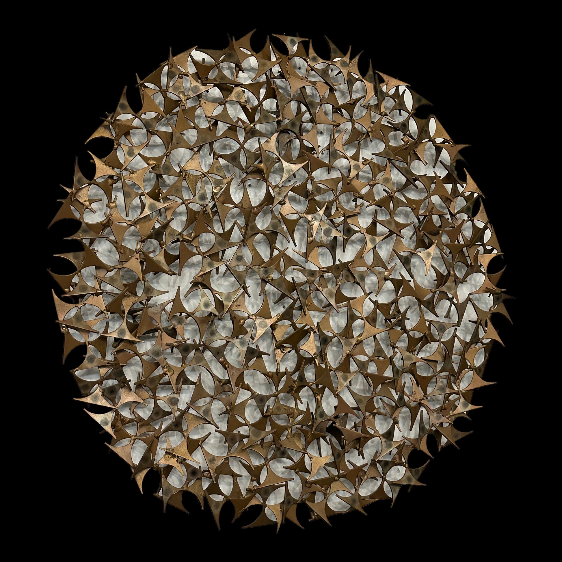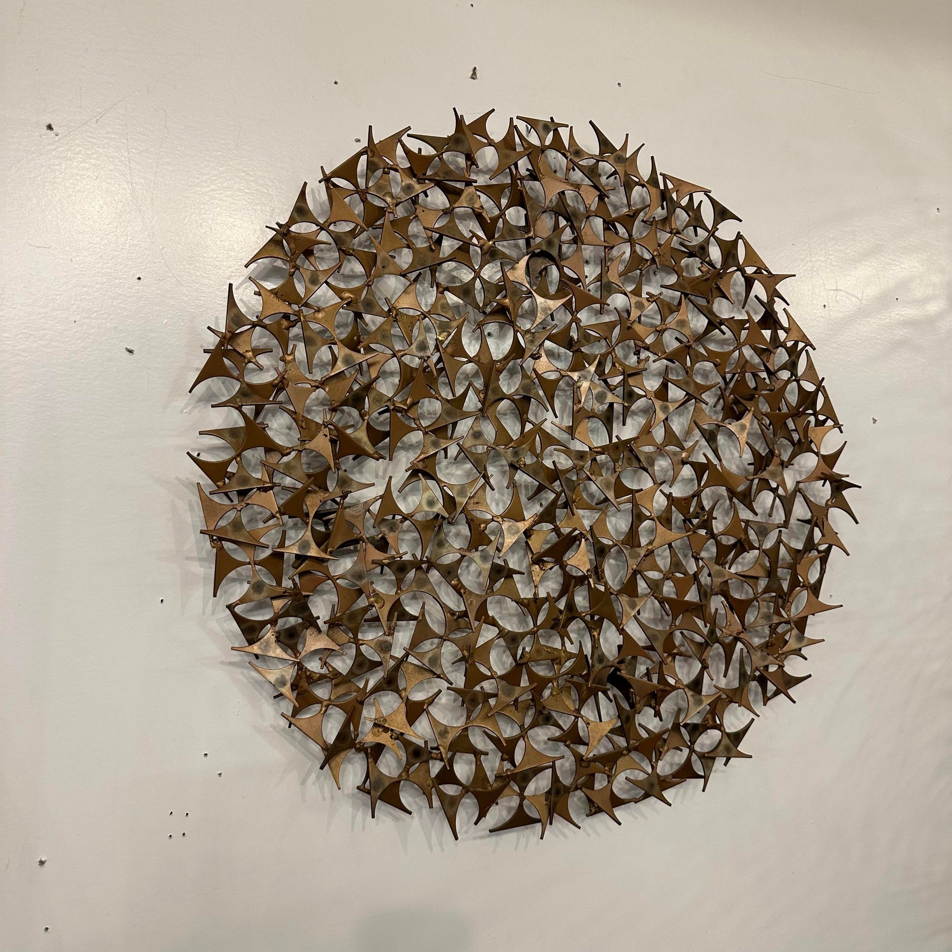 Marc Weinstein Brutalist Mid-Century Modern abstract metal wall sculpture in the form of the sun, circa 1970s. Marc Creates (Textured Dimensional Sculptures).