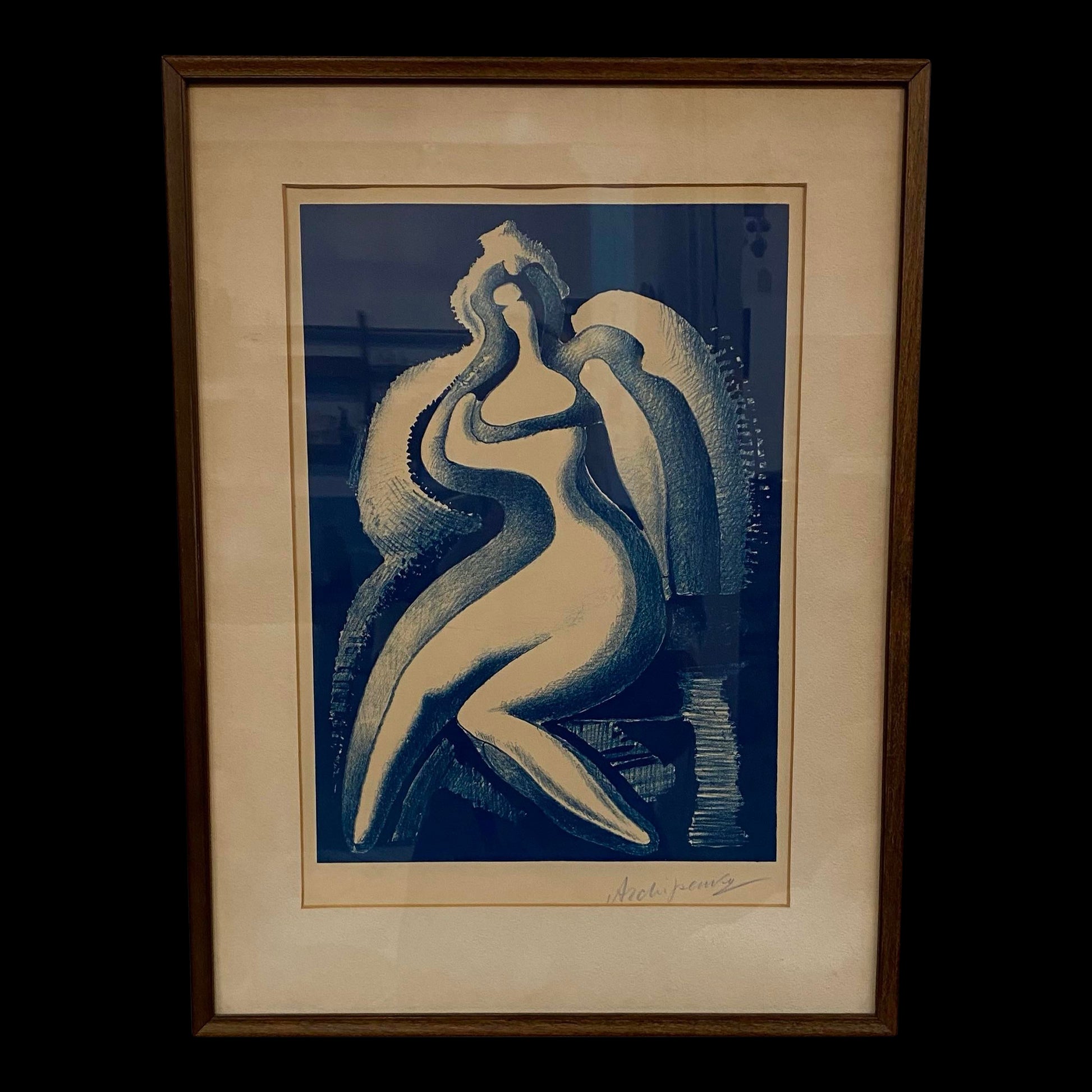 Excellent litho by Alexander Archipenko framed under glass with artist info on back and signature on front .