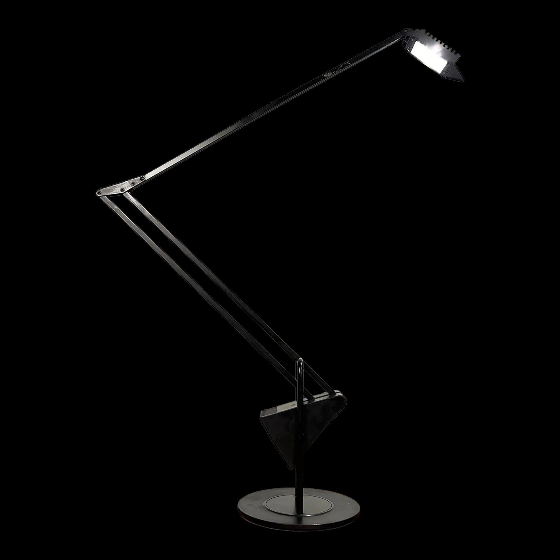 Flamingo lamp designed by Fridolin Naef for Luxo. The table lamp base swivels 360 degrees and the arm adjusts to extends vertically or horizontally.