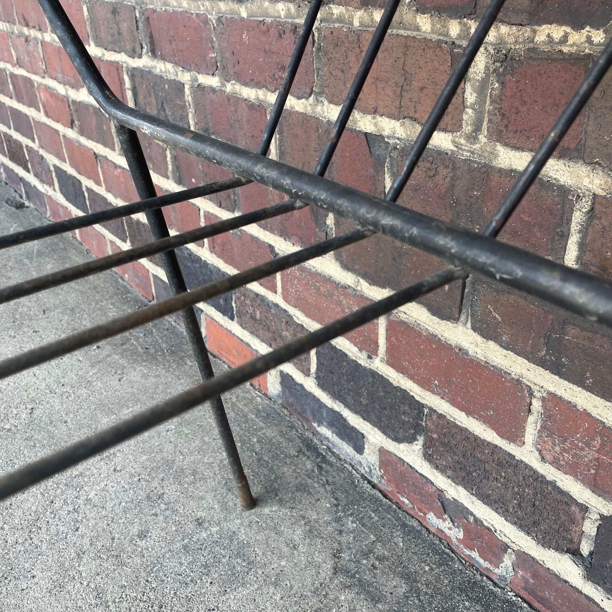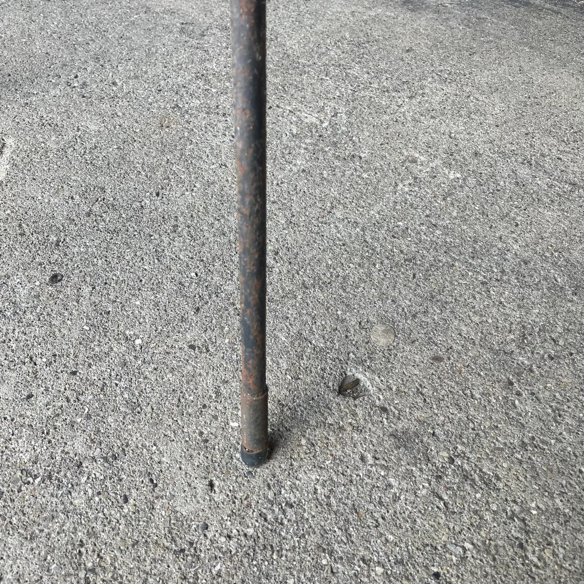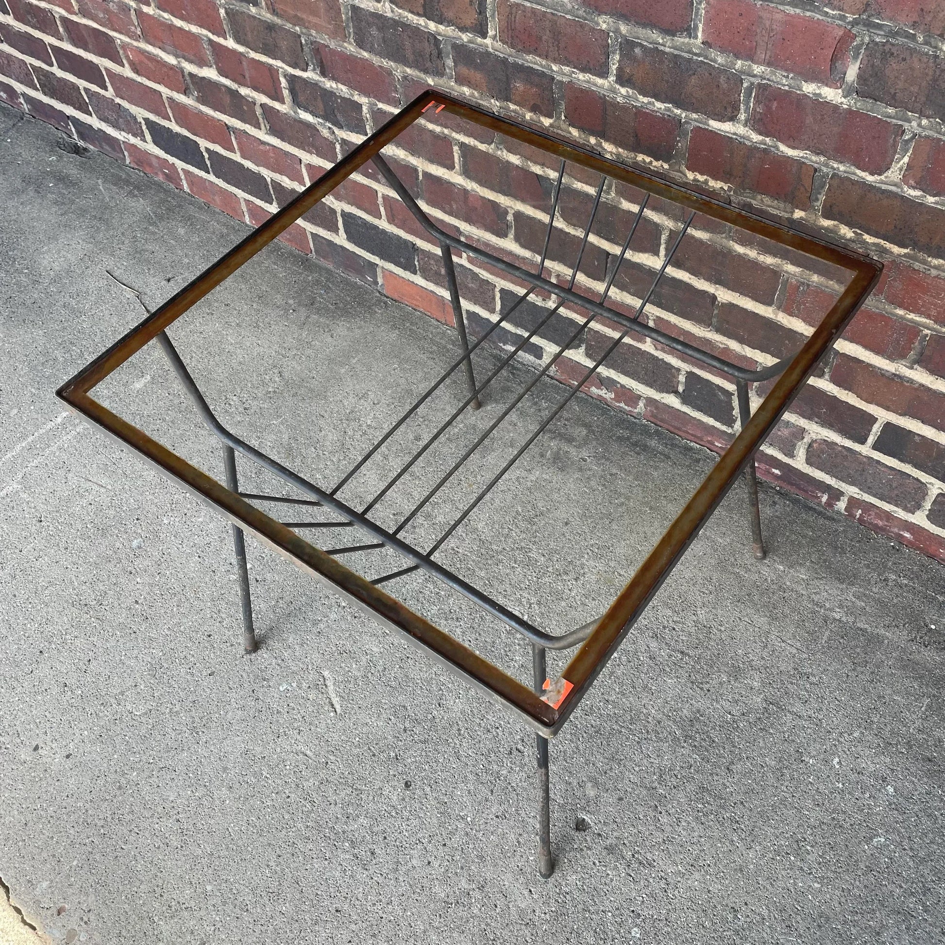 Square glass top with iron base.