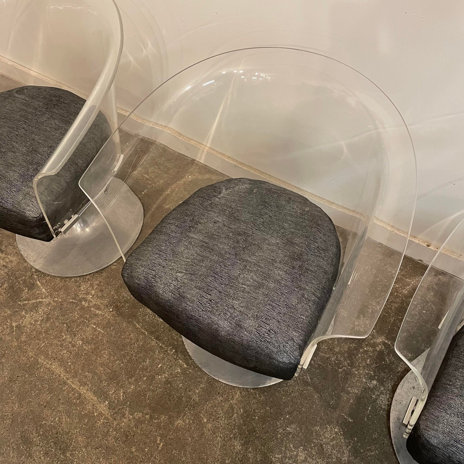 Mid Century Modern Bassick Flo-Tork Lucite Swivel and Reclining Chairs with Tulip Base - Set of 4