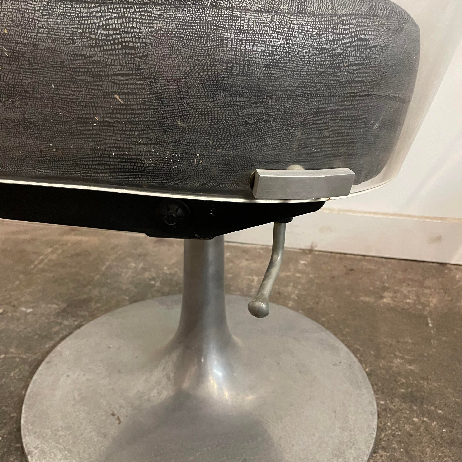 The chairs base has the makers mark of bassick flo-Turk.
