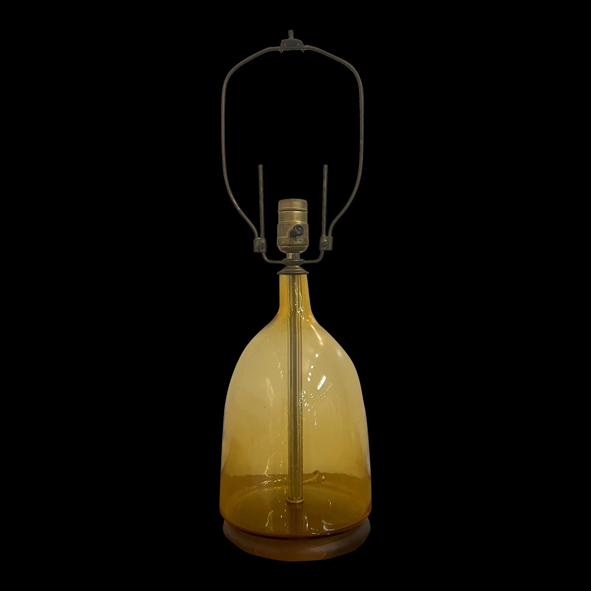 Mid Century Modern Blenko Glass Company Yellow Table Lamp, Unmarked