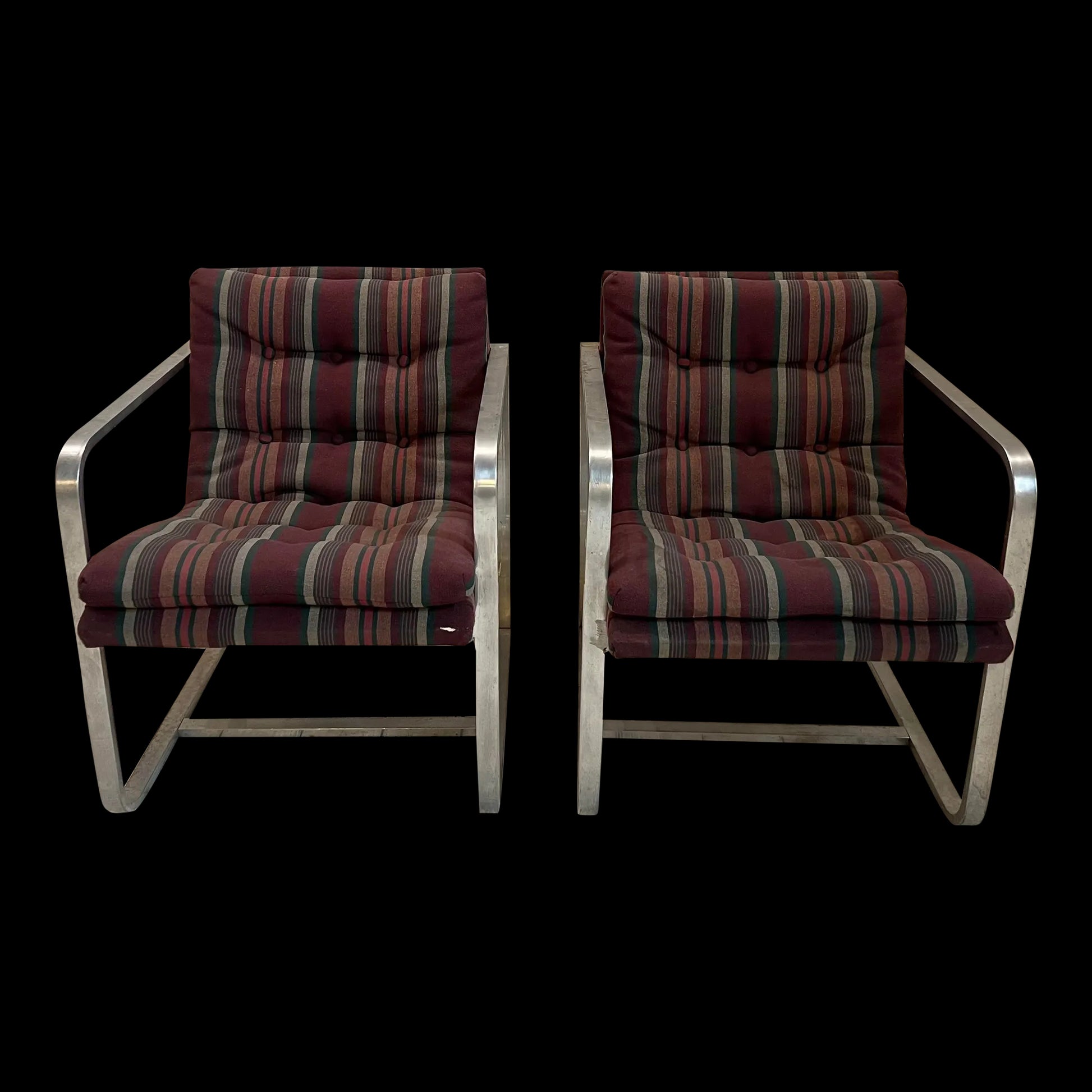 Amazing pair of chairs made of aluminum frames. These could be used as is but suggest reupholstering.