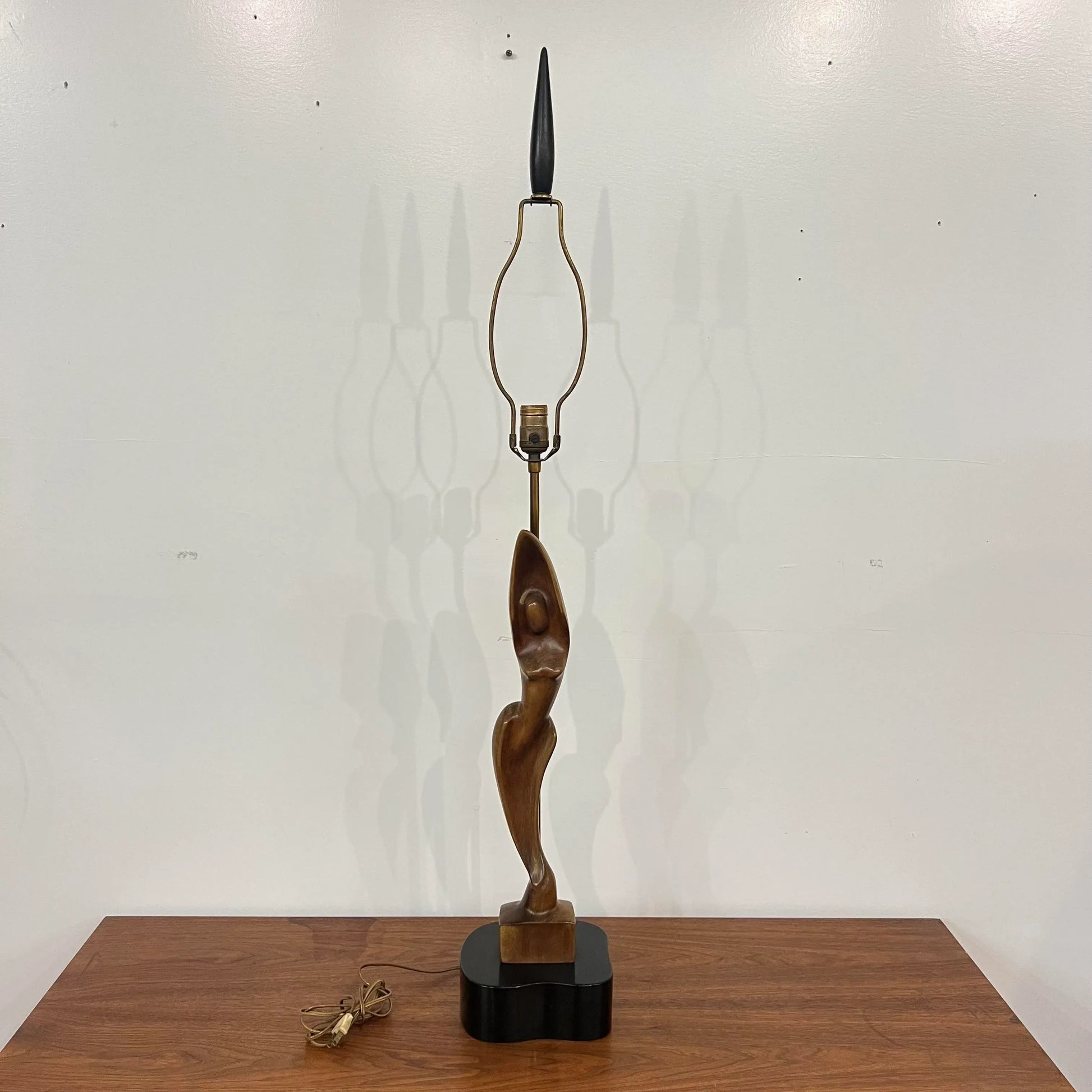Mid Century Modern Carved Woman Figural Heifetz Table Lamp
